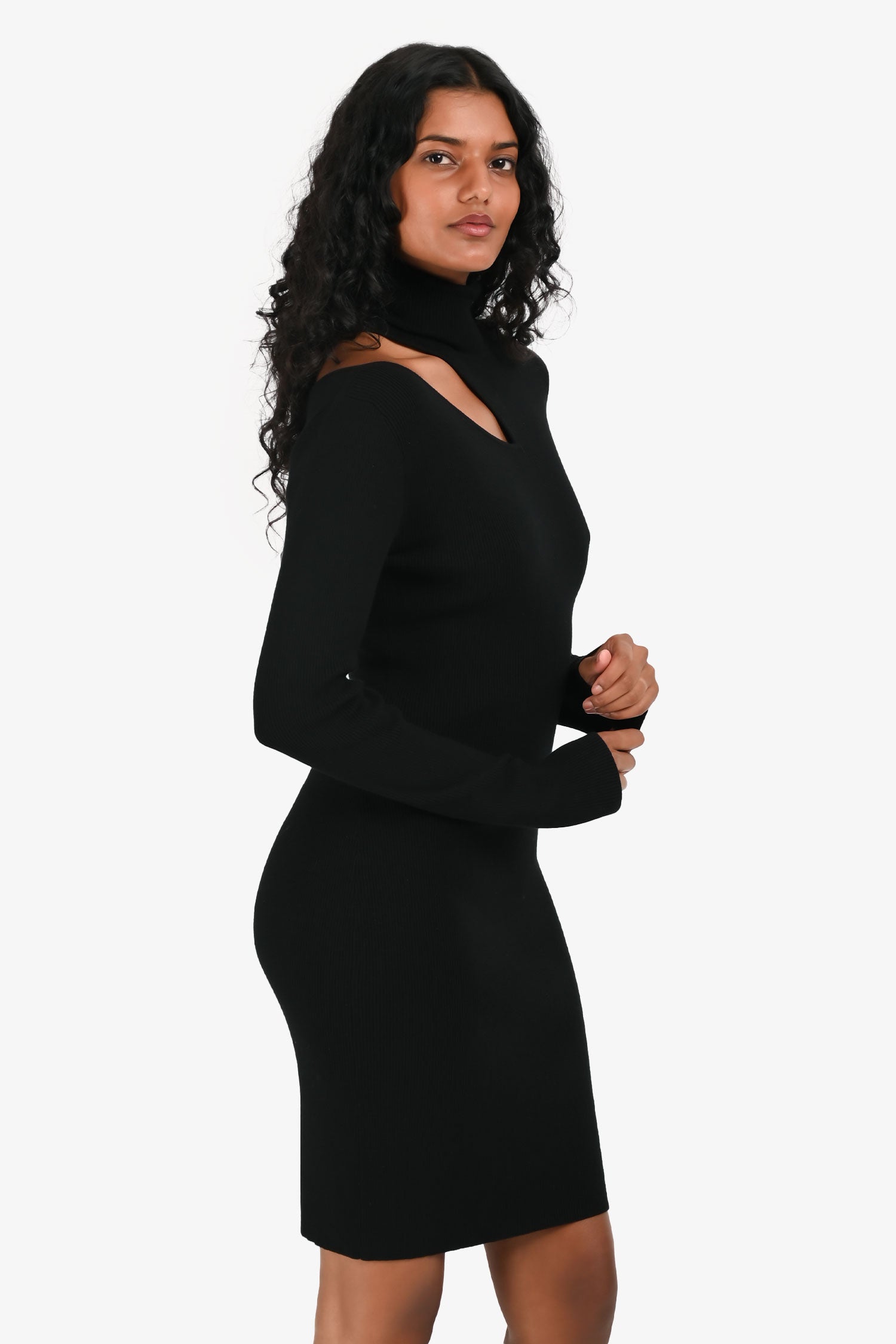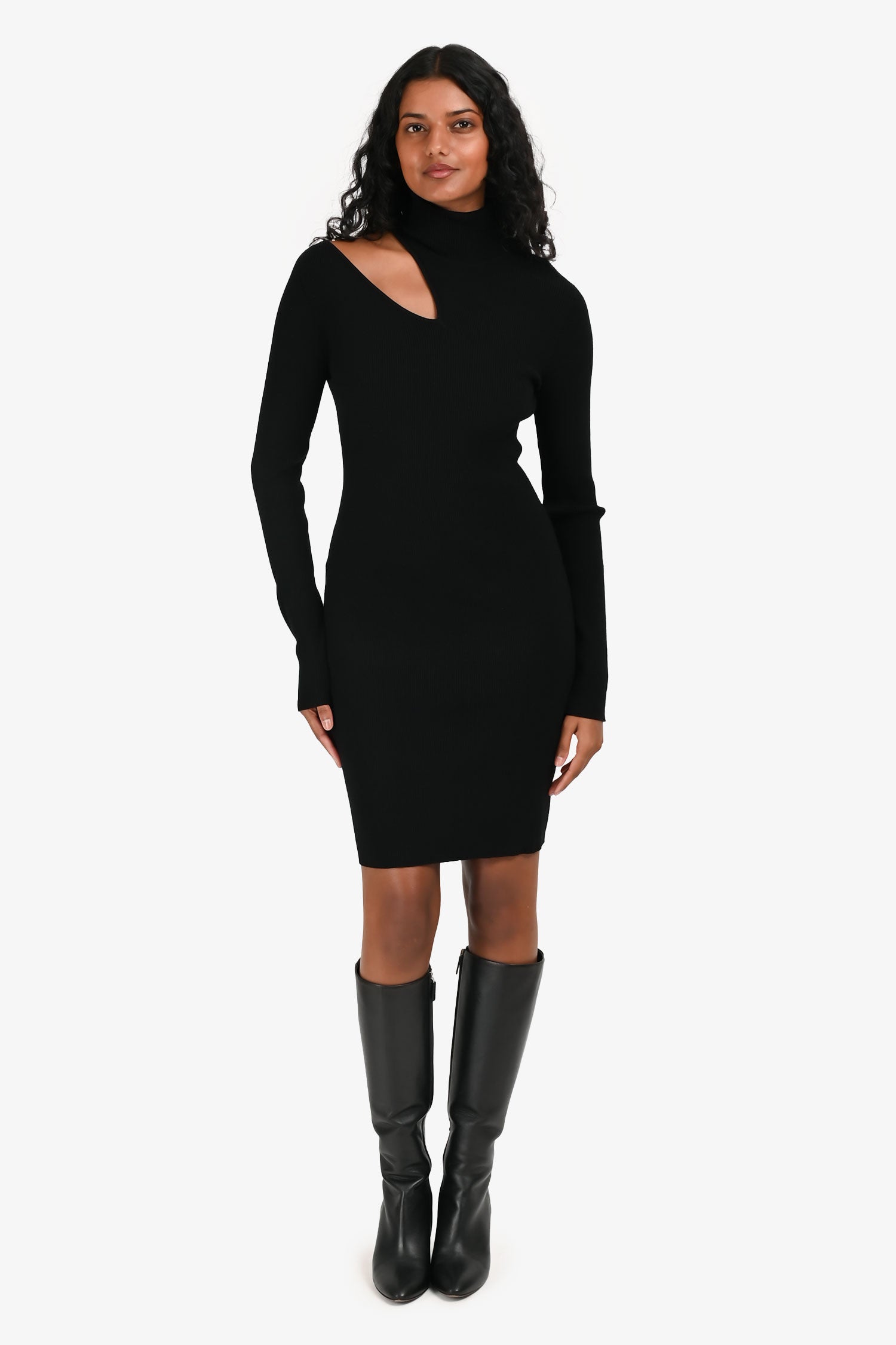 Refresh availabilityA.L.C. Black Rib Knit Turtleneck Cutout Mini Dress. Pull-on.