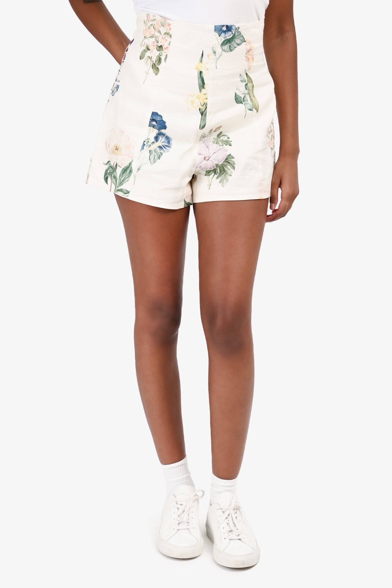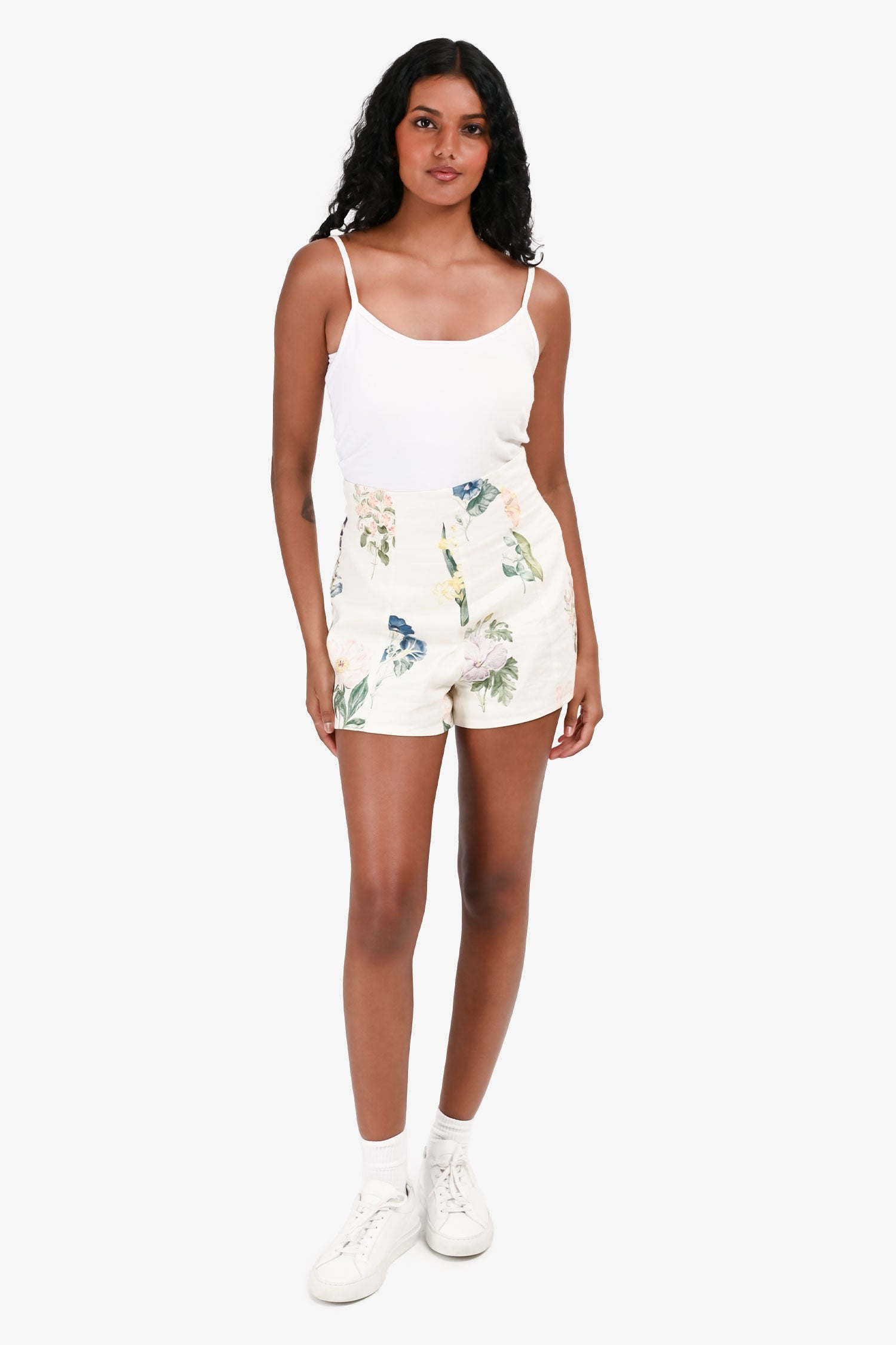 Refresh availabilityAlemais Cream Floral Printed. High-waist. Back zip closure. Tonal stitching.
