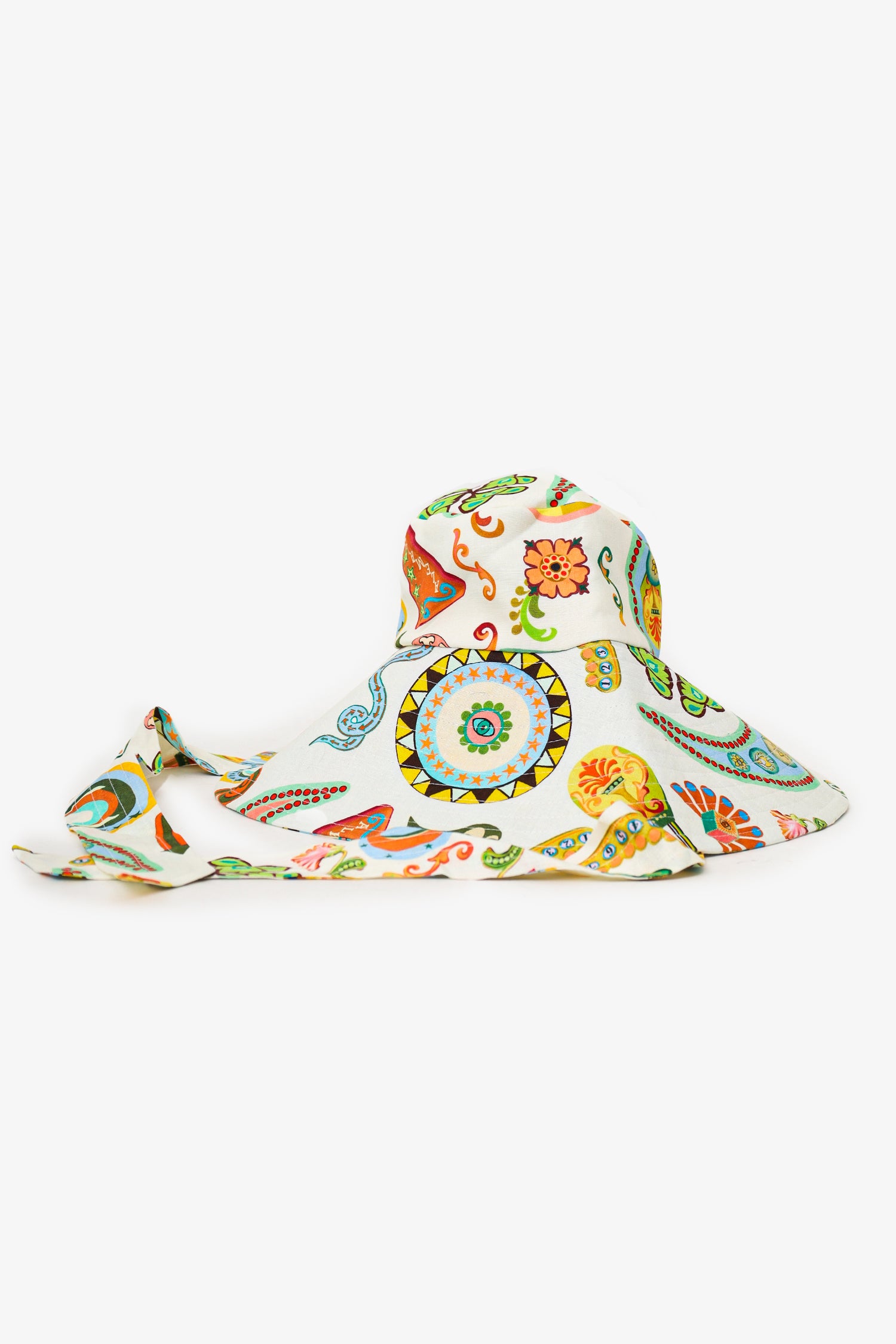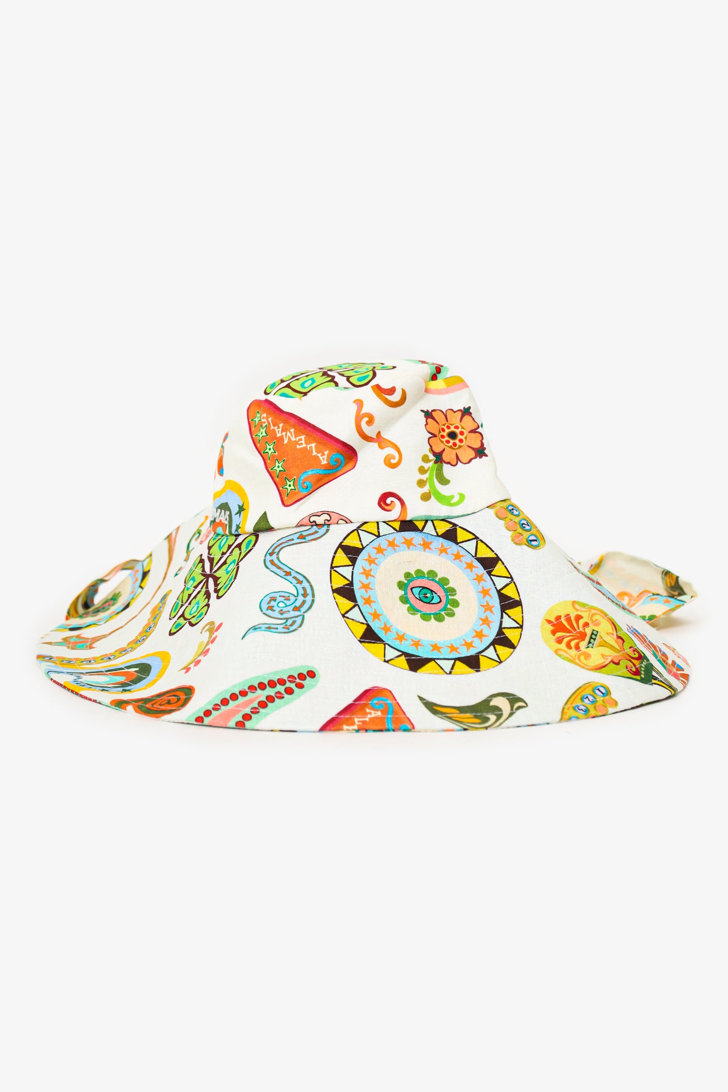 ALÉMAIS White/Multicolour Printed Mid Brim Sun Hat
