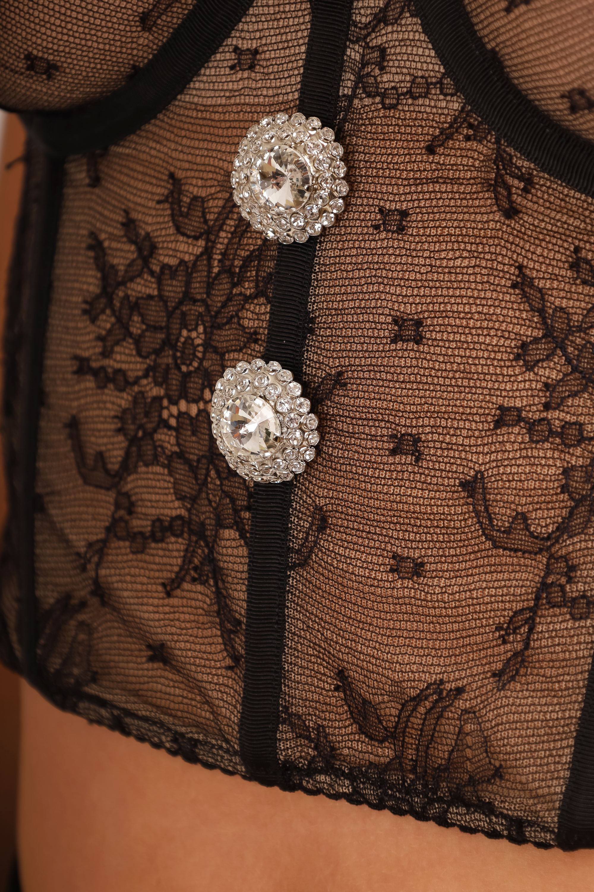Refresh availabilityAlessandra Rich Black Lace Corset. Rear hook closure. Adjustable straps. Tonal stitching.