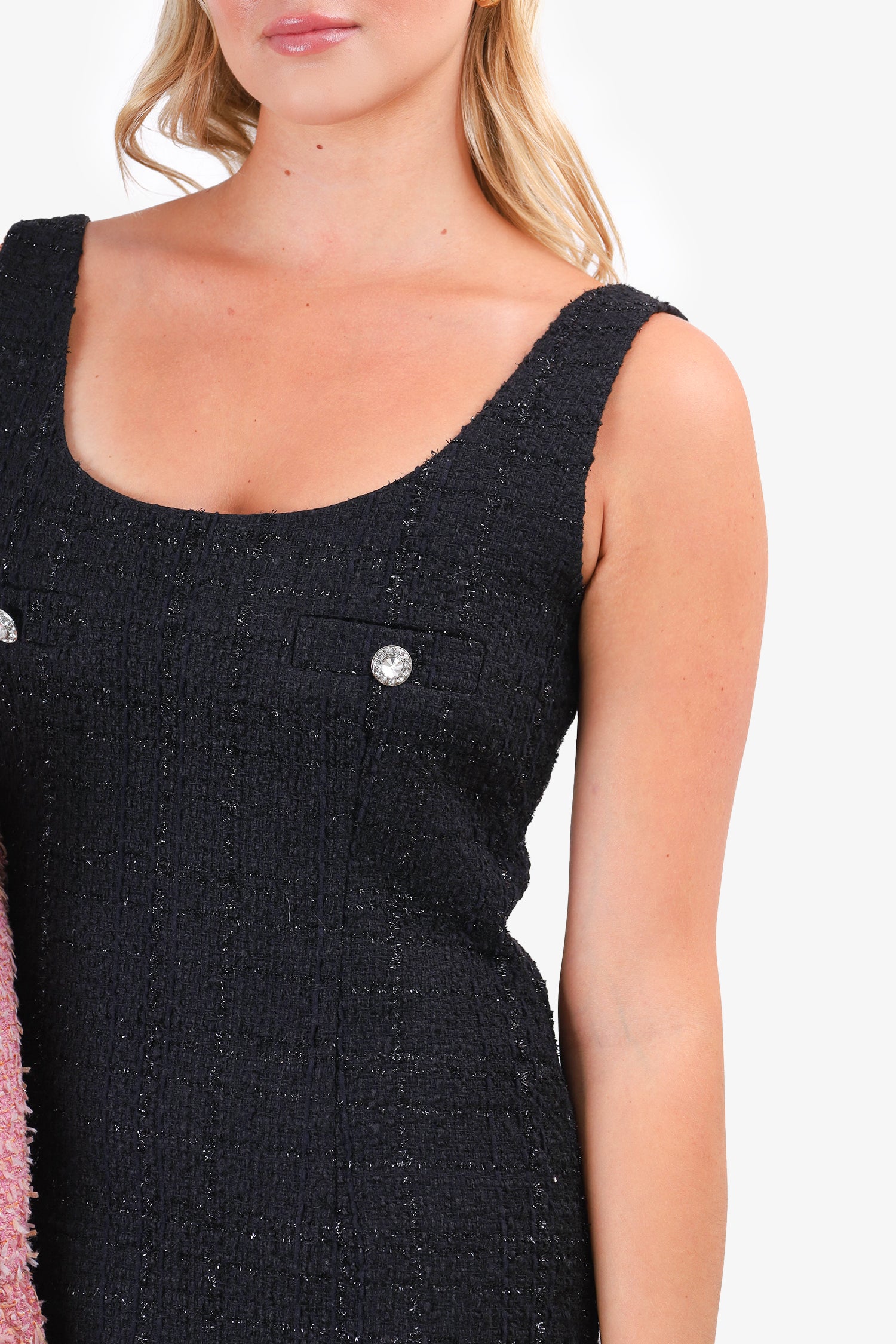 Alessandra Rich Black Wool Tweed Sleeveless Dress Size L
