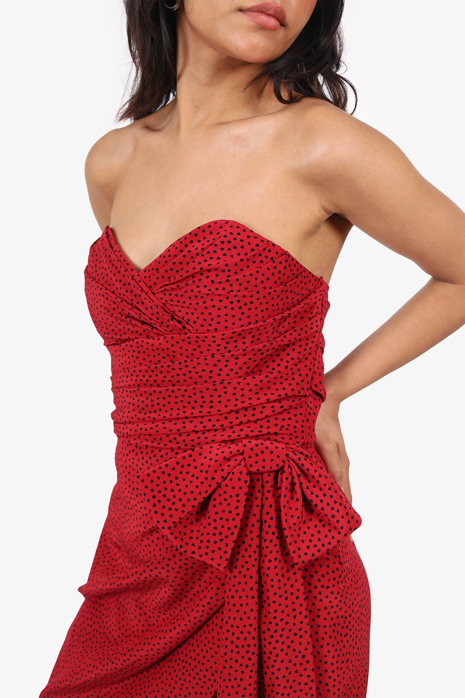 Refresh availabilityAlessandra Rich Red Heart Print Silk Mini Dress. Sleeveless. Sweetheart neckline. Rear zip with hook closure. Lined interior. Tonal stitching.