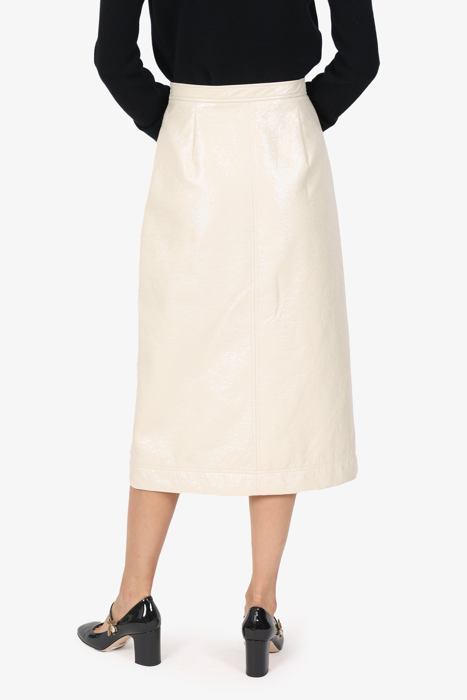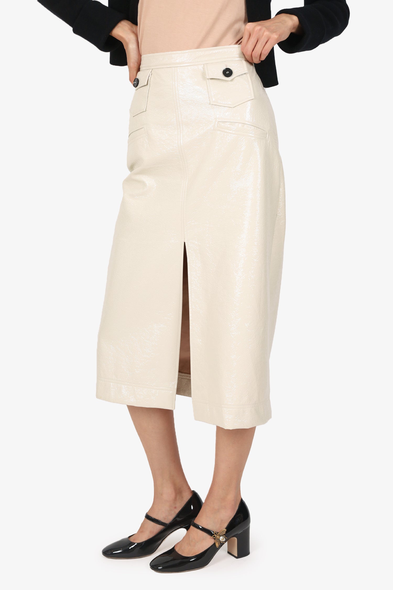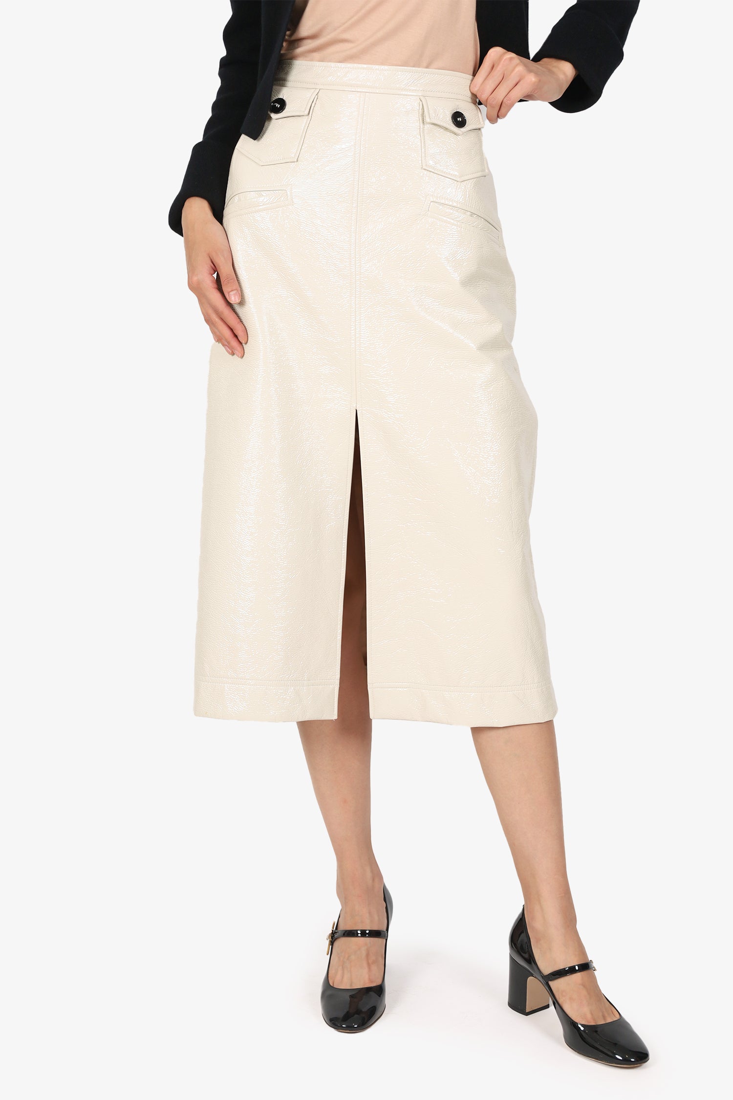 Alexachung Cream Crinkled Faux Patent Leather Midi Skirt Size 12