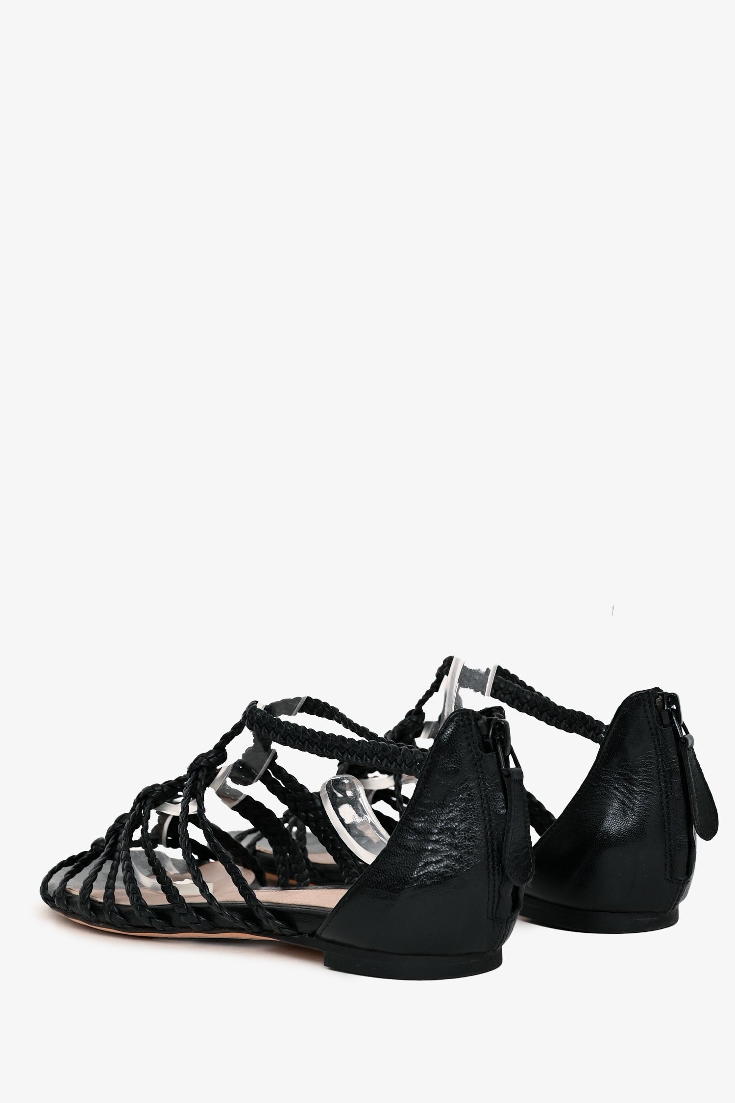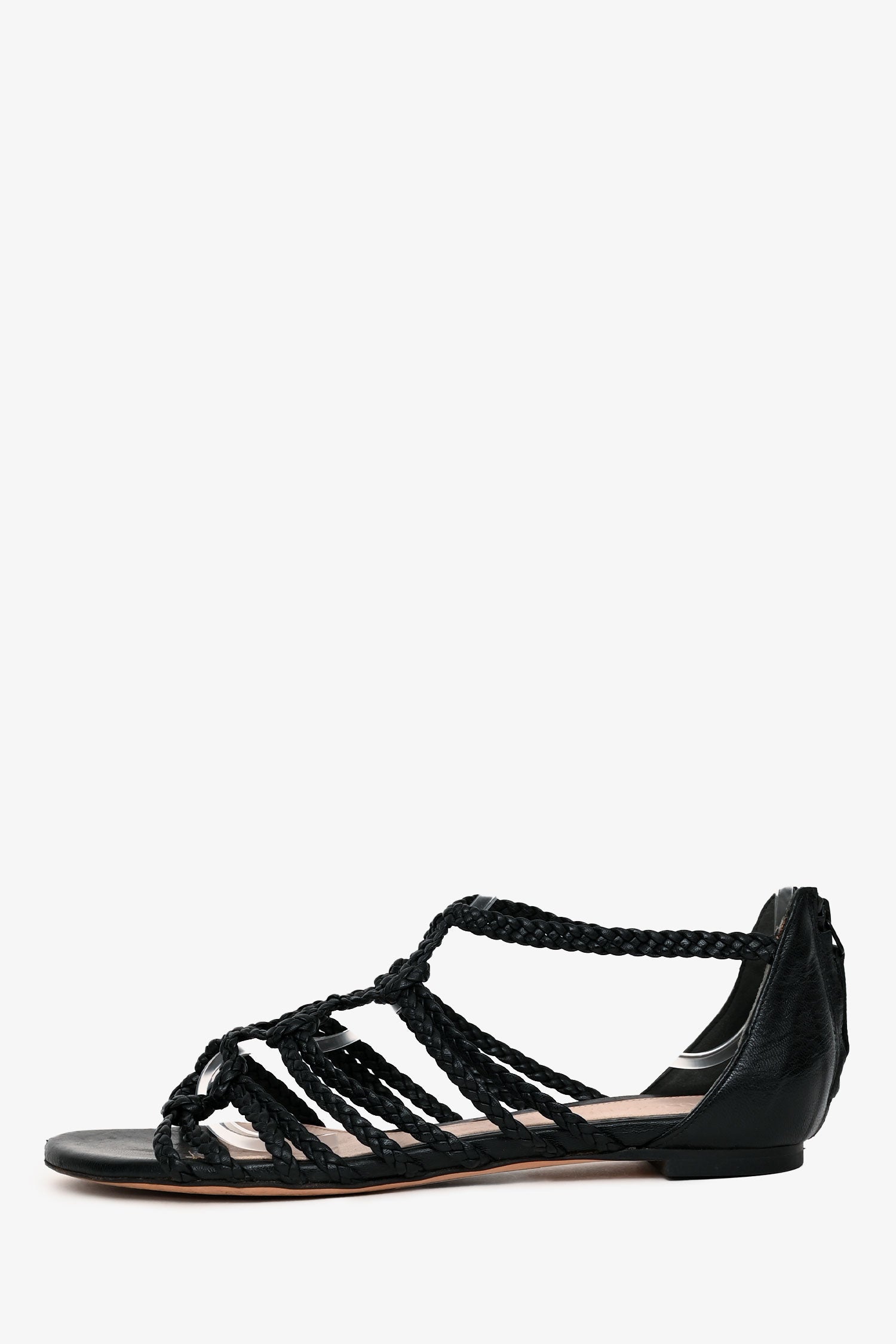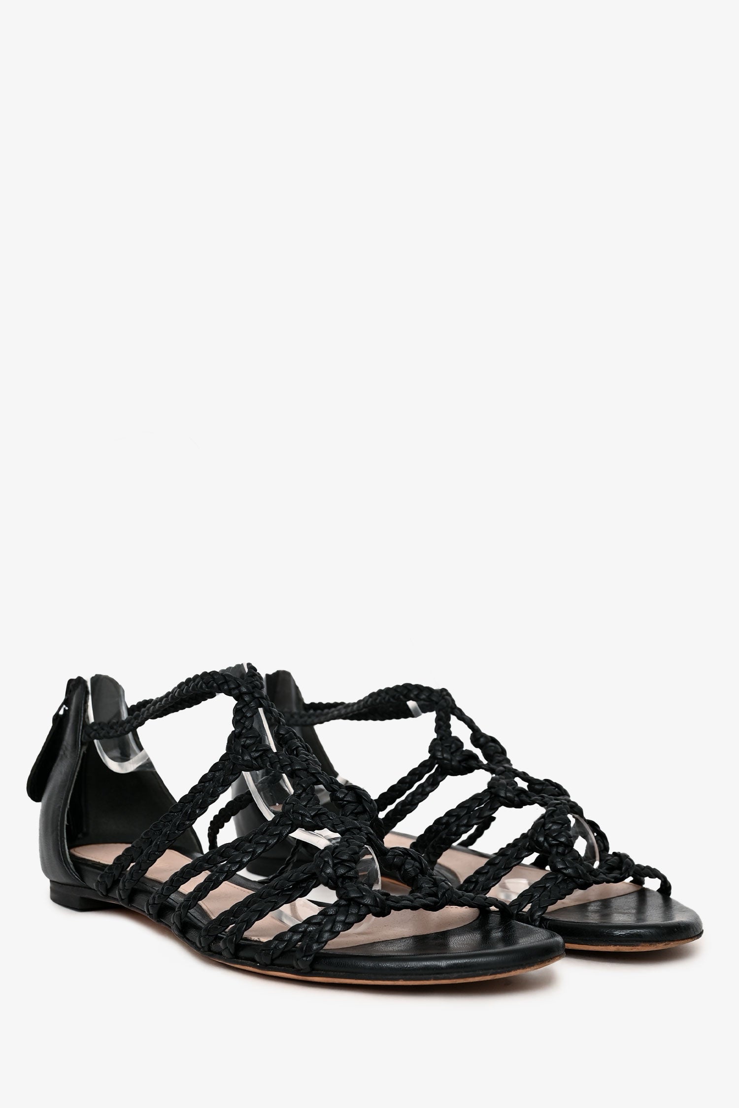 Alexander McQueen Black Leather Braided Sandals Size 36