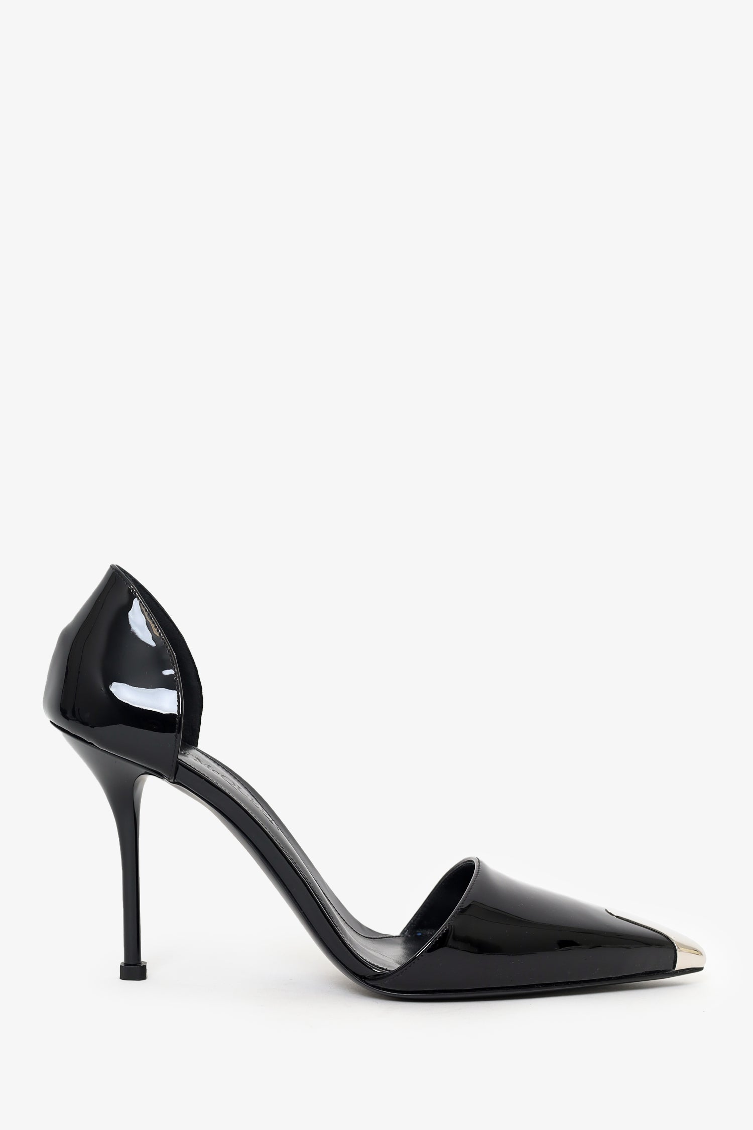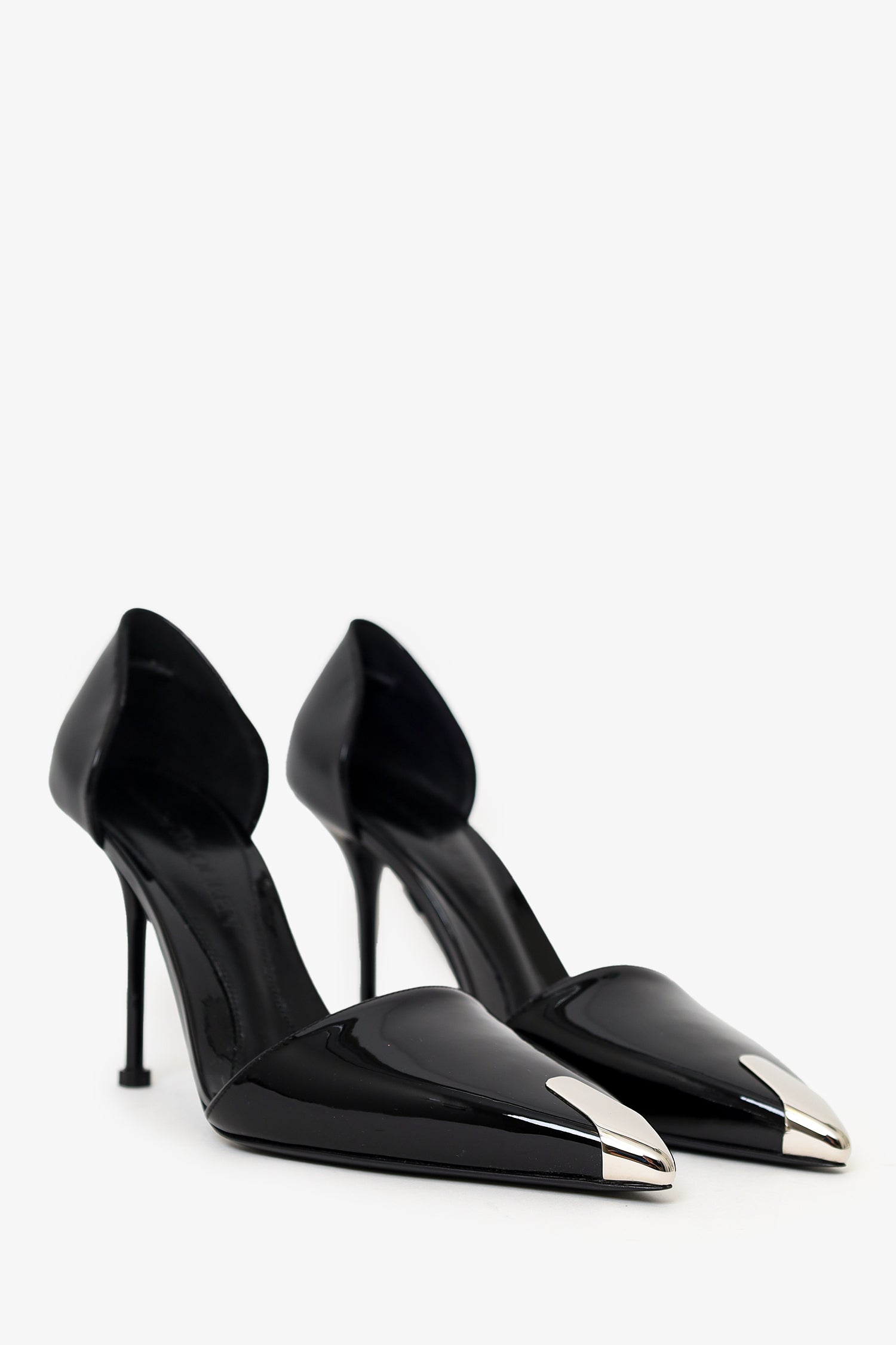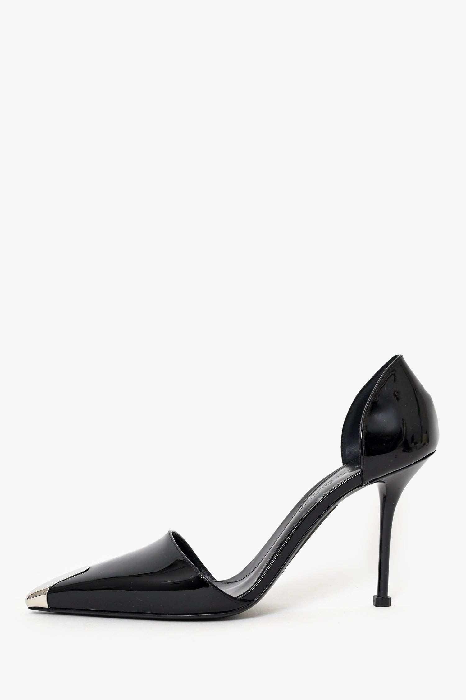 Refresh availabilityAlexander McQueen Black Patent Leather Harness Punk Pumps. Slip-on. Pointed-toe. Hardware at toe. Silver-tone hardware. Tonal stitching.