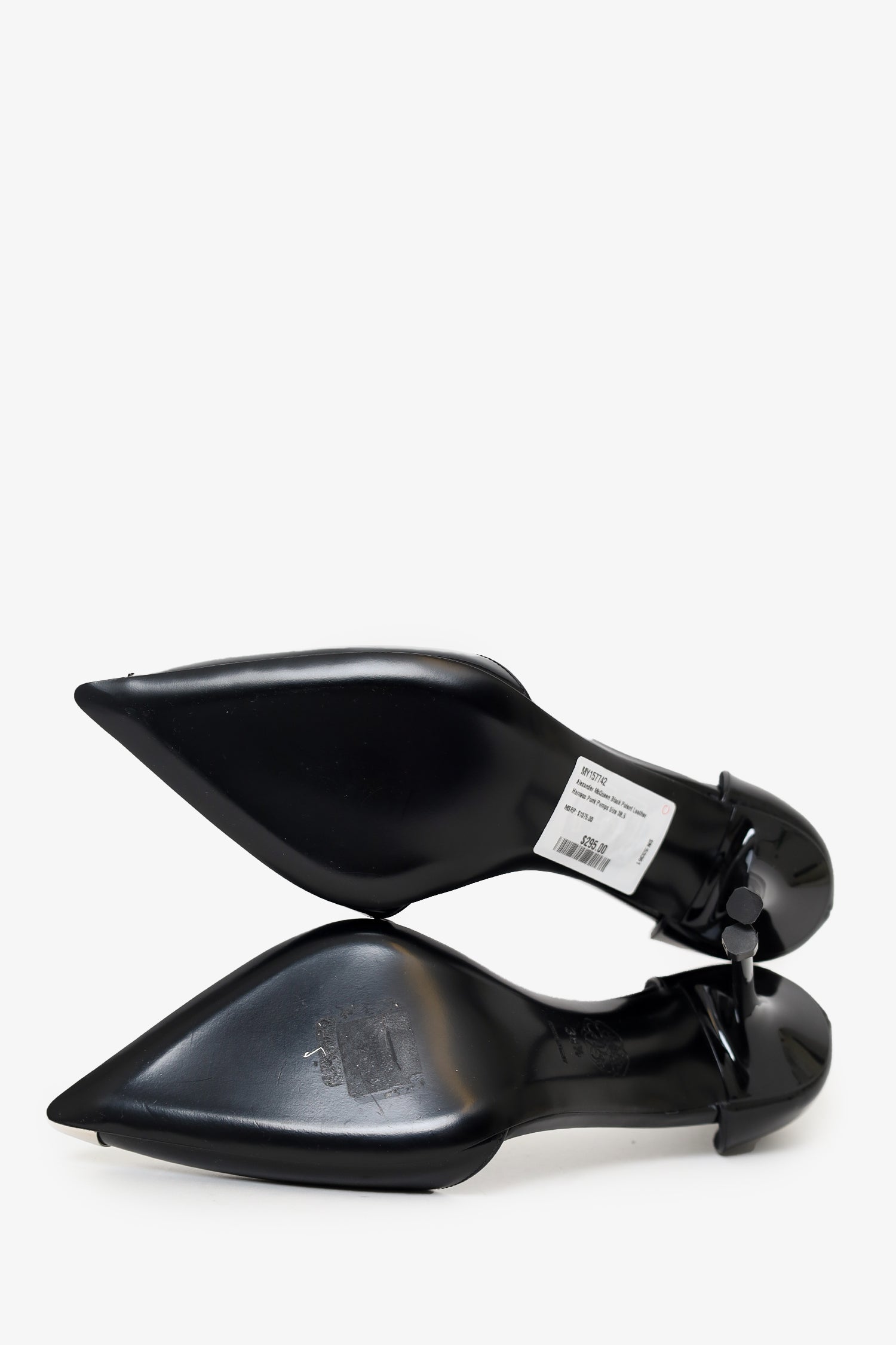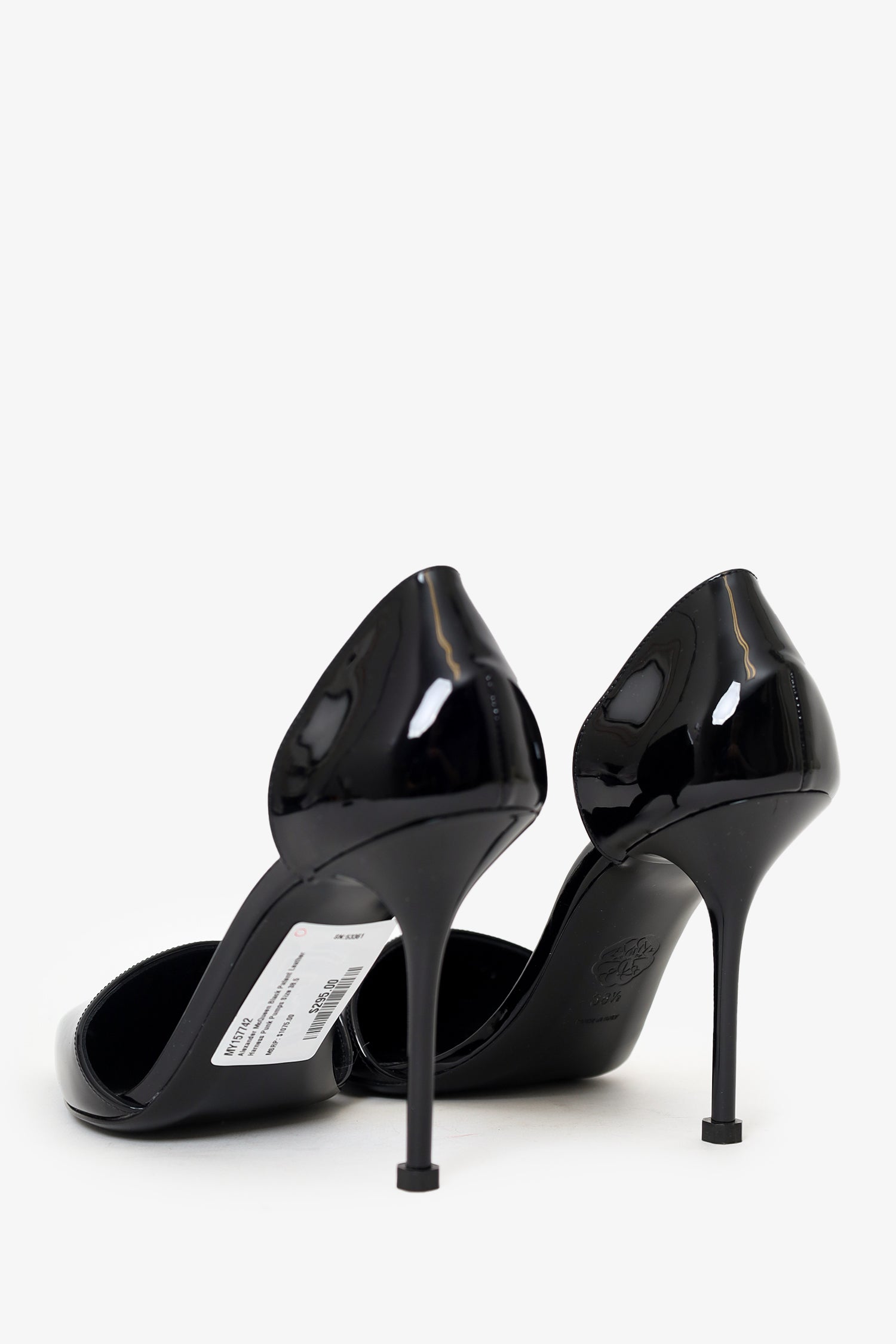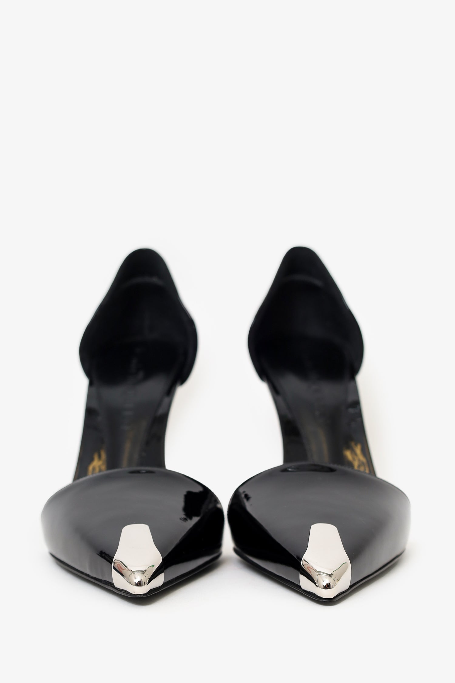 Refresh availabilityAlexander McQueen Black Patent Leather Harness Punk Pumps. Slip-on. Pointed-toe. Hardware at toe. Silver-tone hardware. Tonal stitching.