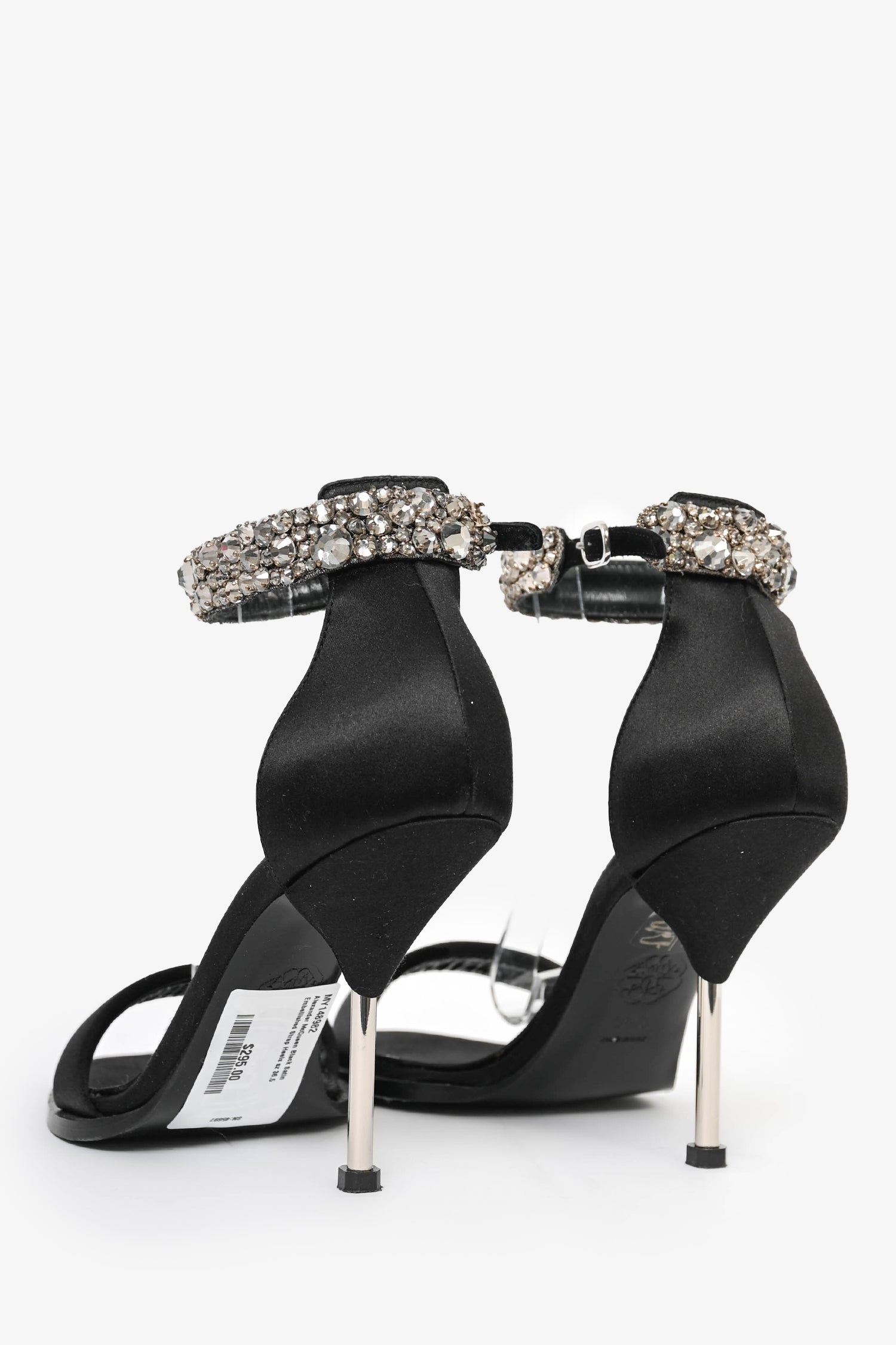 Alexander McQueen Black Satin Embellished Strap Heels Size 36.5