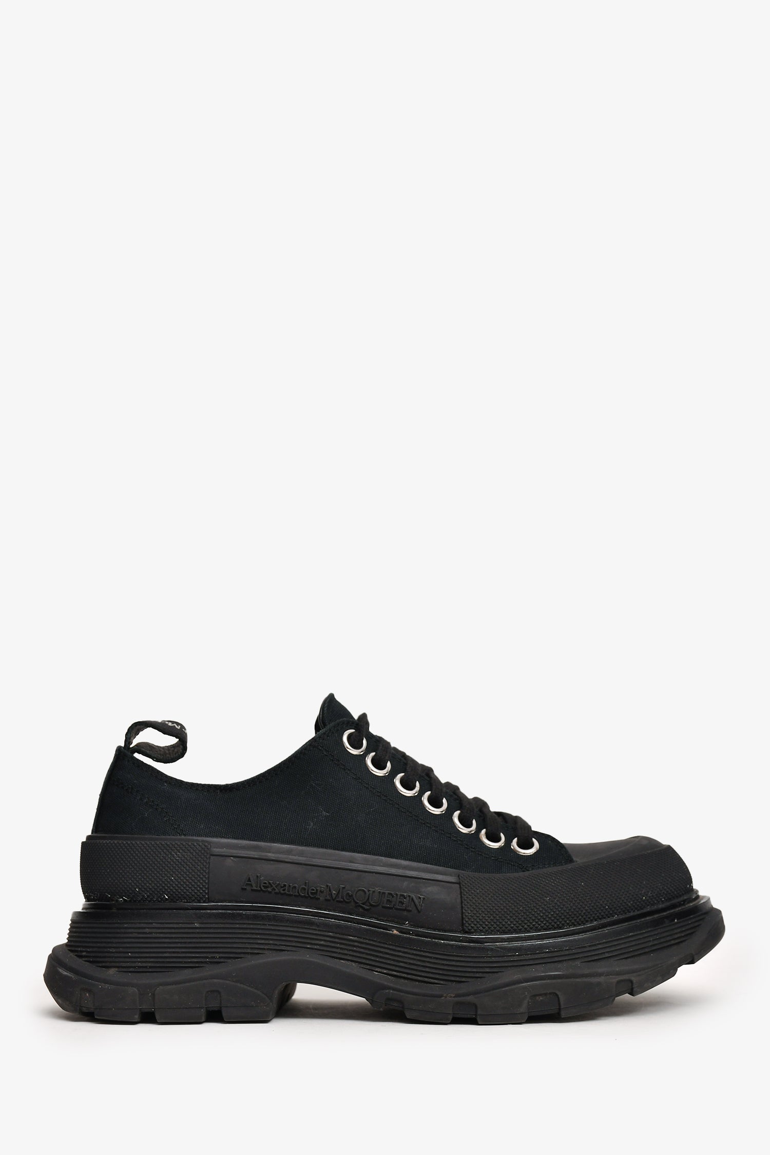Alexander McQueen Black Tread Slick Lace Up Sneakers Size 38.5