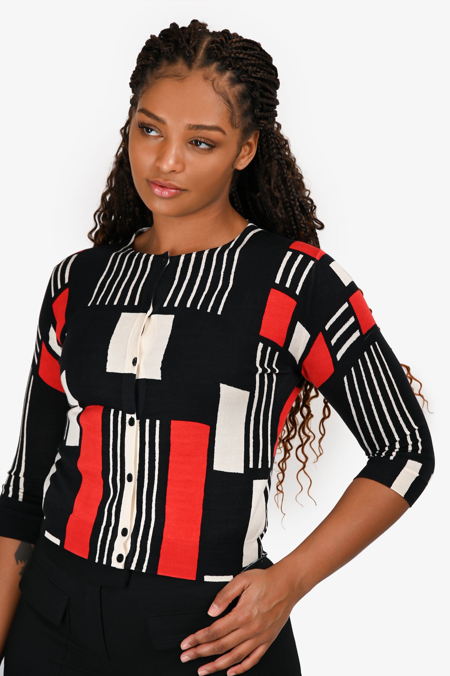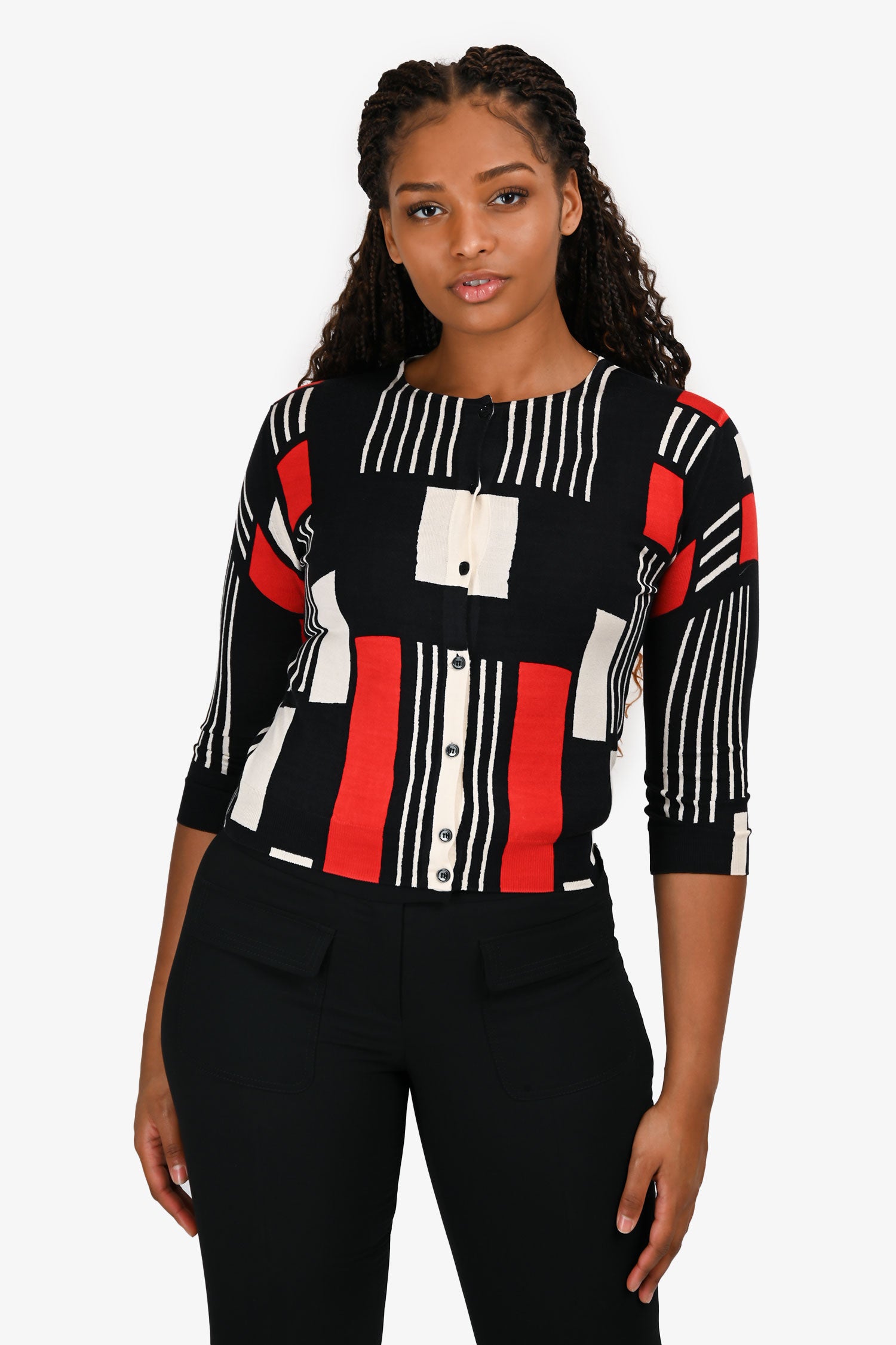 Alexander McQueen Black/Red/White Pattern Cardigan
