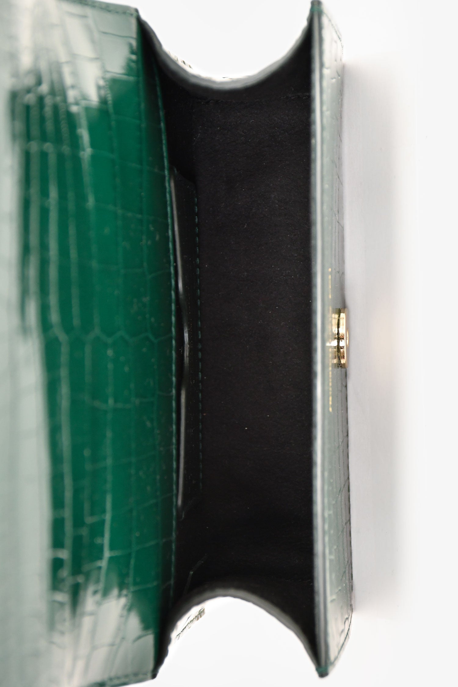 Alexander McQueen Green Croc Embossed Knuckle Crossbody