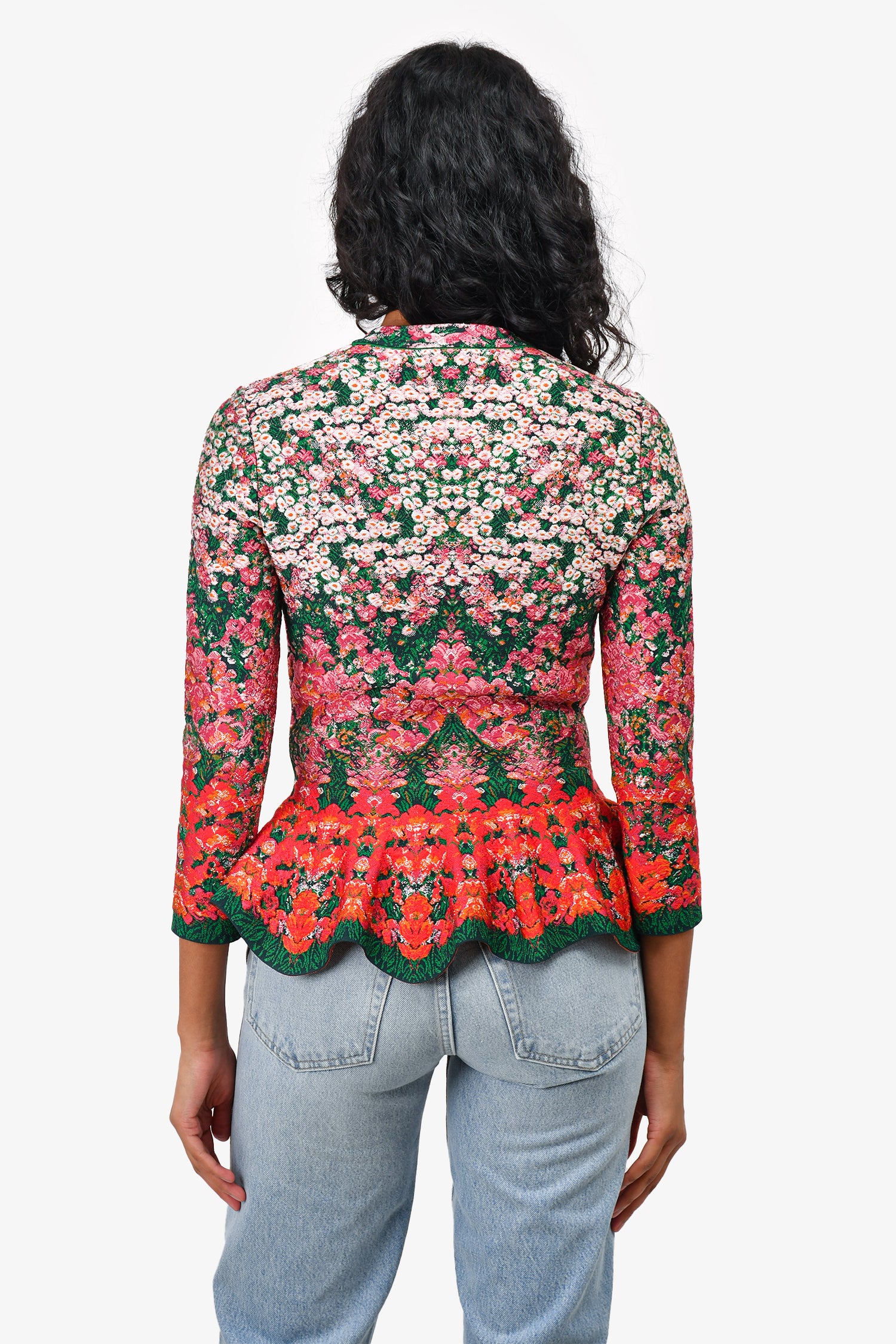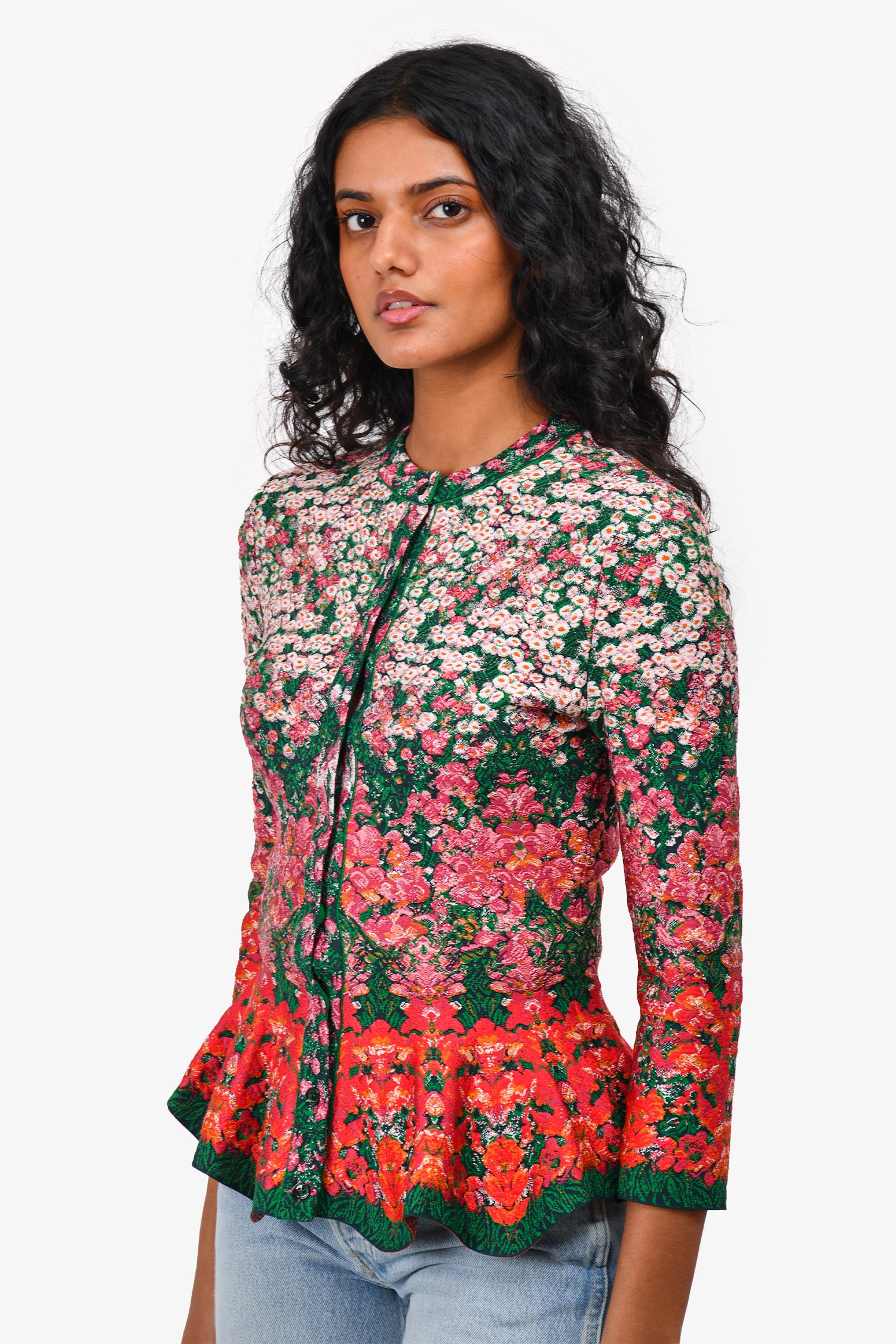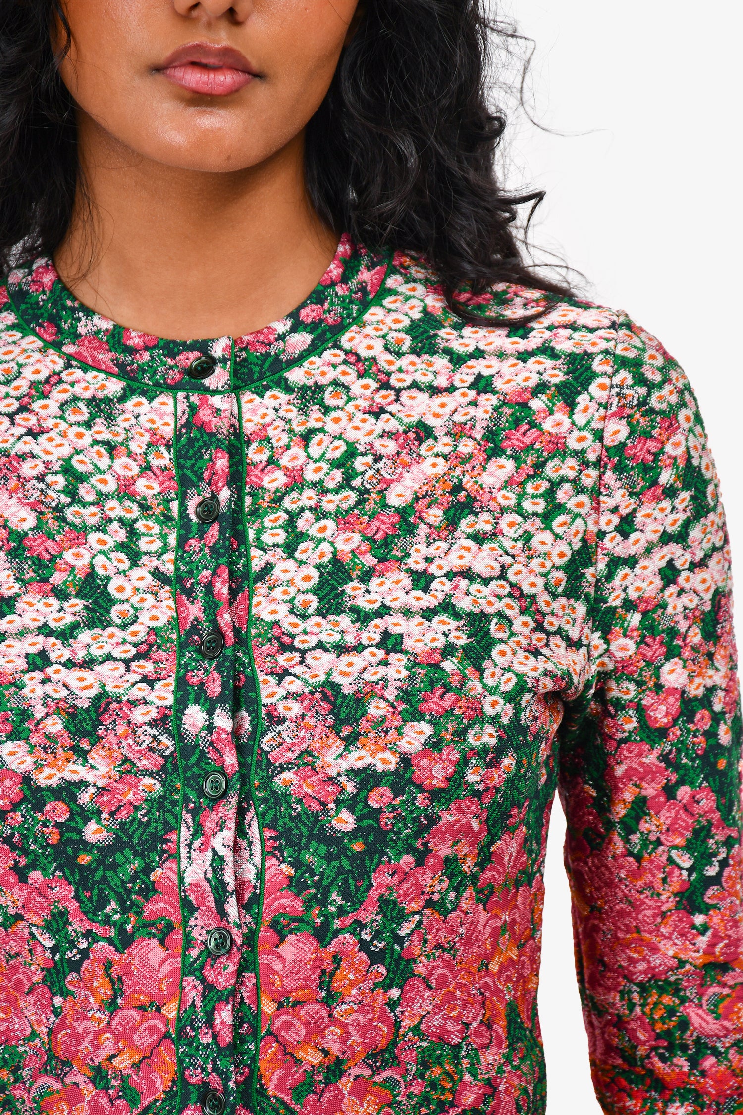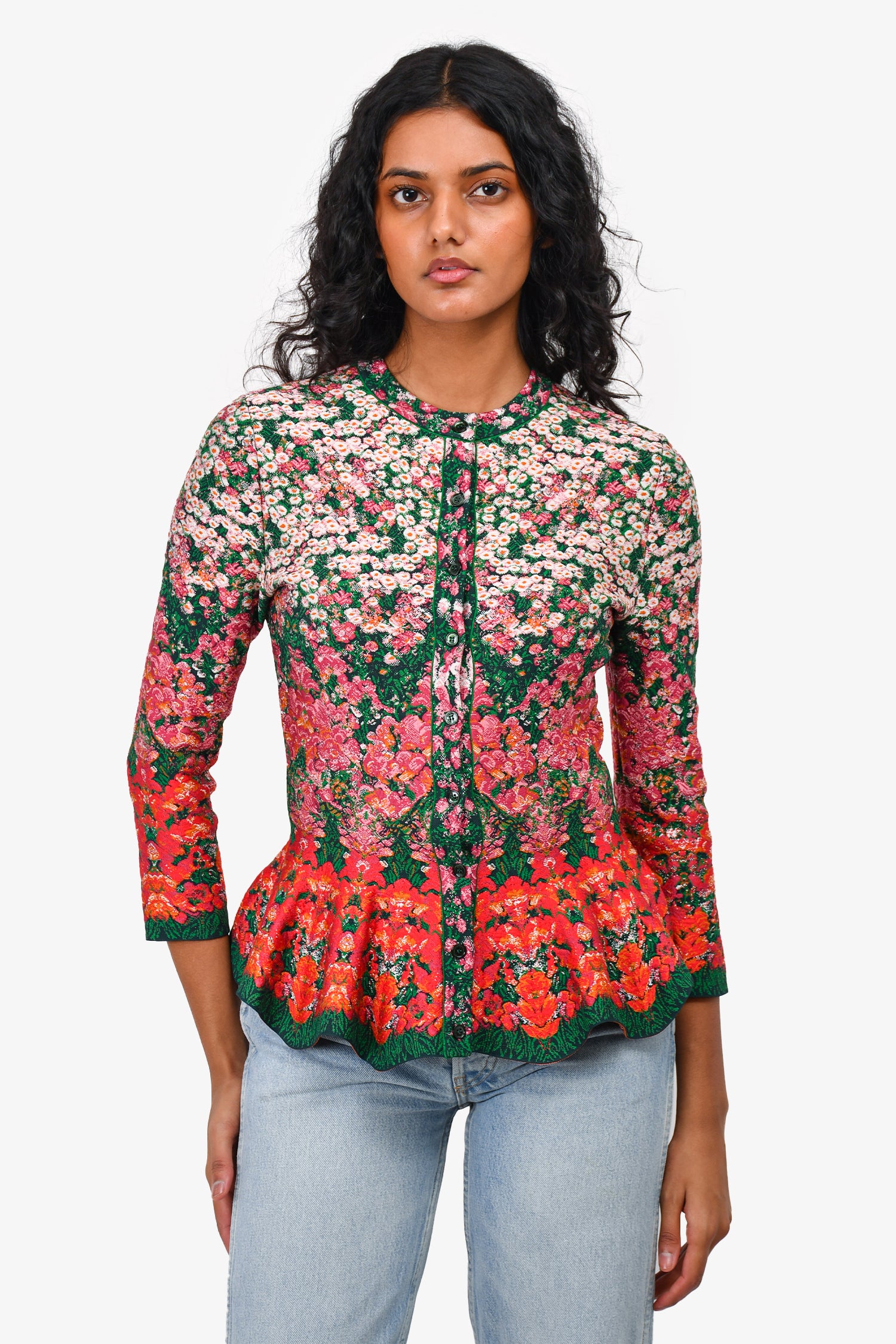 Alexander McQueen Green/Pink Floral Print Button Up Cardigan est Size XS