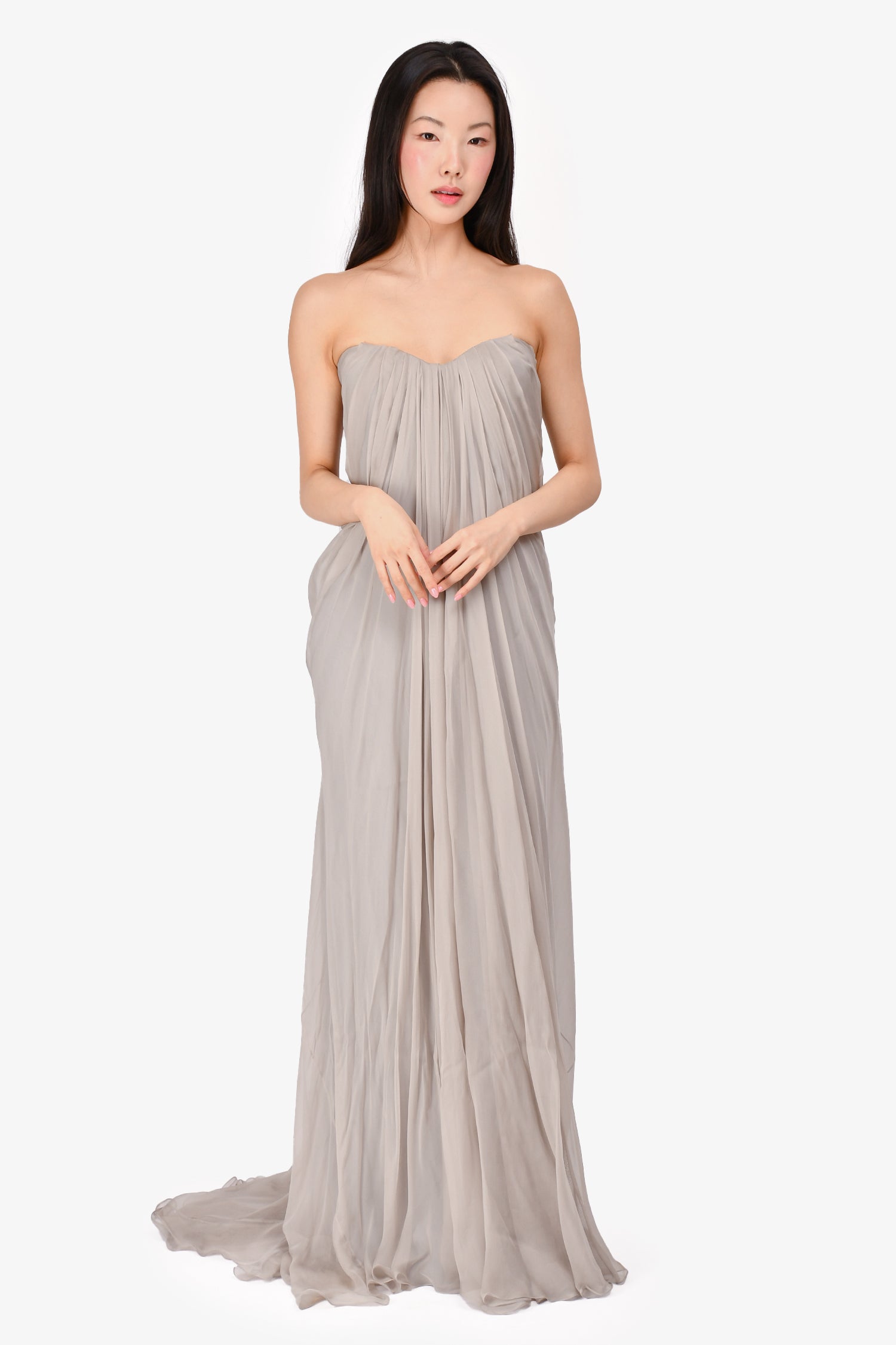 Alexander McQueen Grey Silk Strapless Maxi Dress Size 40