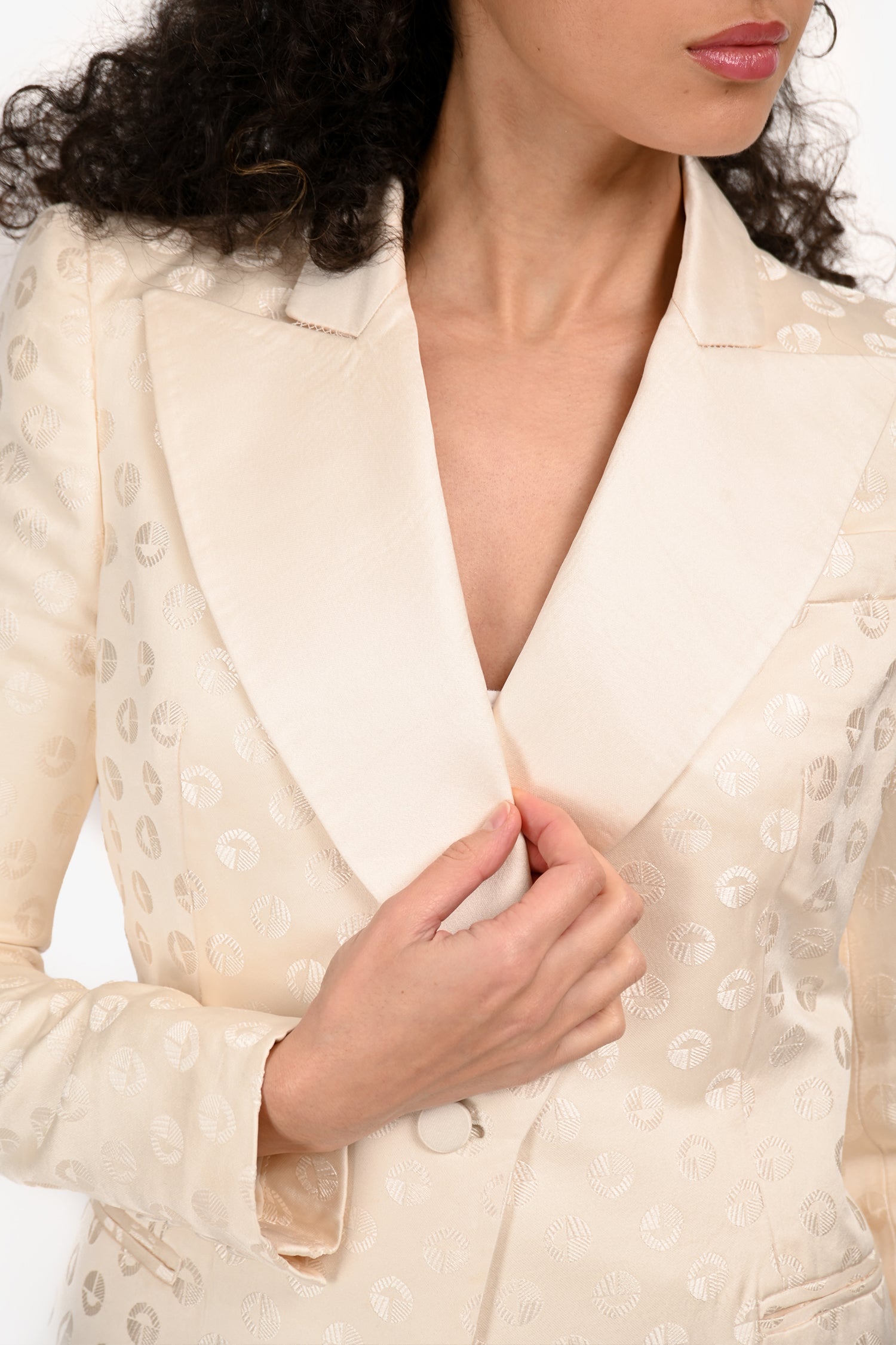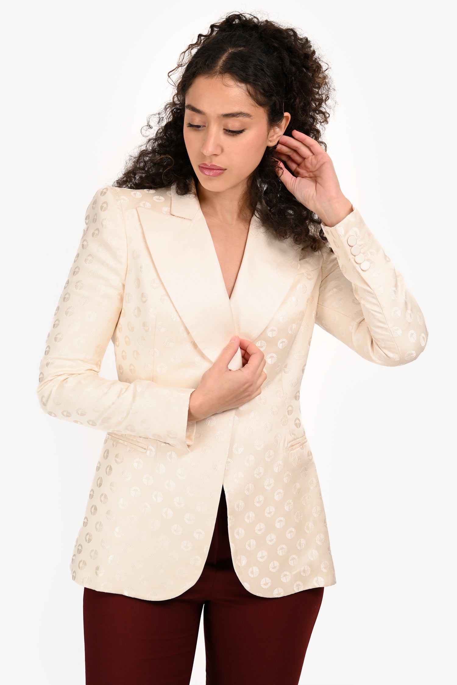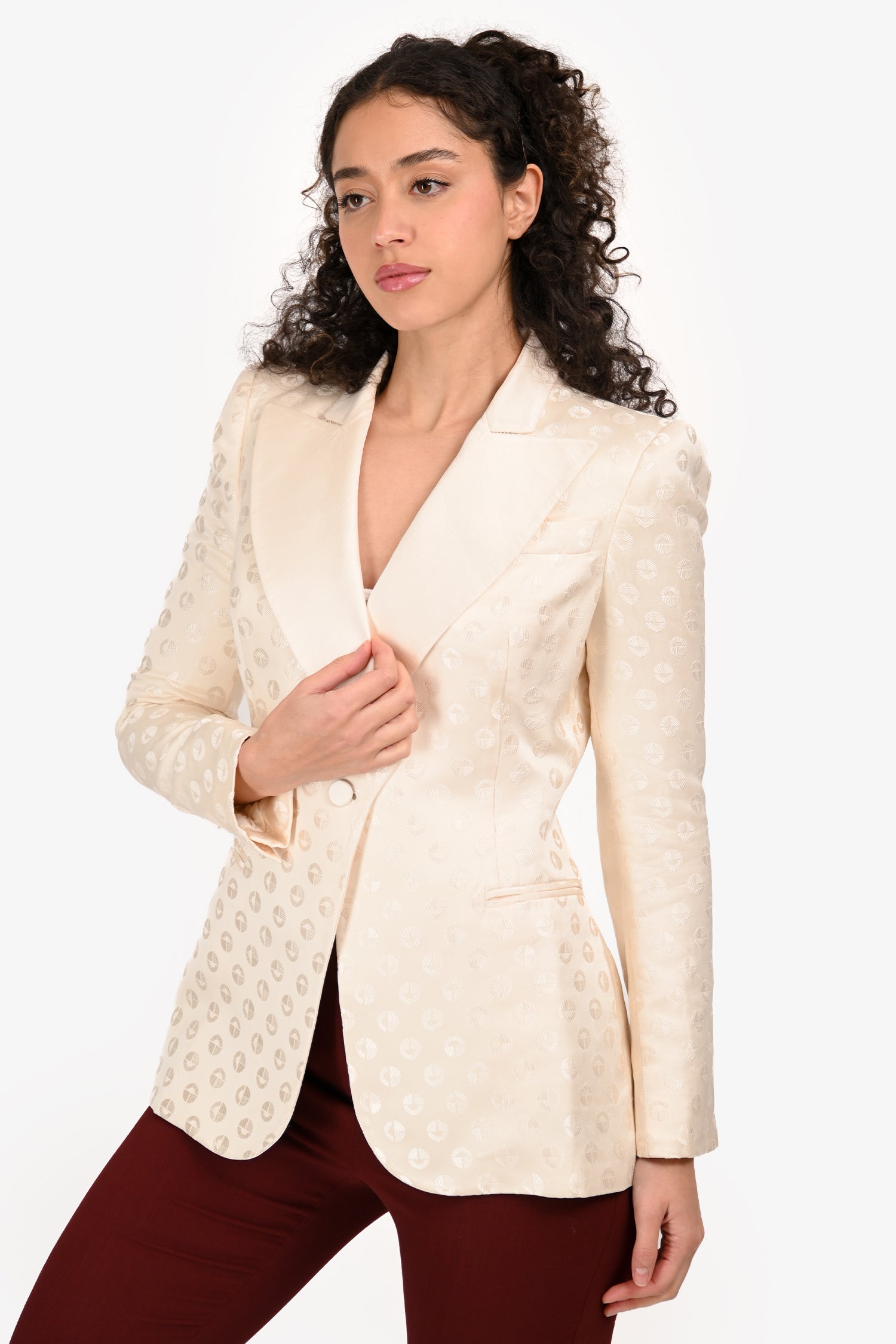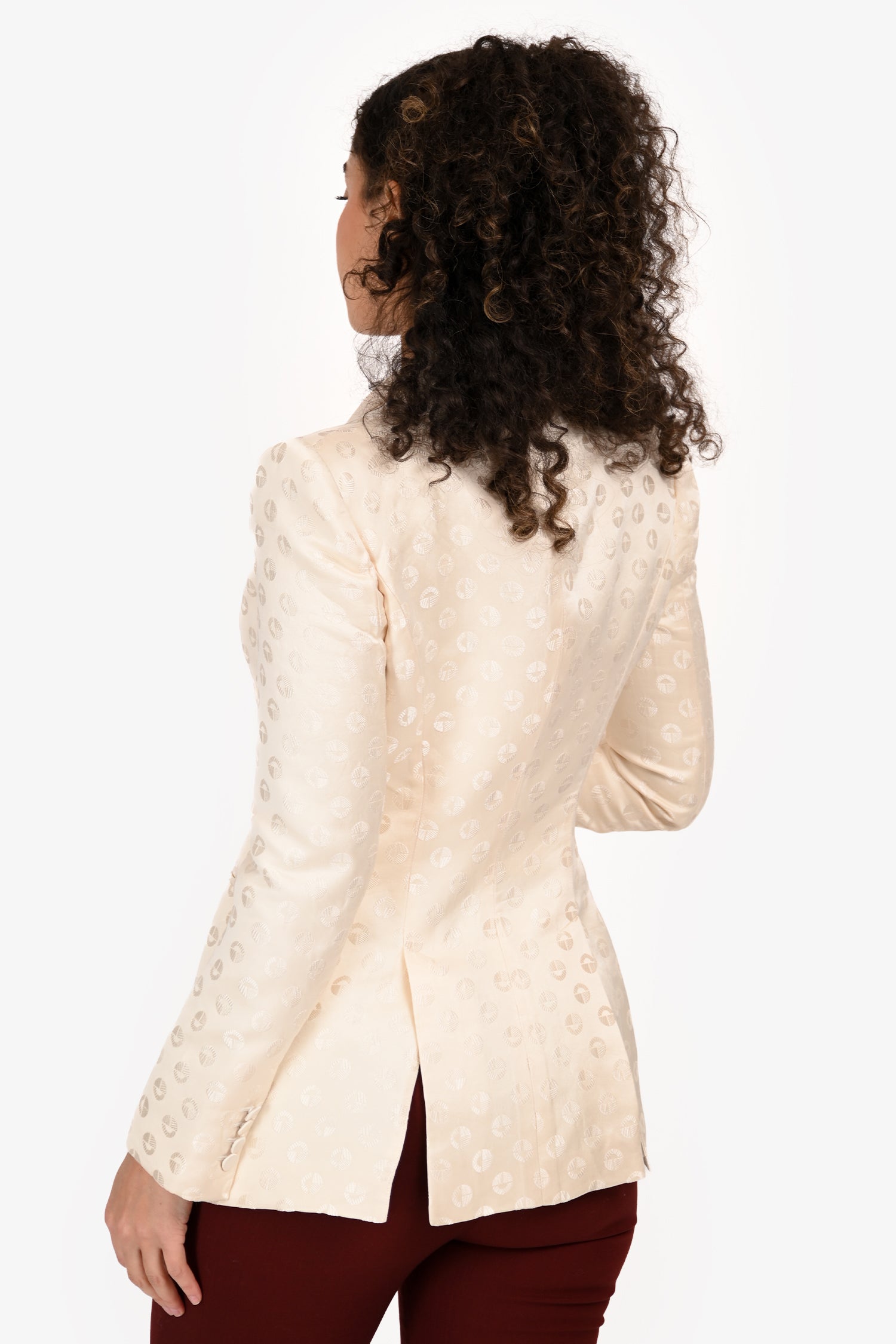 Alexander McQueen White Silk Patterned Single Breasted Blazer Size 40