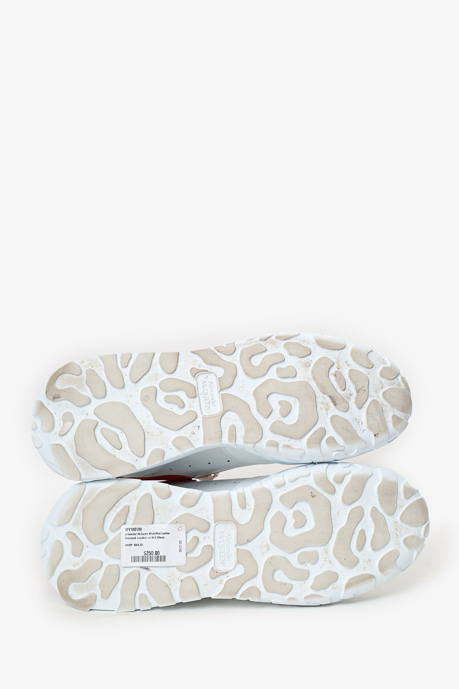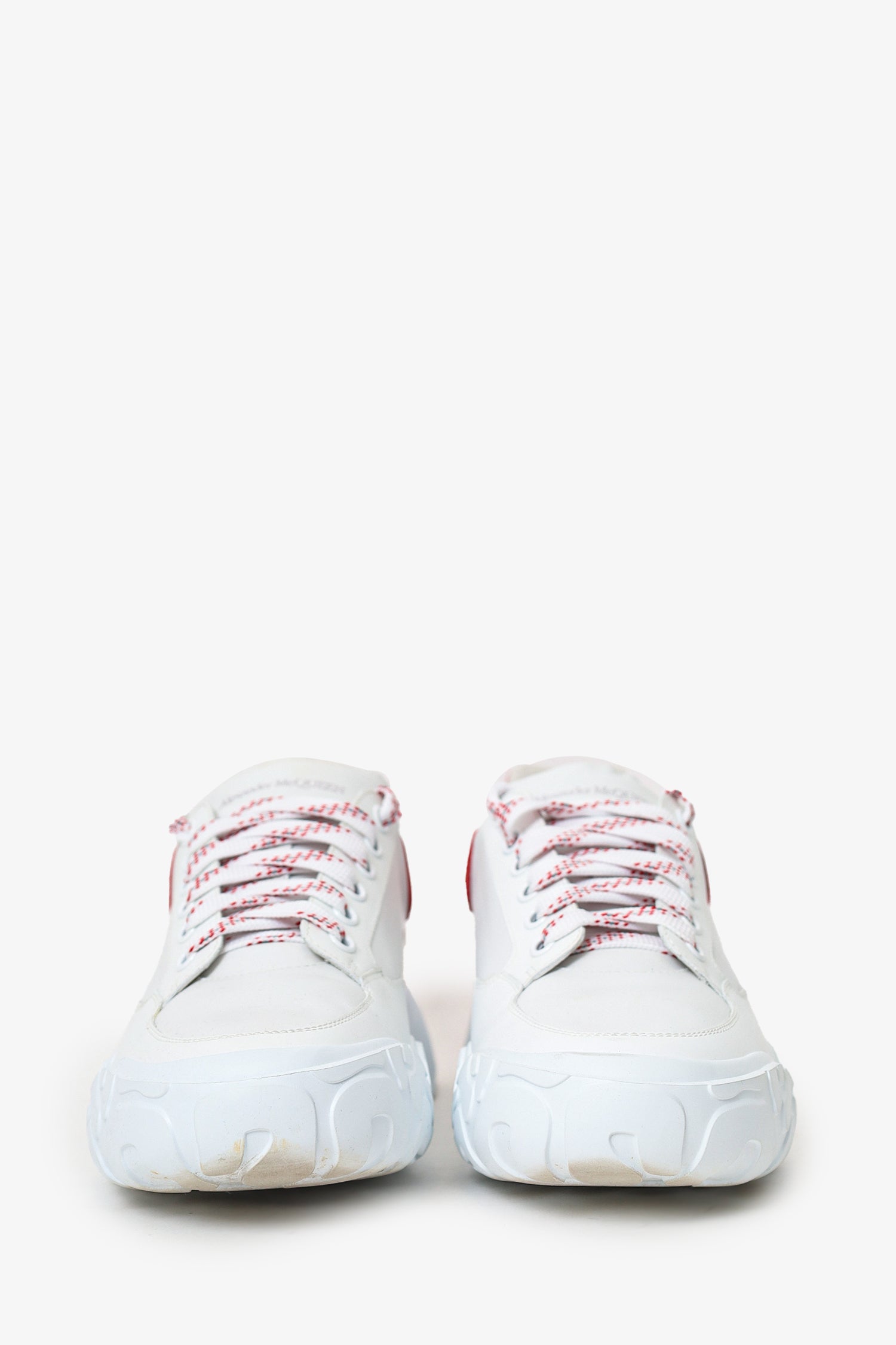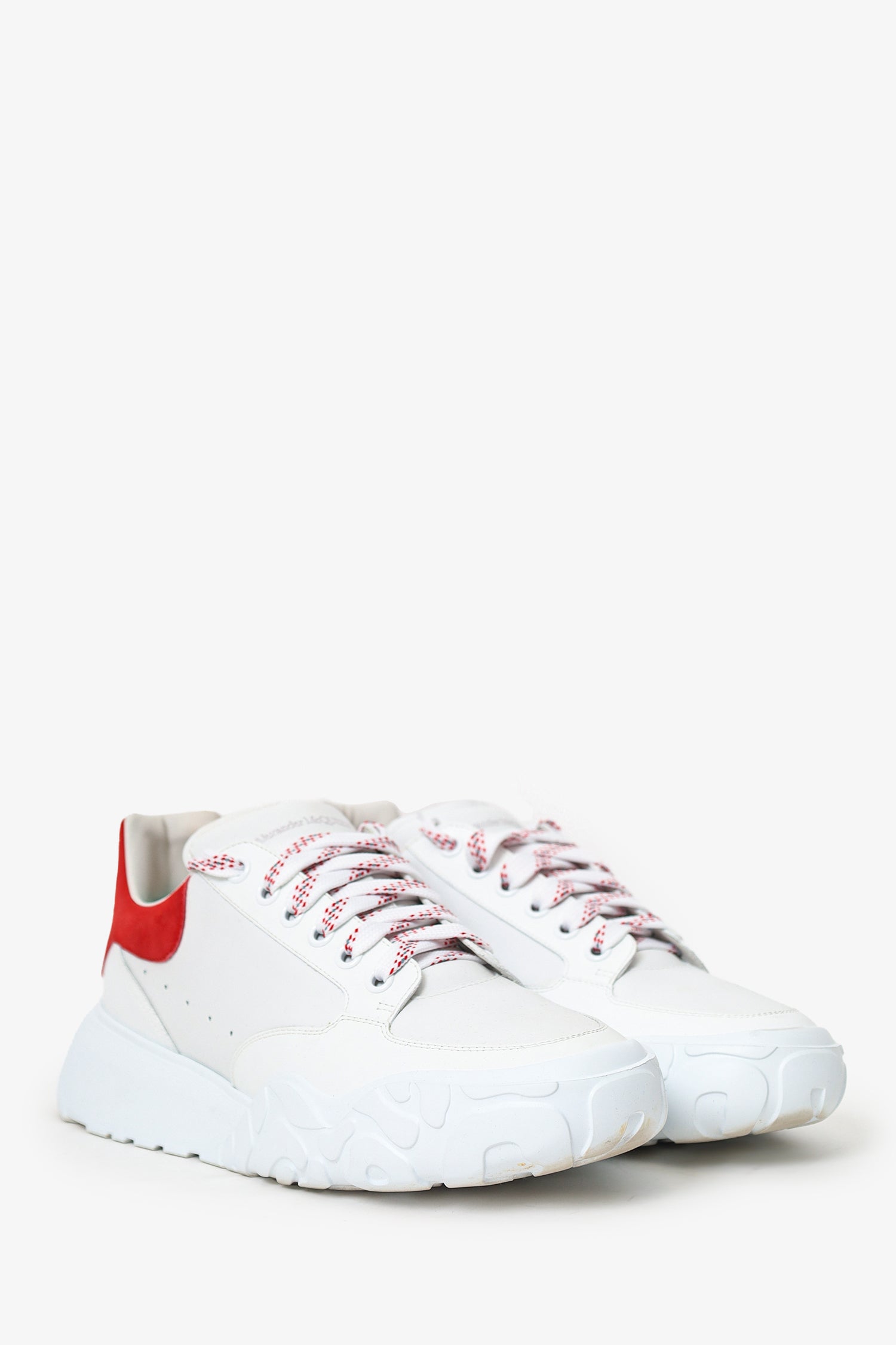 Refresh availabilityAlexander McQueen White/Red Leather Oversized Sneakers. Slip-on. Round toe. Front lace-up closure. Tonal stitching.