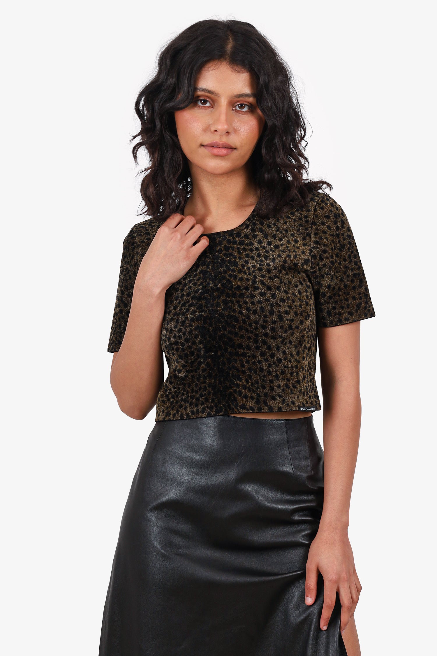 Refresh availabilityAlexander Wang Black/Brown Leopard Print Cropped. Pull-on. Round neckline. Tonal stitching.