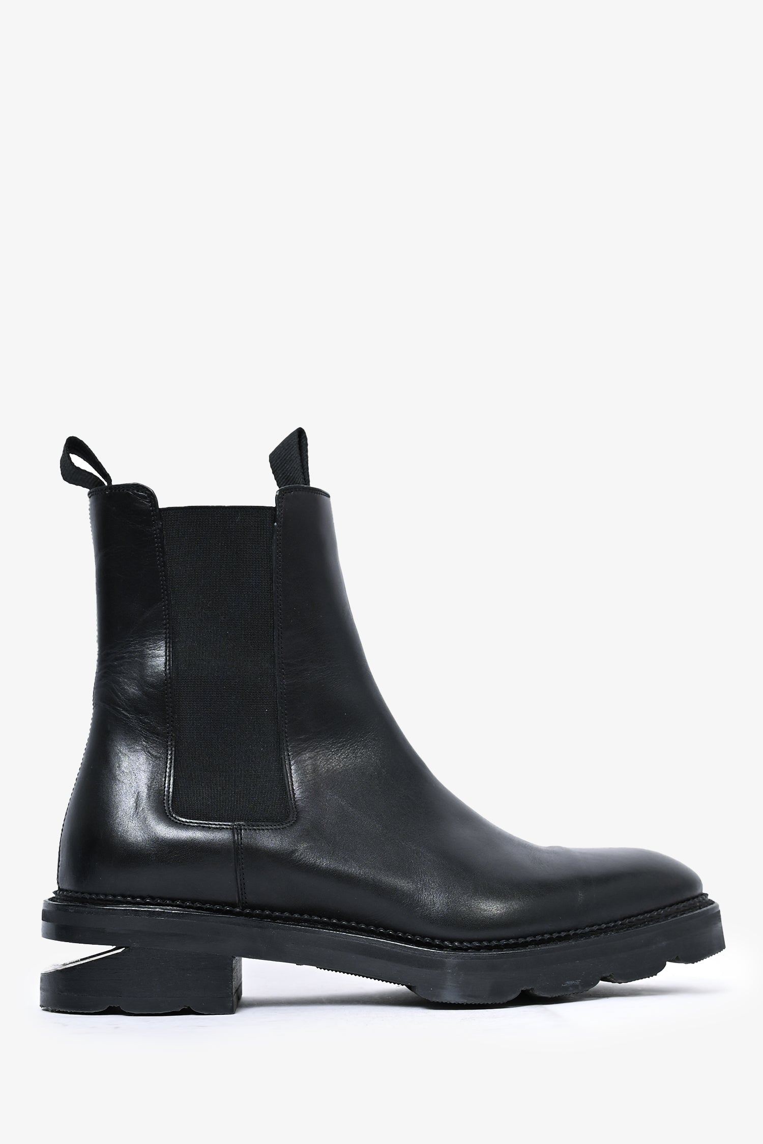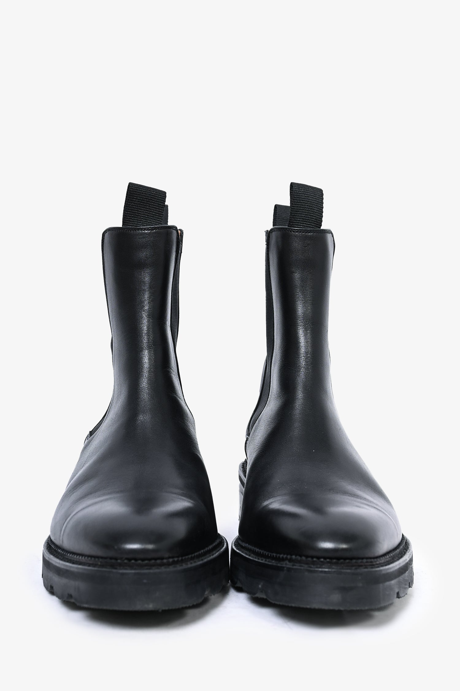 Refresh availabilityAlexander Wang Black Leather Chelsea Boots. Round toe. Rubber sole. Tonal stitching. Stacked heel with silver-tone hardware.