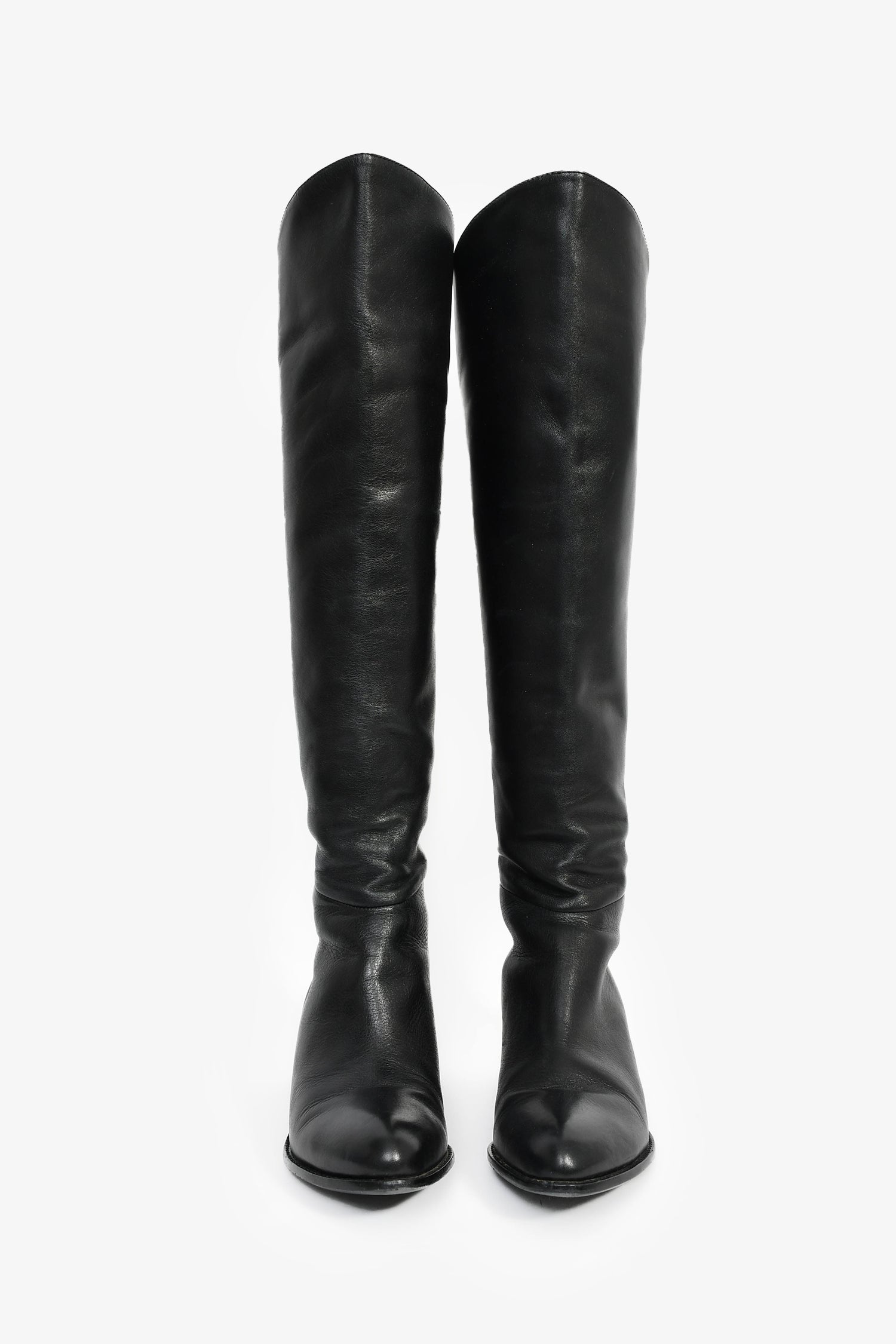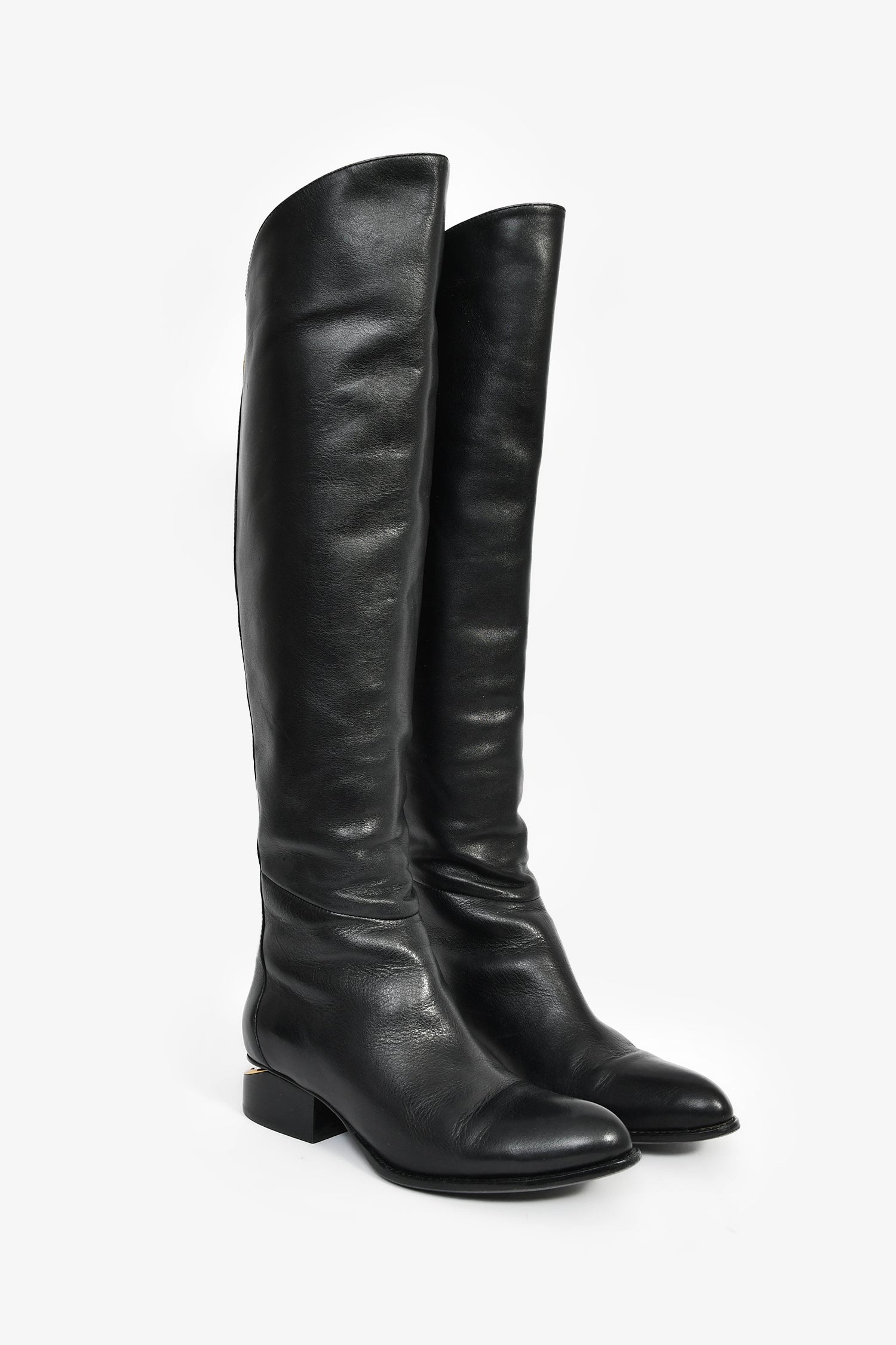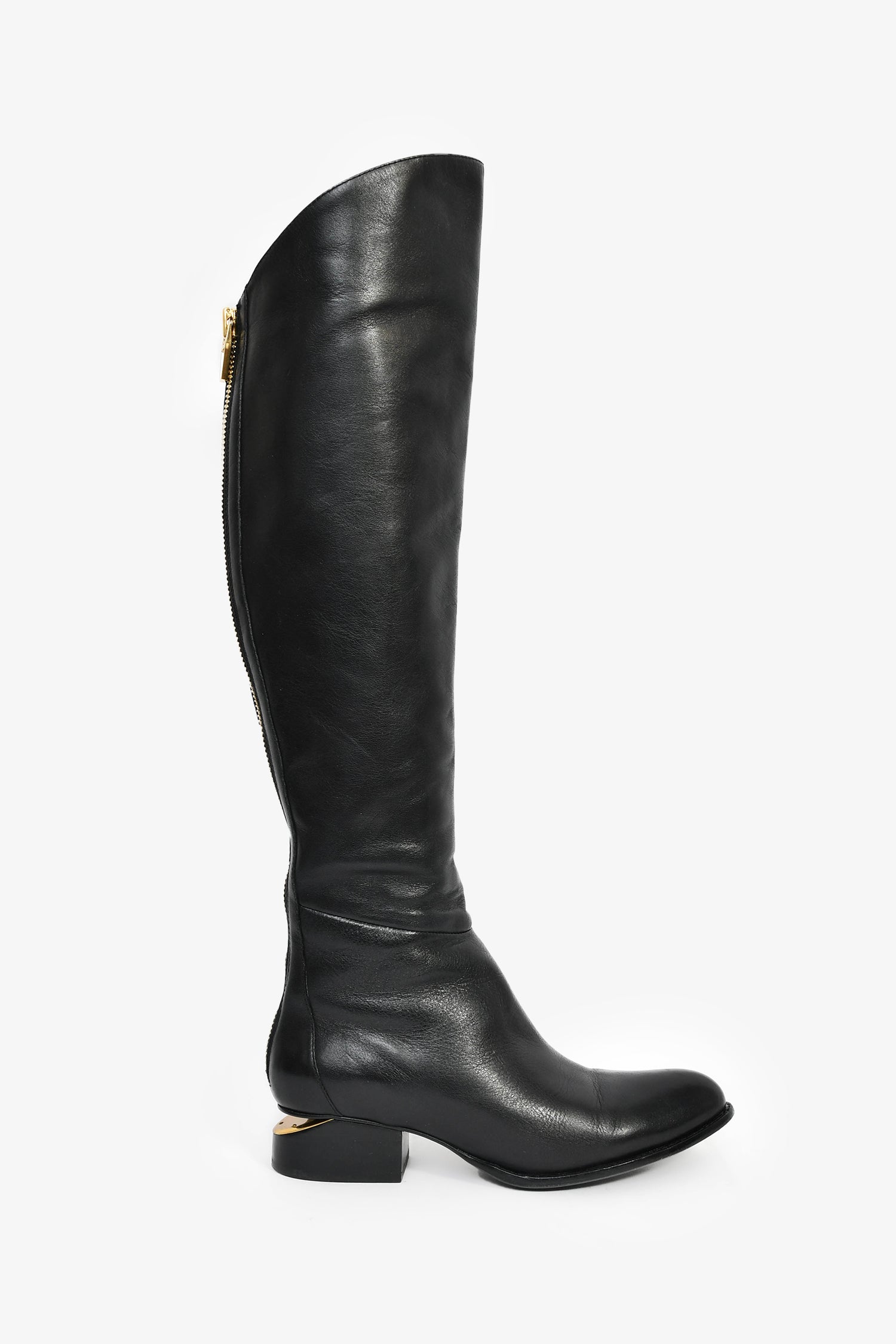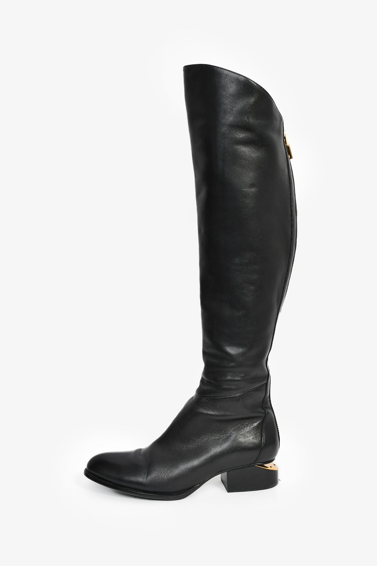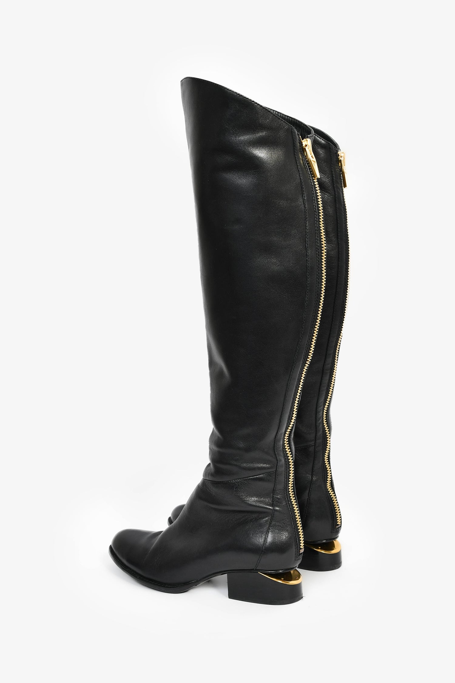 Refresh availabilityAlexander Wang Black Leather Cut-Out Knee High Boots. Pull-on. Pointed toe. Rear zip closure. Gold-tone hardware. Tonal stitching.