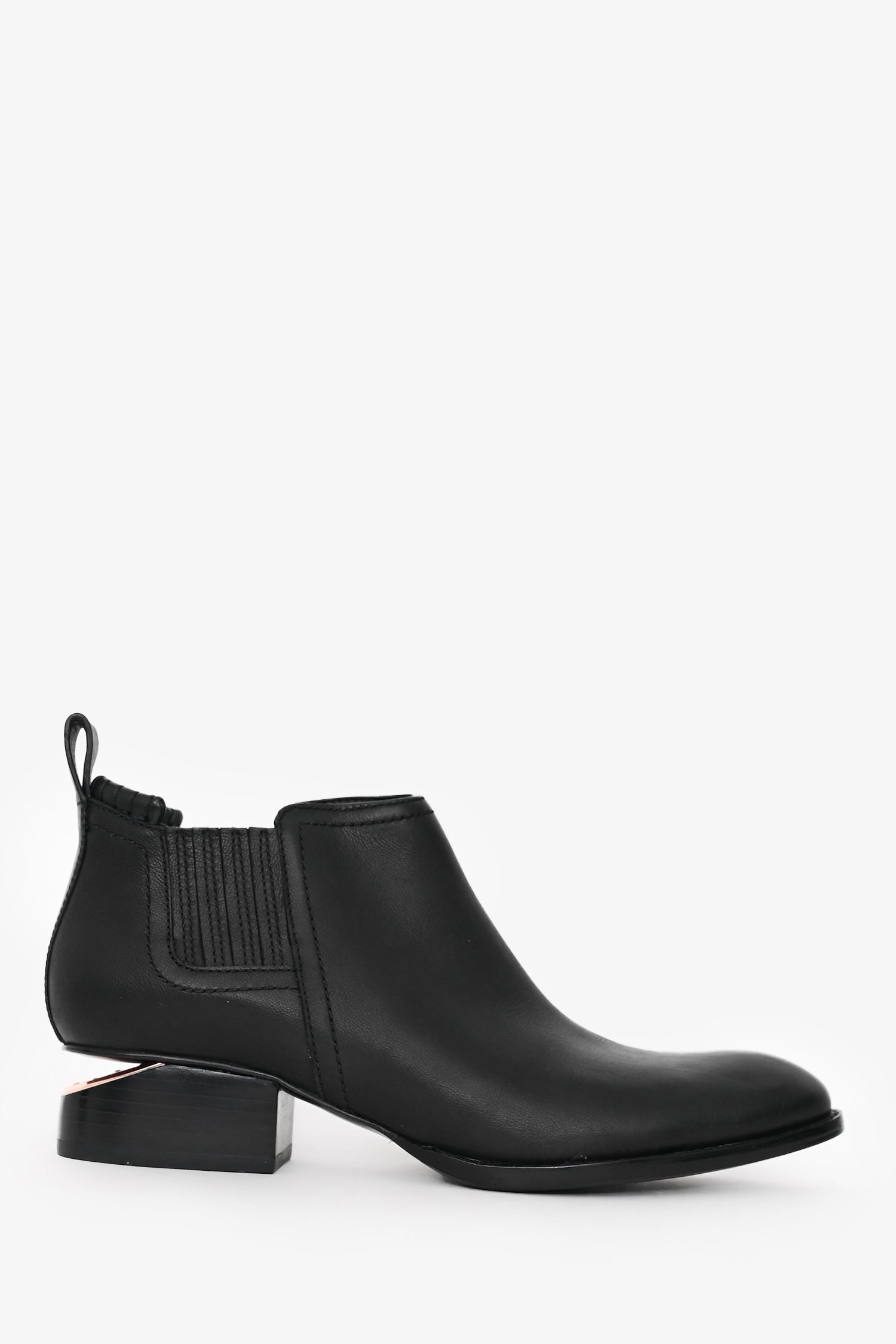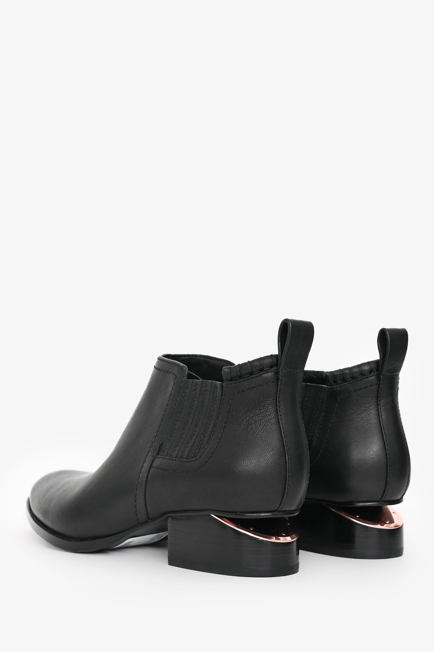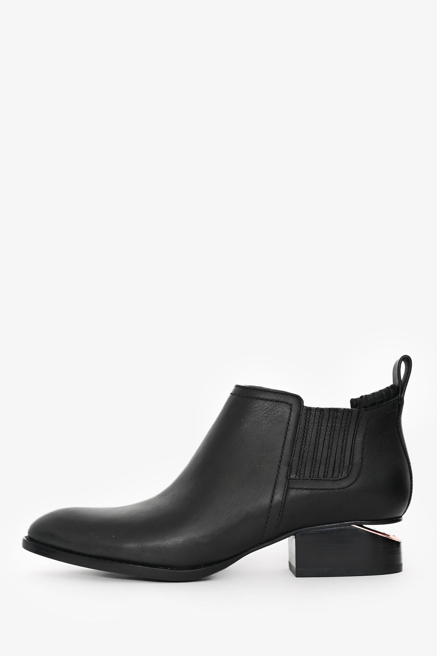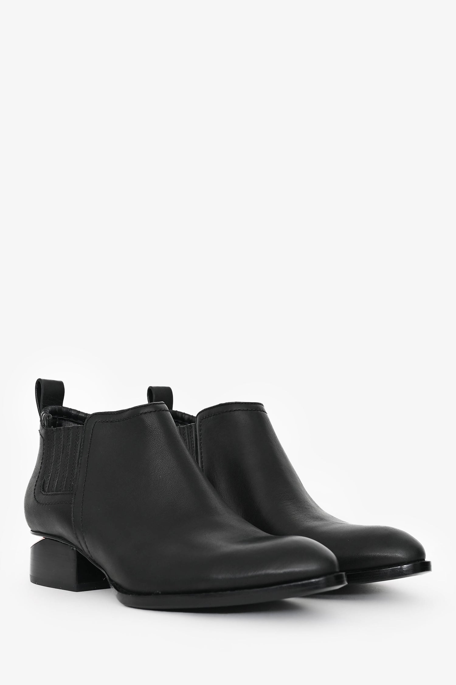 Refresh availabilityAlexander Wang Black Leather Kori Ankle Boots. Pull-on. Point toe. Cut-out detail on the heel.