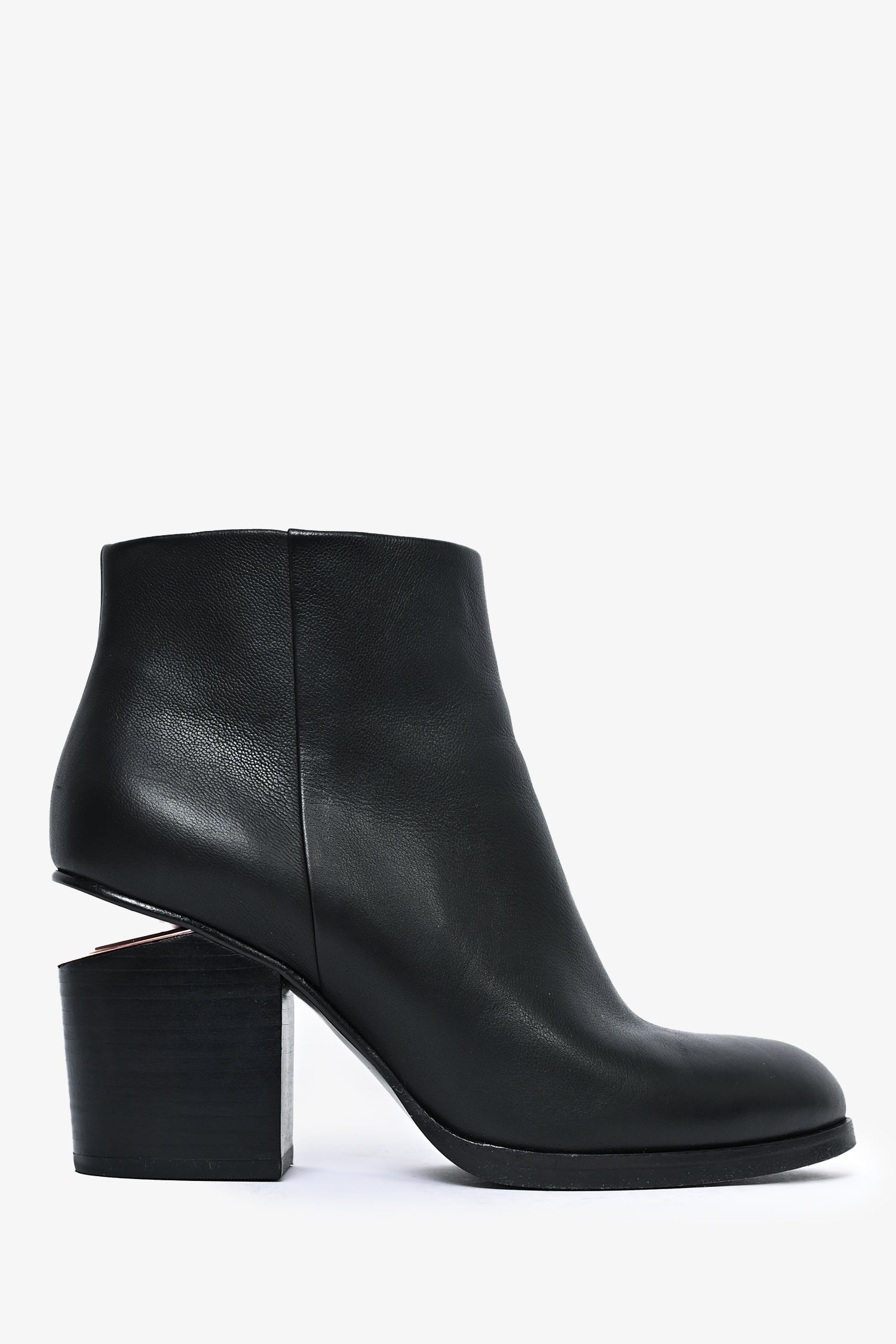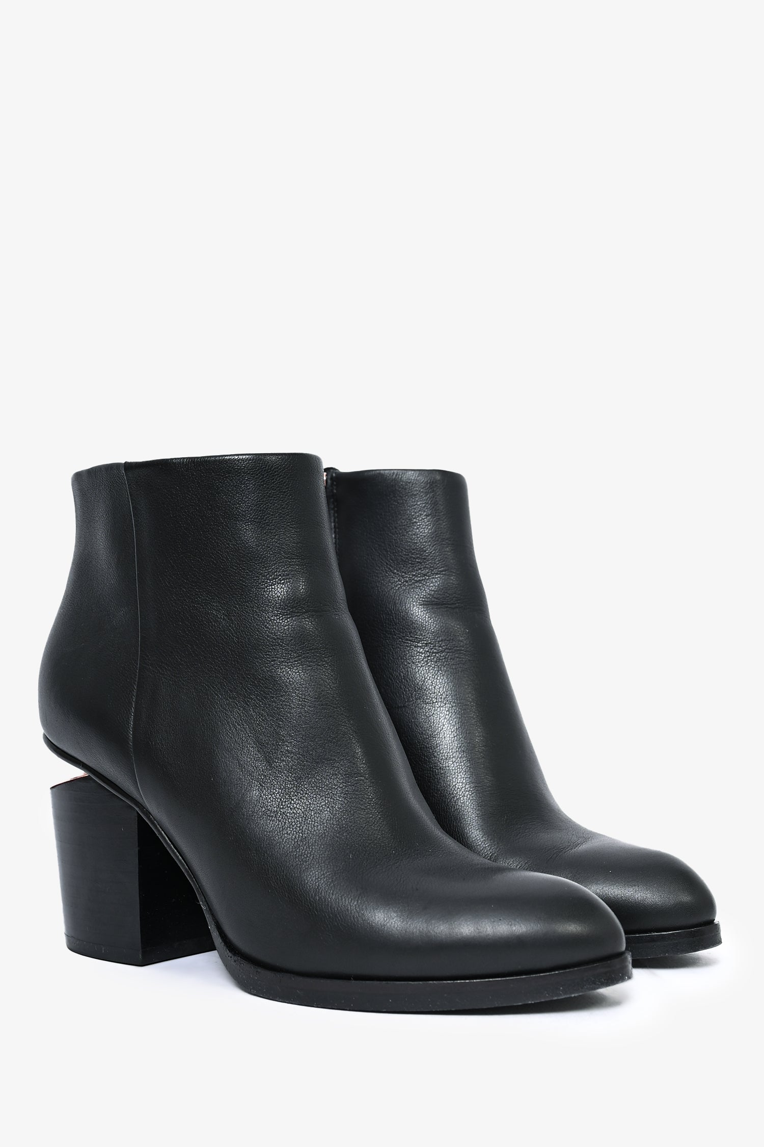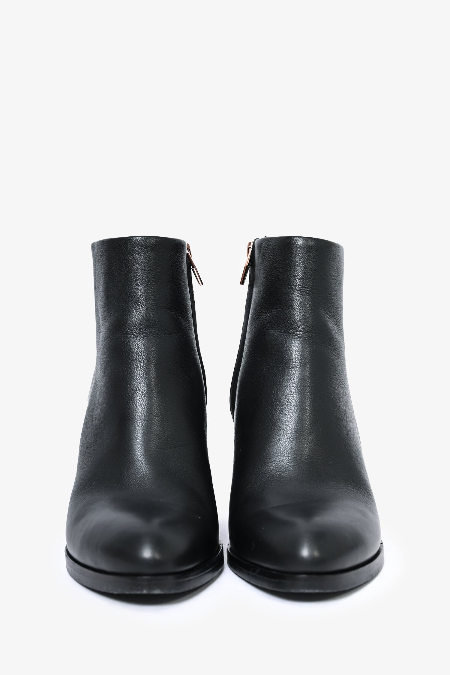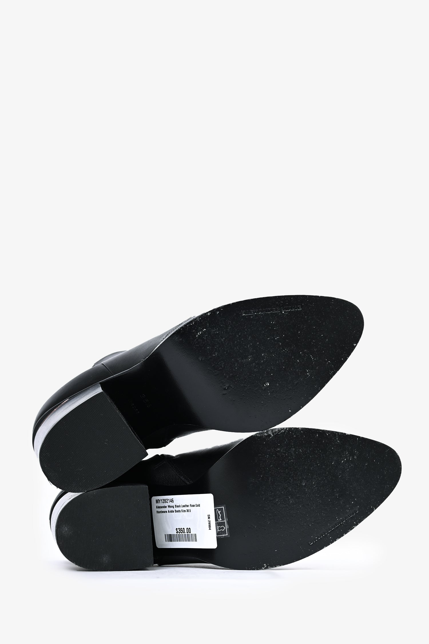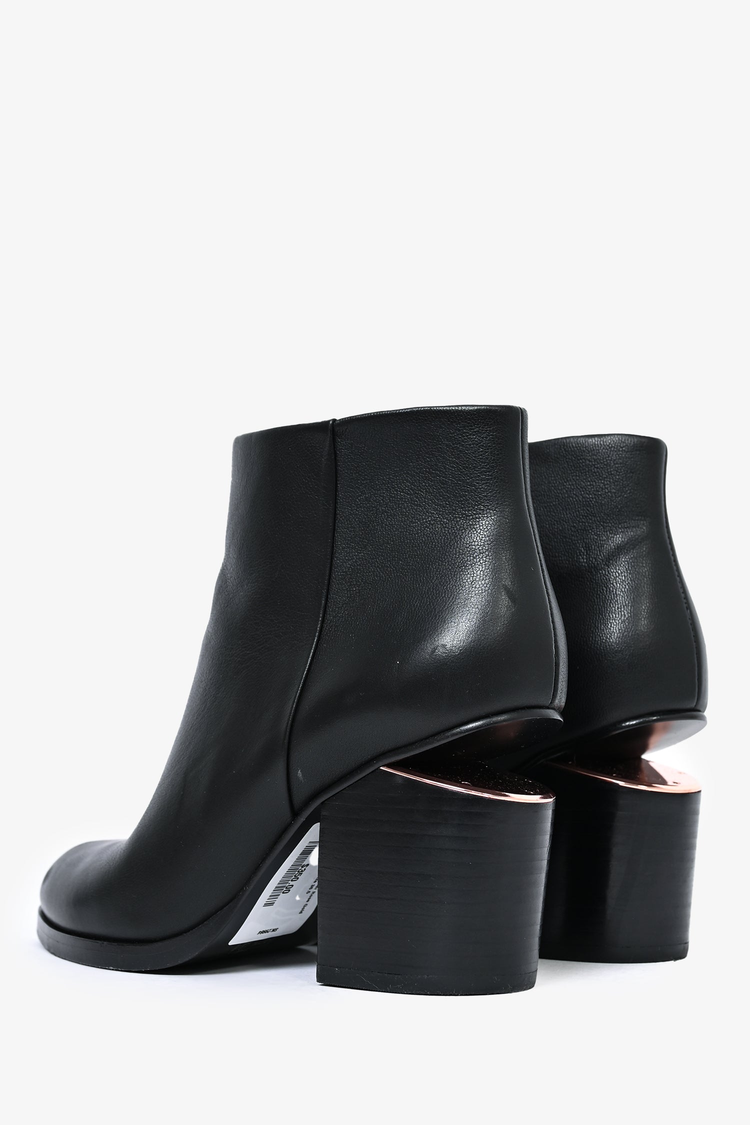 Refresh availabilityAlexander Wang Black Leather Rose Gold Hardware Ankle Boots. Round toe. Tonal stitching.
