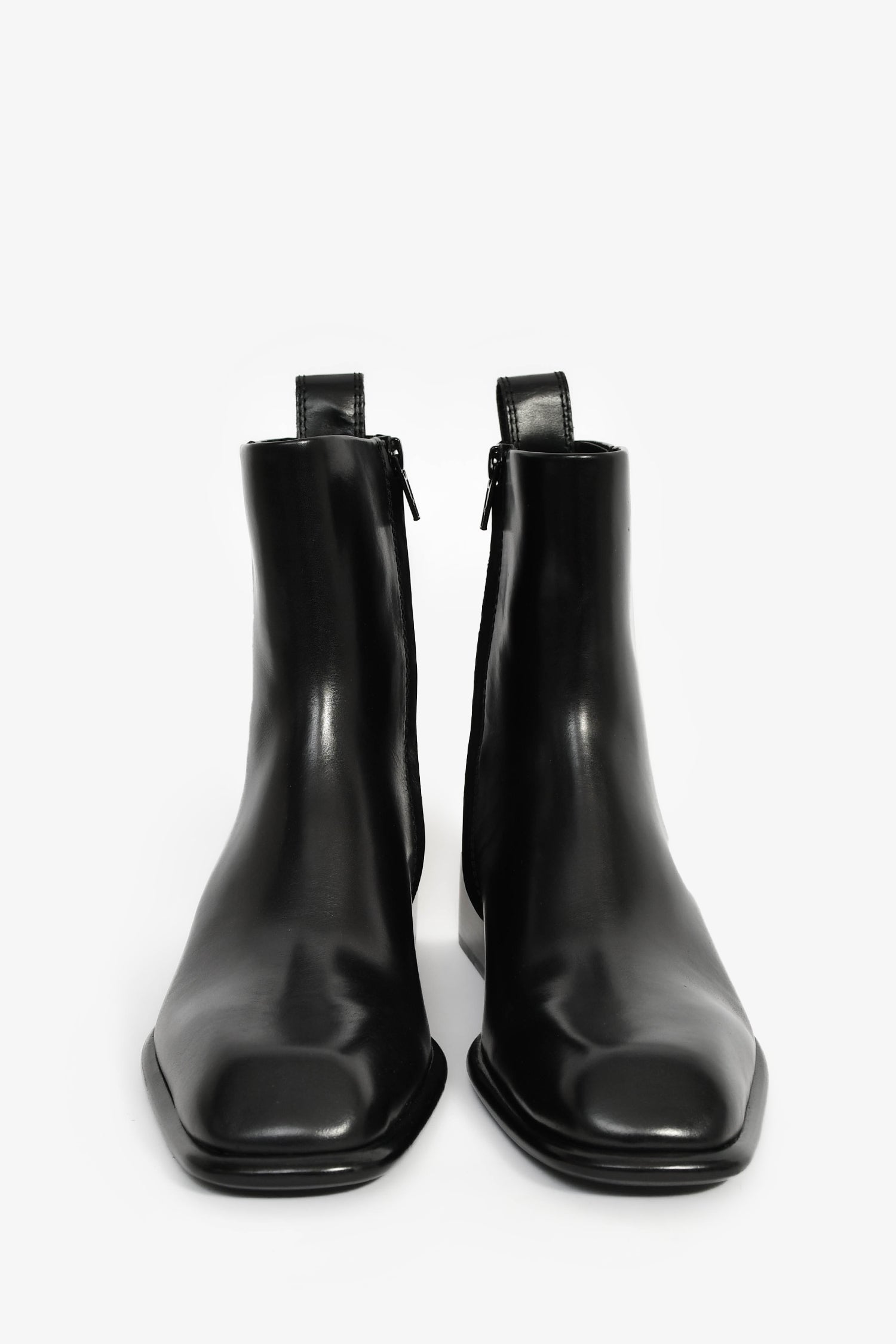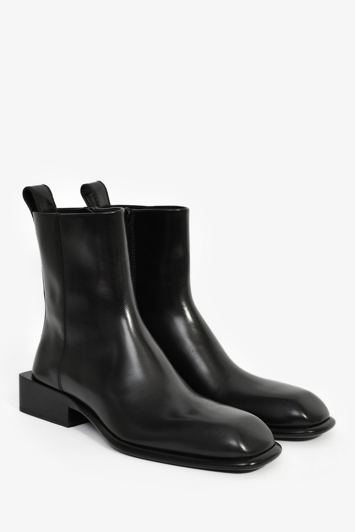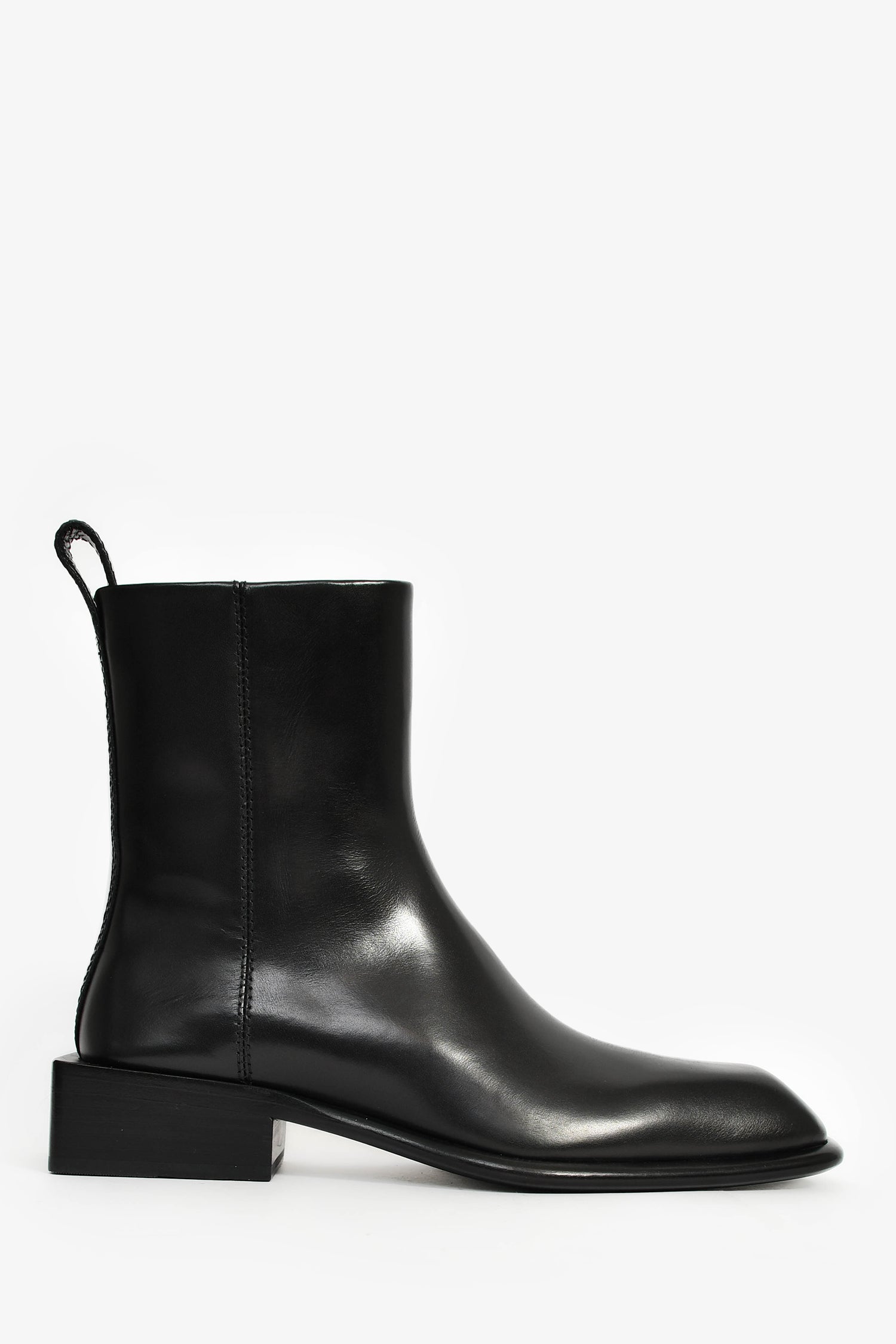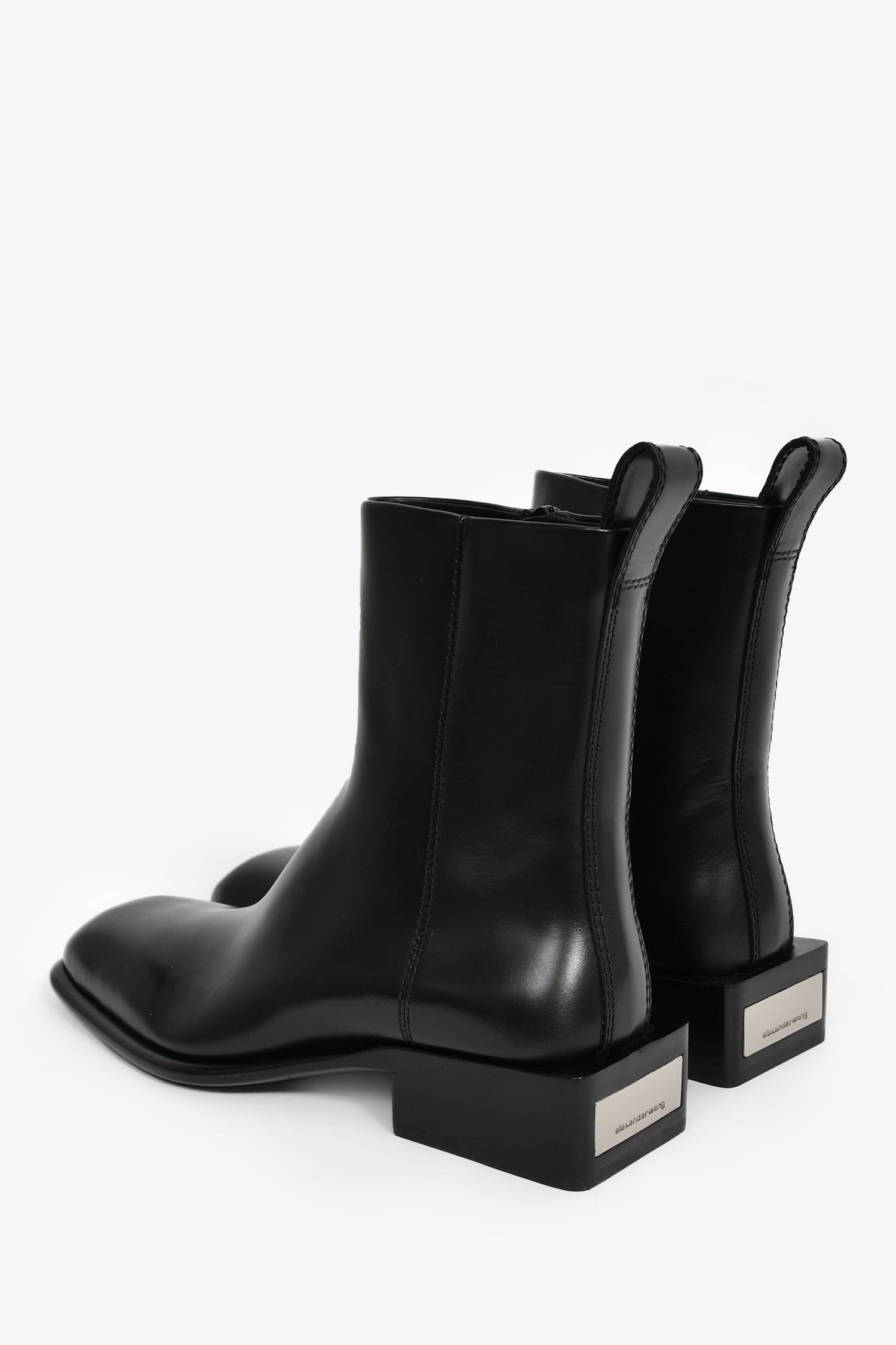 Refresh availabilityAlexander Wang Black Leather 'Throttie' Ankle Boot. Slip-on. Square toe. Silver-tone hardware. Square-shaped heel. Tonal stitching.