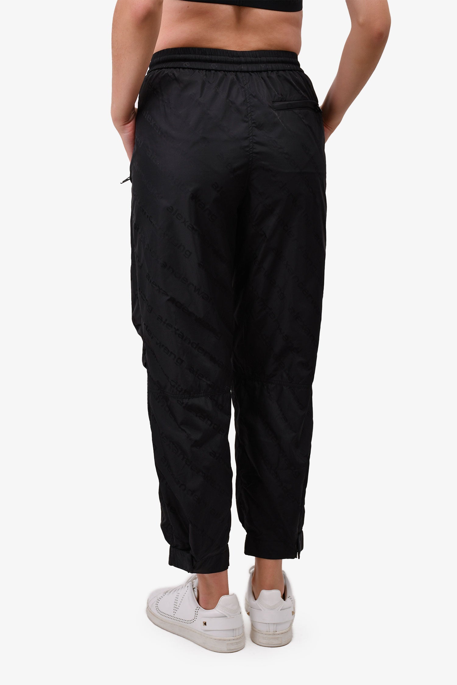 Refresh availabilityAlexander Wang Black Nylon Joggers. Side pockets with zippers. Pants leg with velcro straps. Brand name printed throughout the item.