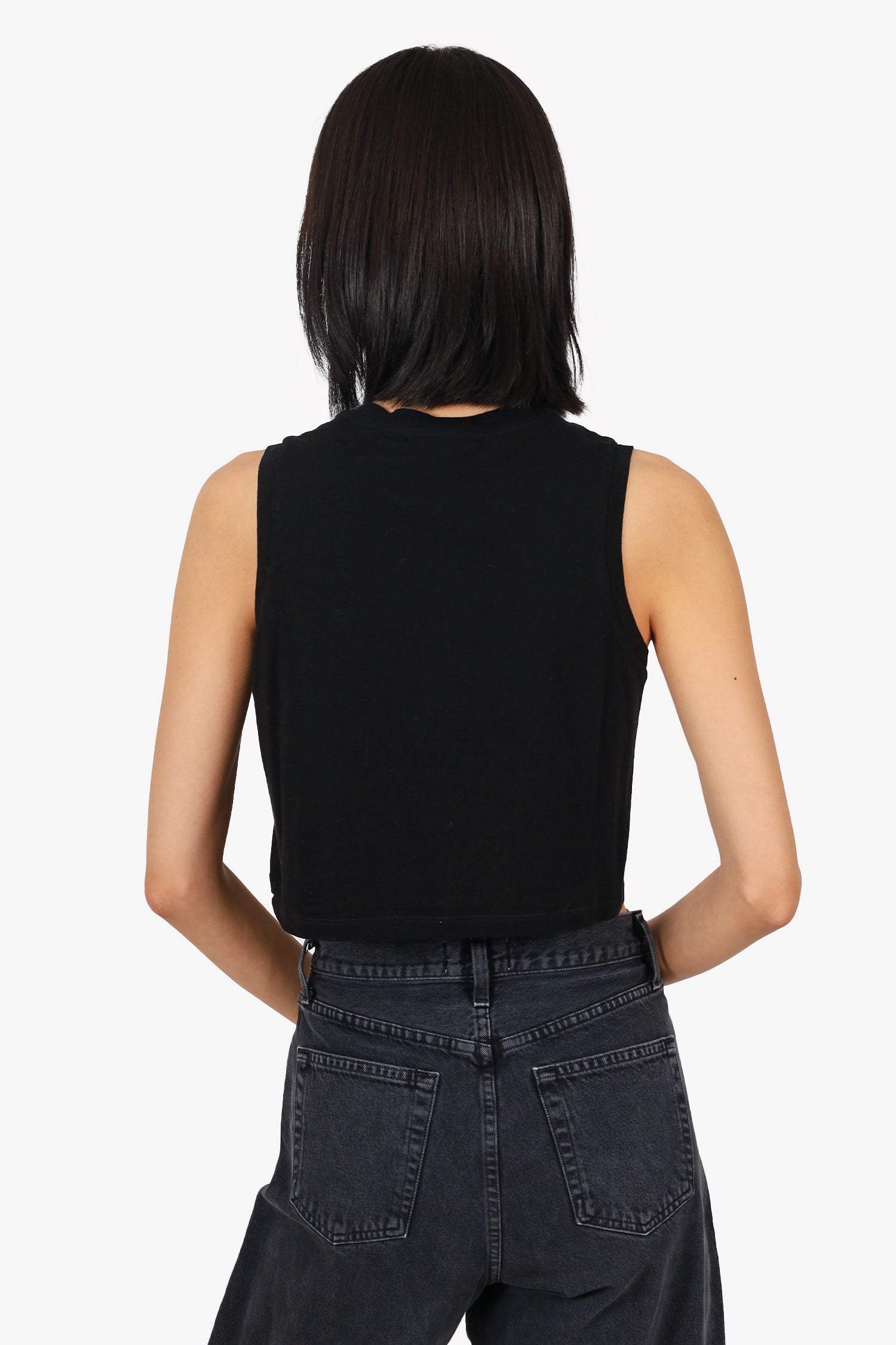 Refresh availabilityAlexander Wang Black/White Bonded Barcode Print Cropped Tank Top. Pull-on. Round neckline. Tonal stitching.