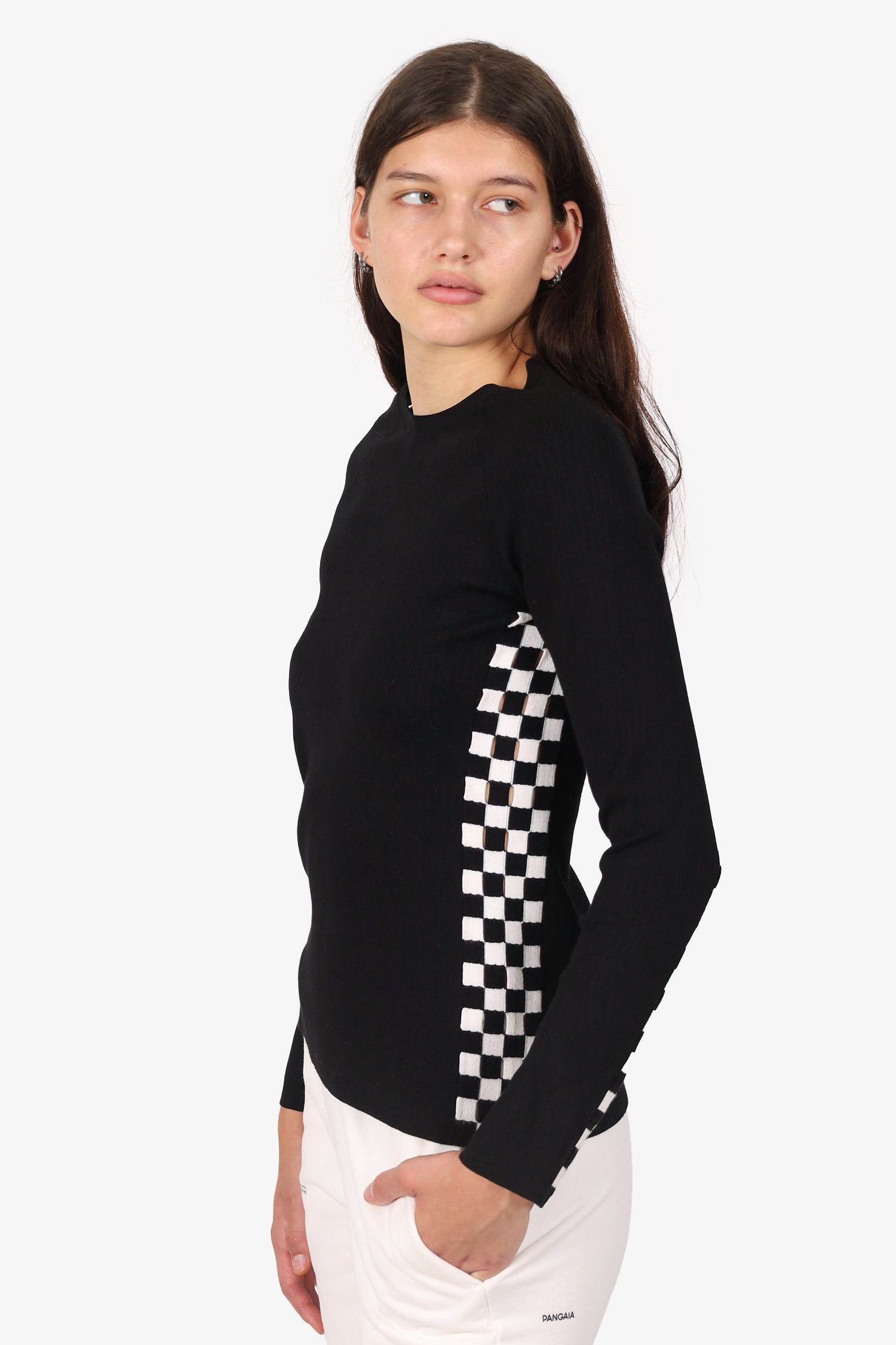 Refresh availabilityAlexander Wang Black/White Checkered Cut-out Sweater. Pull-on. Round neckline. Cut-outs along arms and sides. Tonal stitching.