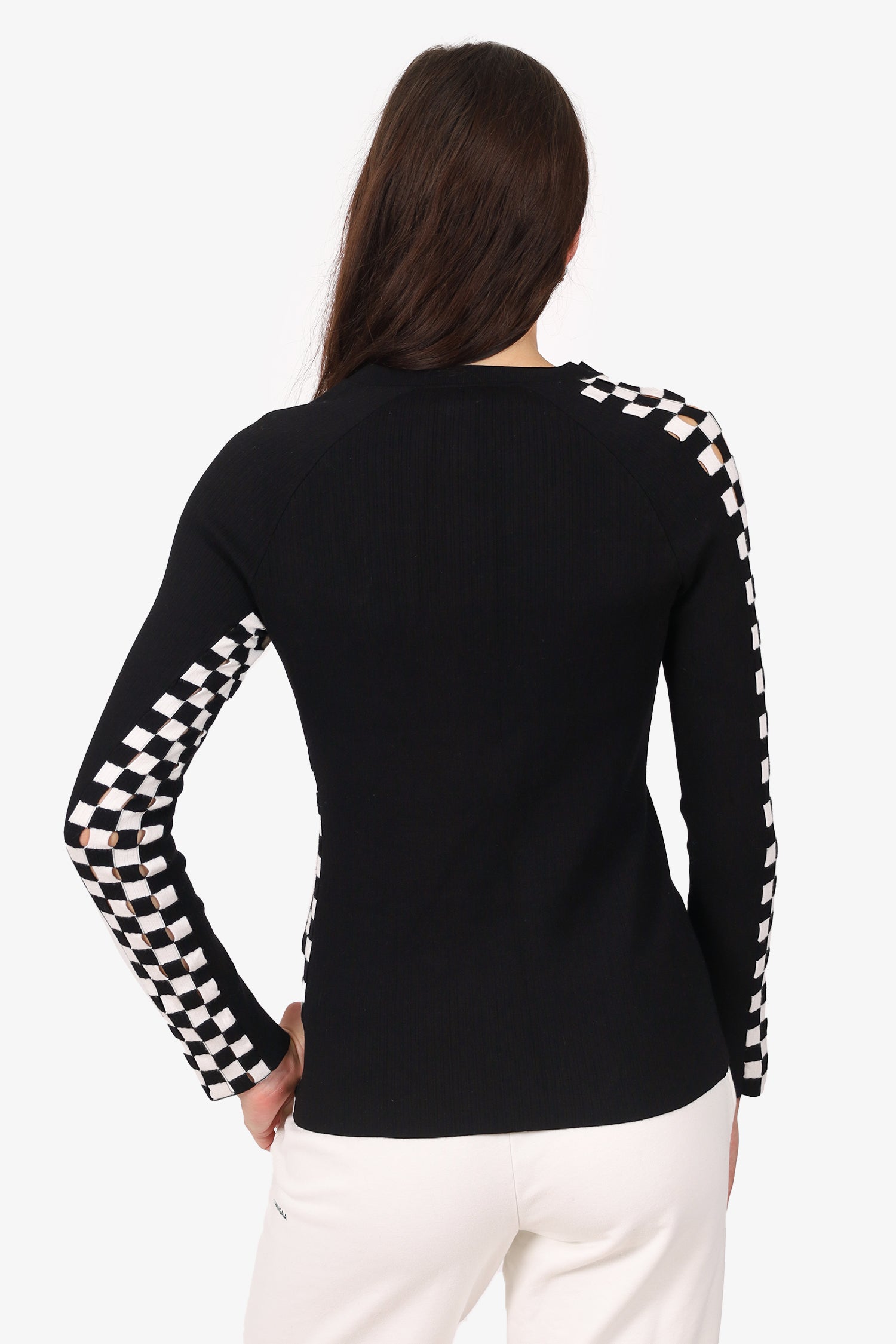 Alexander Wang Black/White Checkered Cut-out Sweater Size L