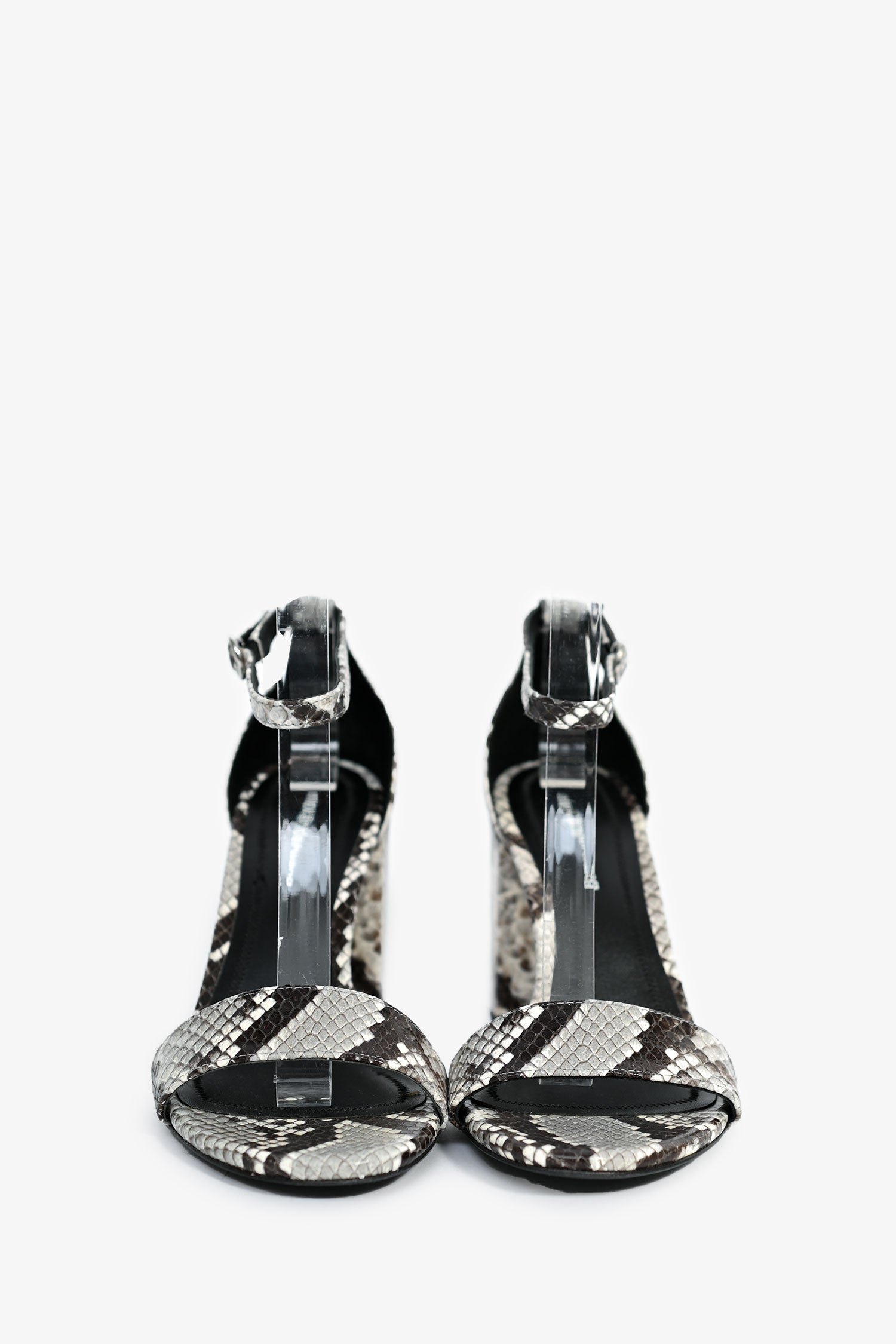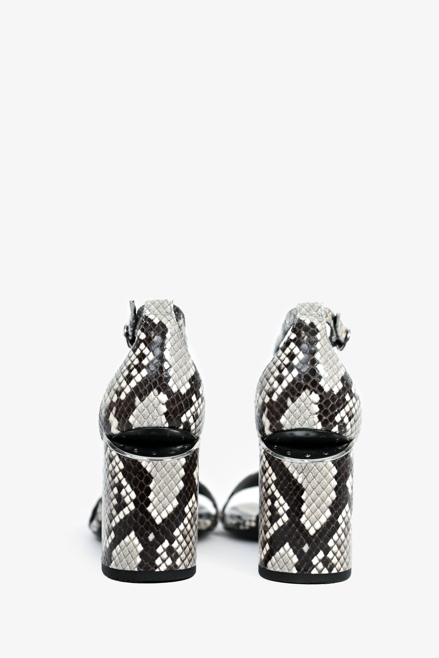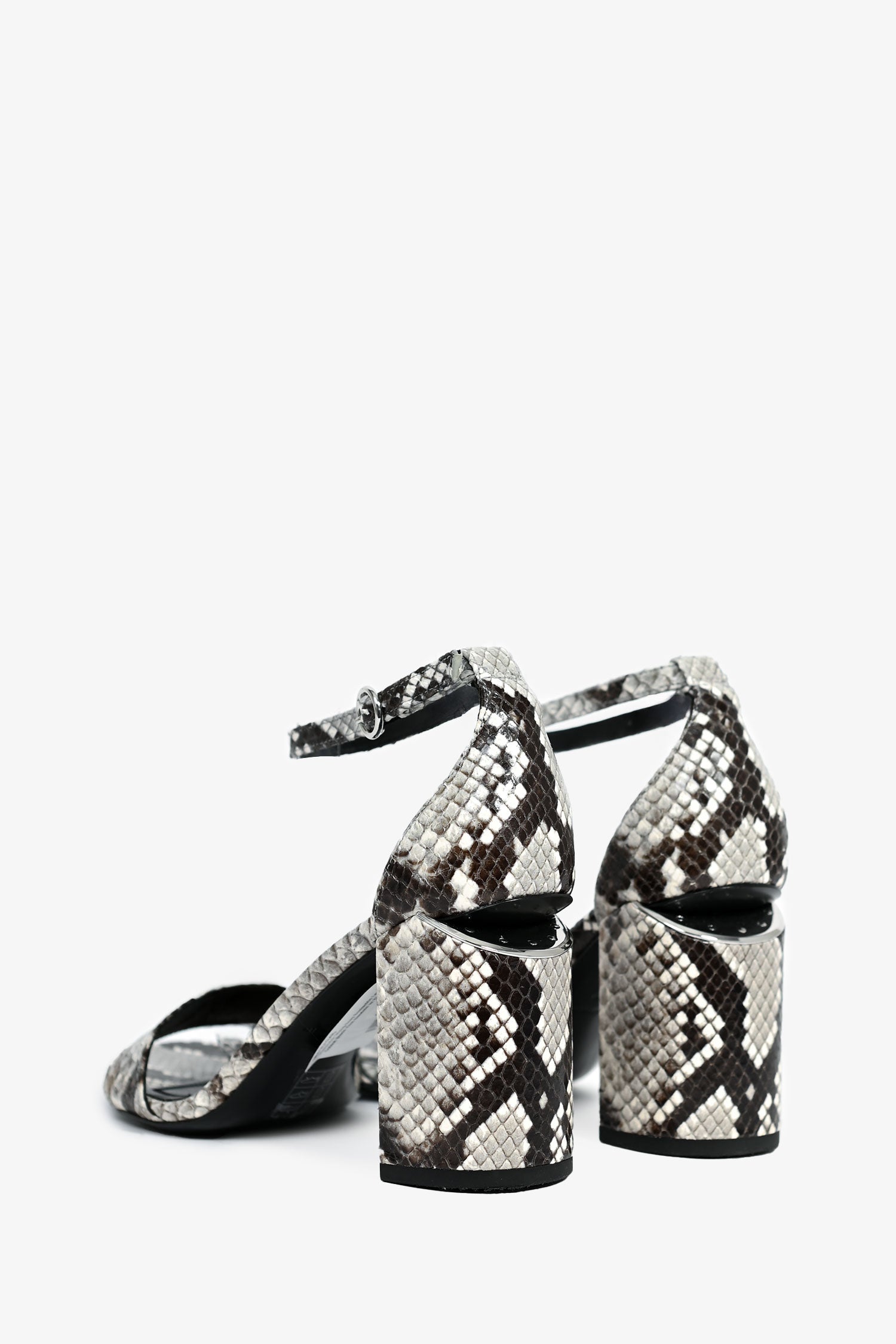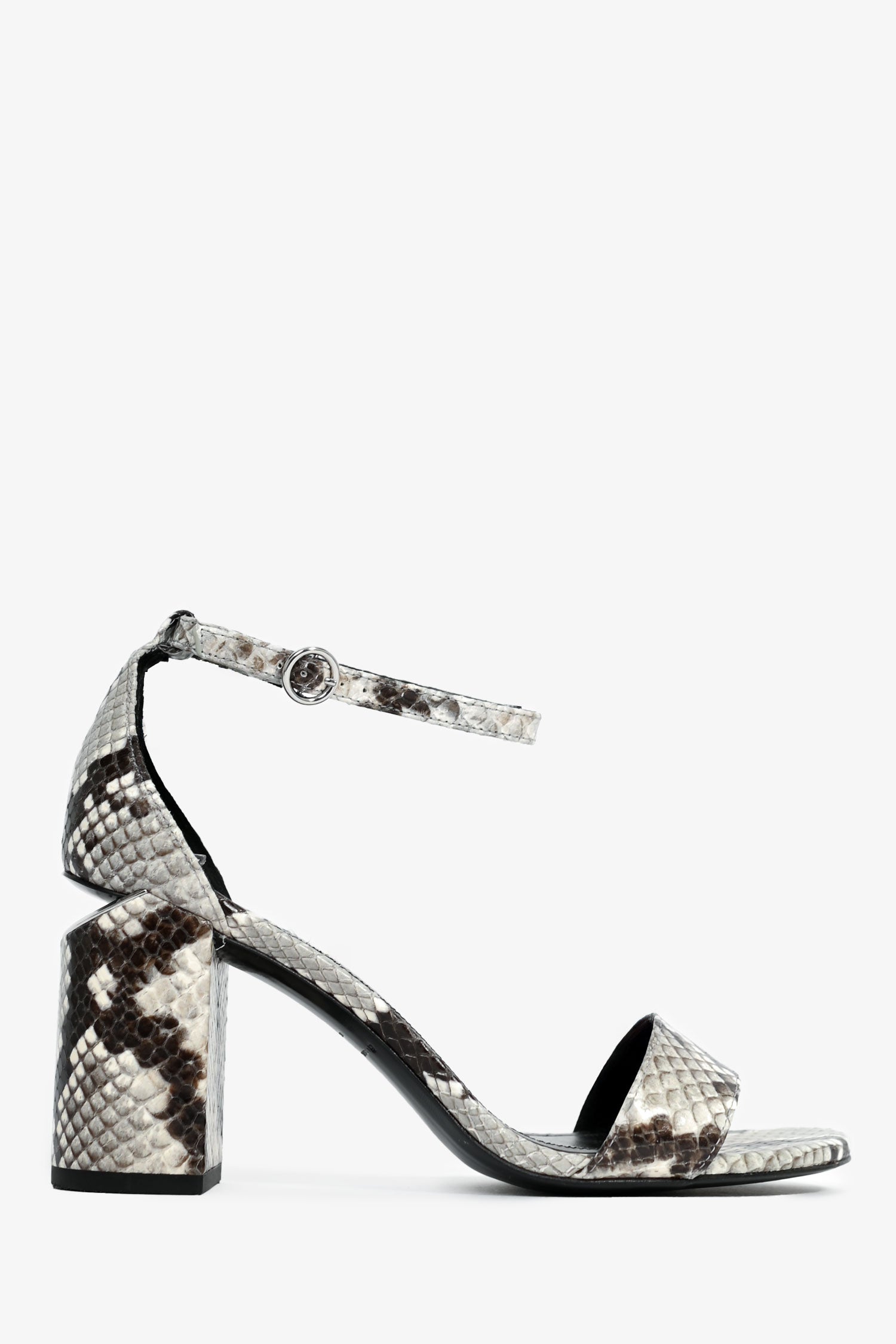 Refresh availabilityAlexander Wang Grey Snakeskin Leather Cutout Block Heel Sandals. Rounded toe. Leather insole. Tonal stitching.