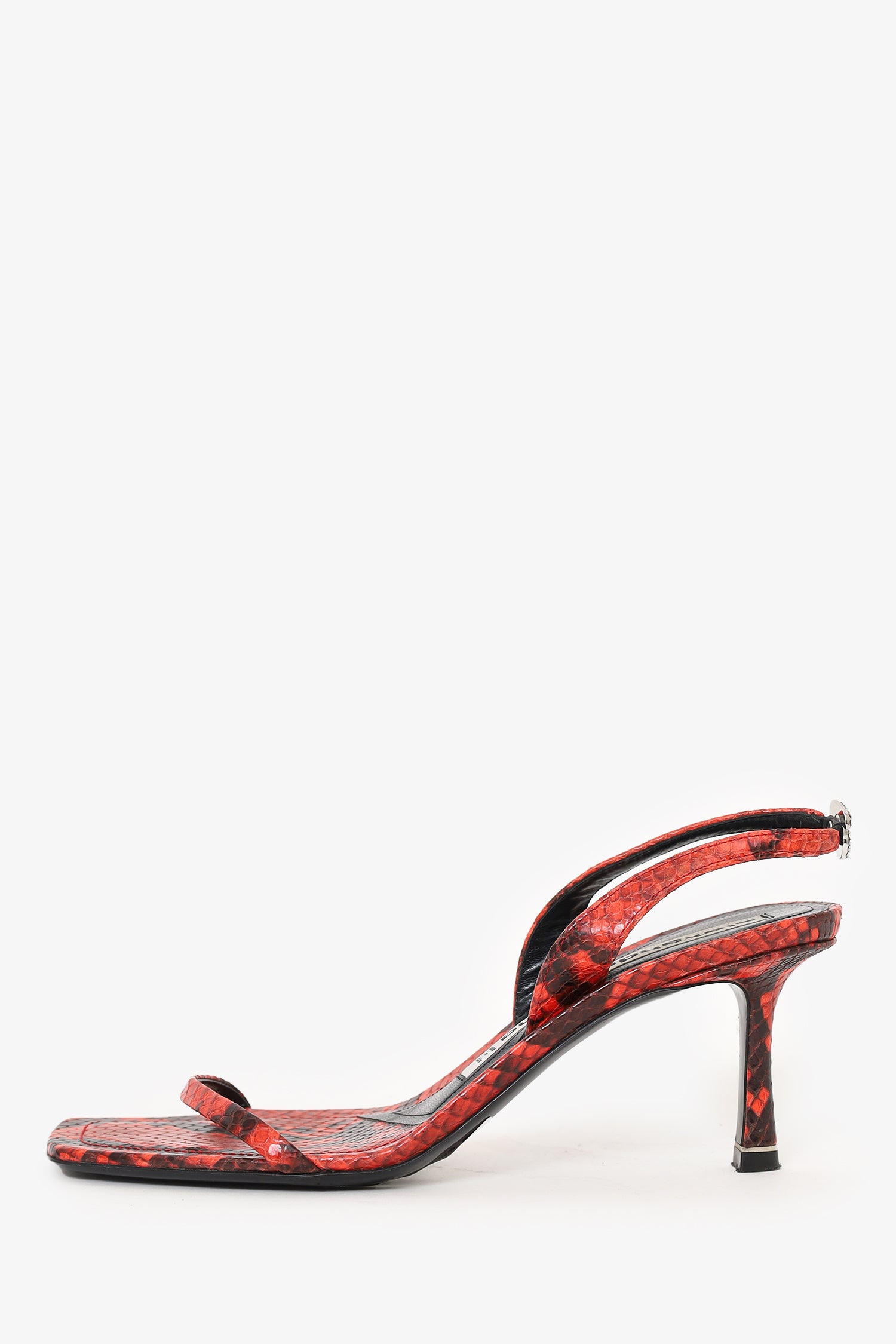 Alexander Wang Red/Black Snakeskin 'Wang' Embellished Strappy Heels Size 38