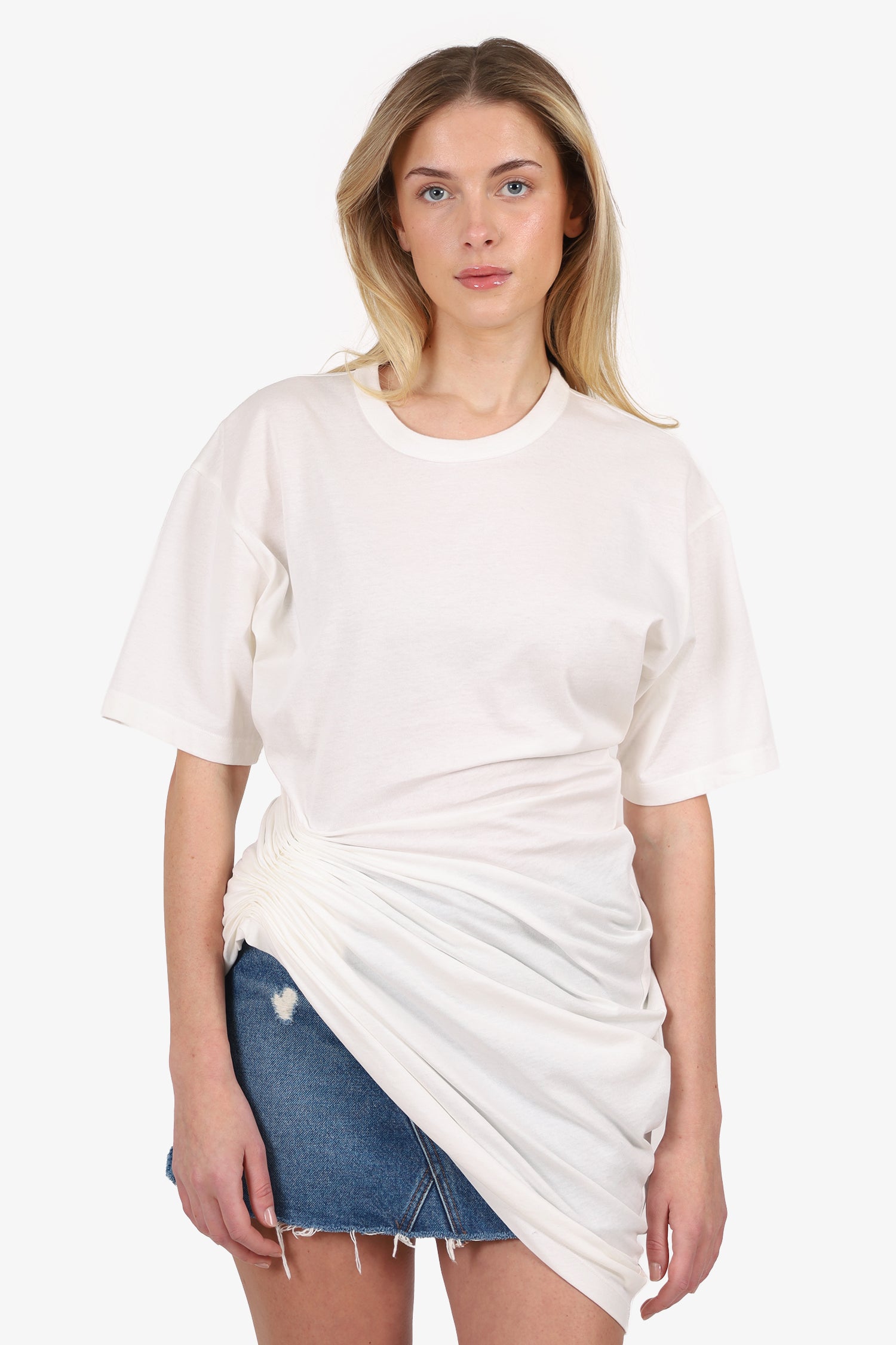 Refresh availabilityAlexander Wang White Ruched T-shirt Dress. Pull-on. Round neckline. Tonal stitching.