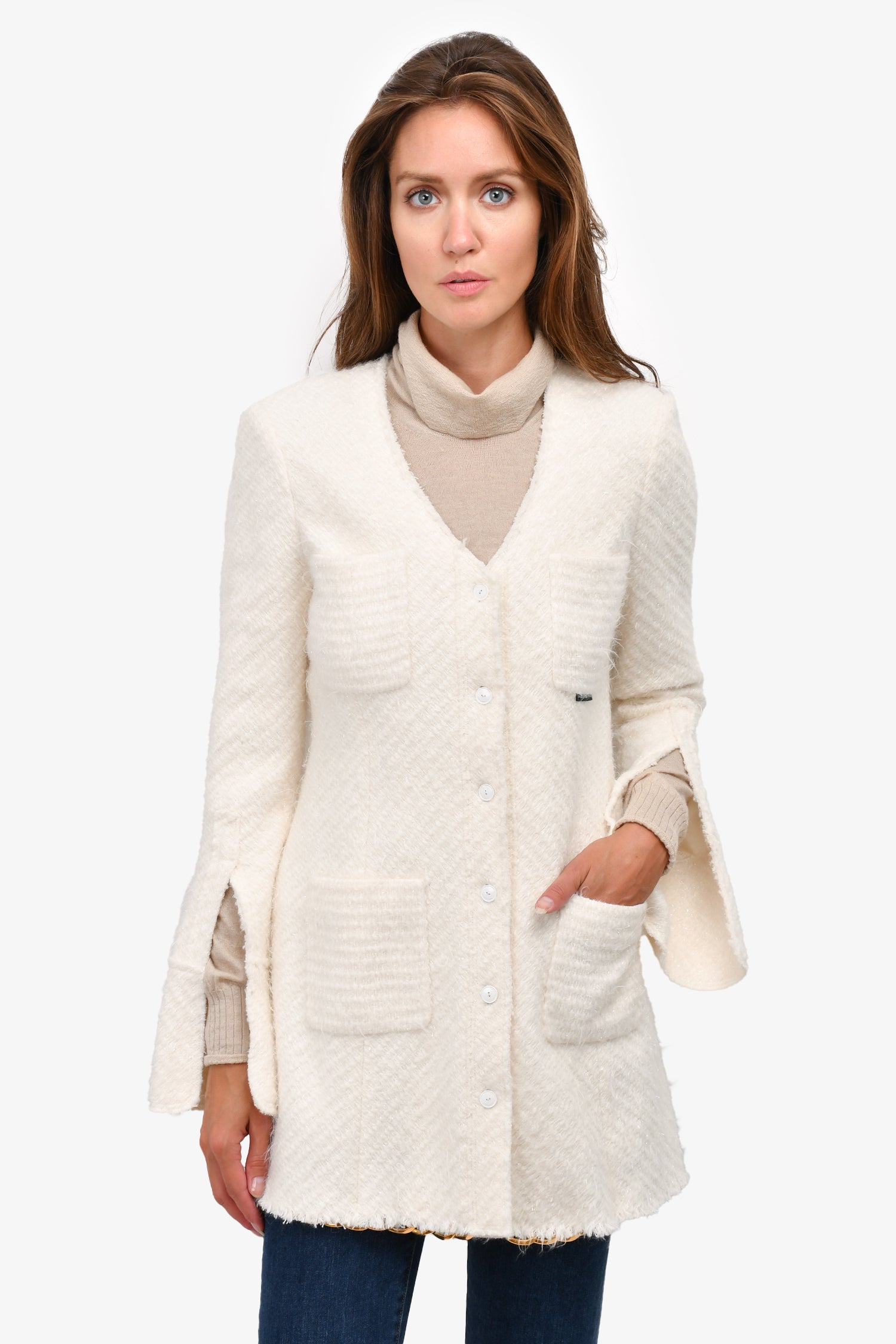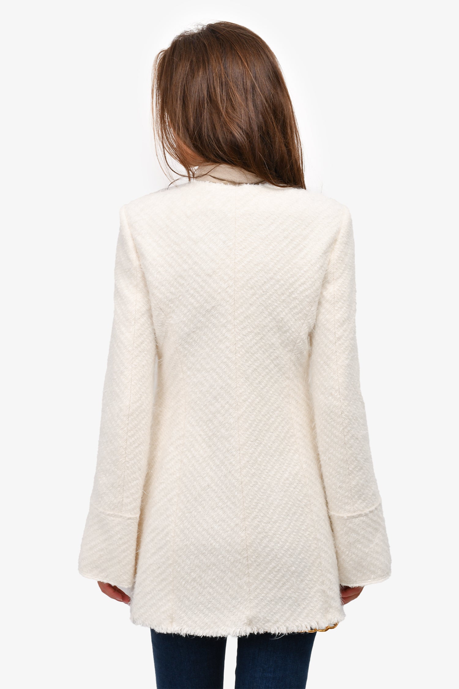 Alexander Wang White Tweed V-Neck Chain Detail Jacket Dress Size 4