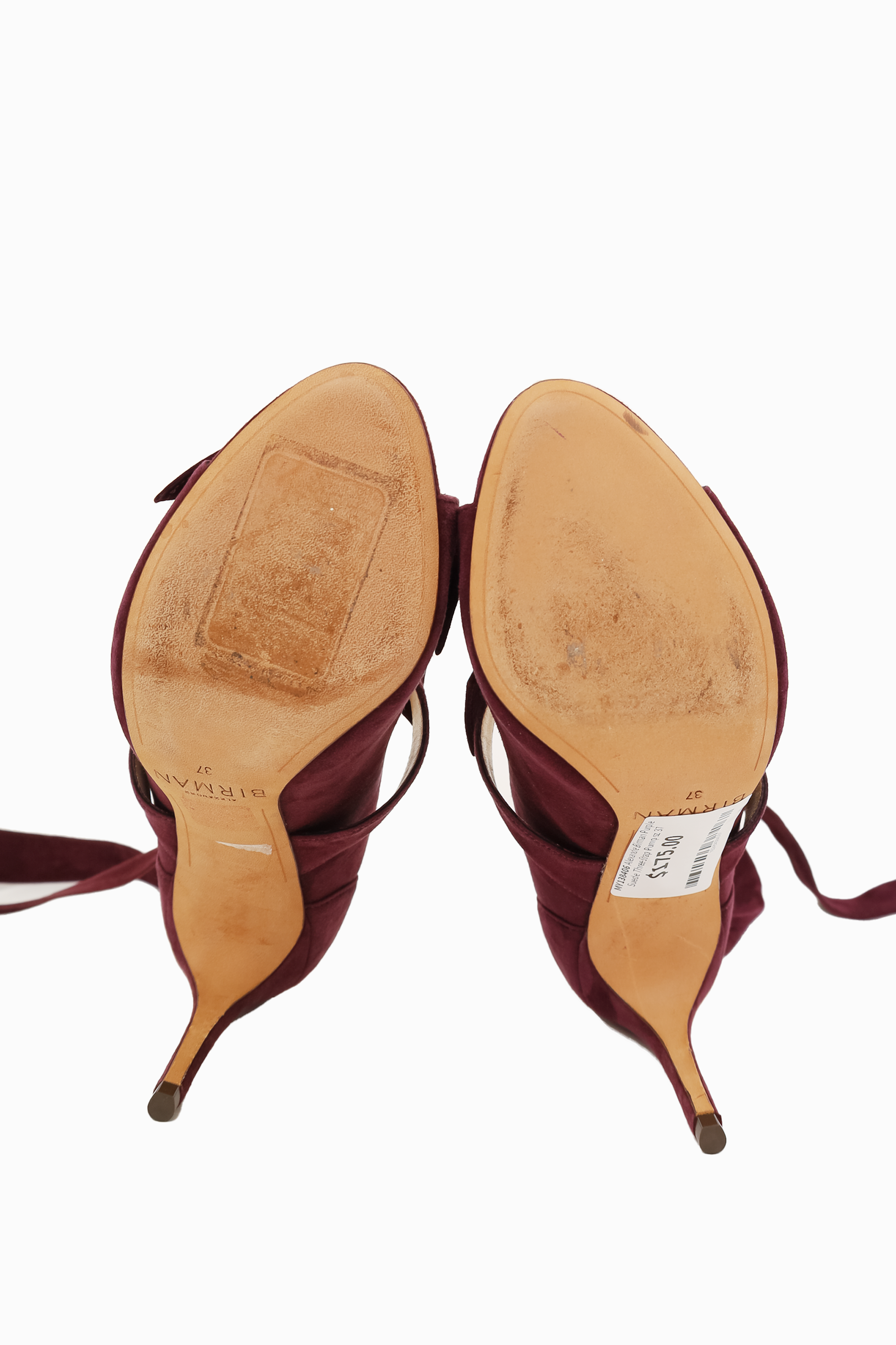Refresh availabilityAlexandre Birman Purple Suede Three-Strap Pump. Ankle tie-up closure. Pointed toe. Tonal stitching.