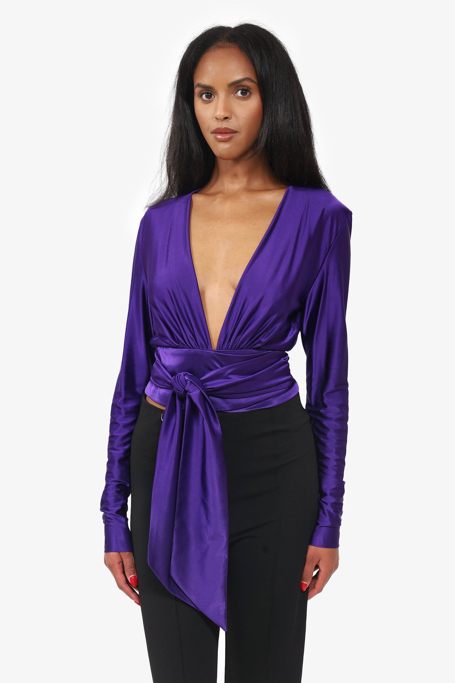 Refresh availabilityAlexandre Vauthier Purple Long-Sleeve Wrap Top. Front wrap closure. Unlined. Tonal stitching.