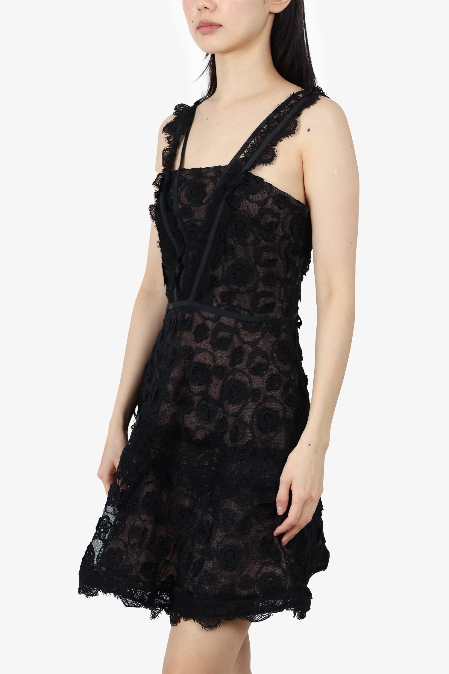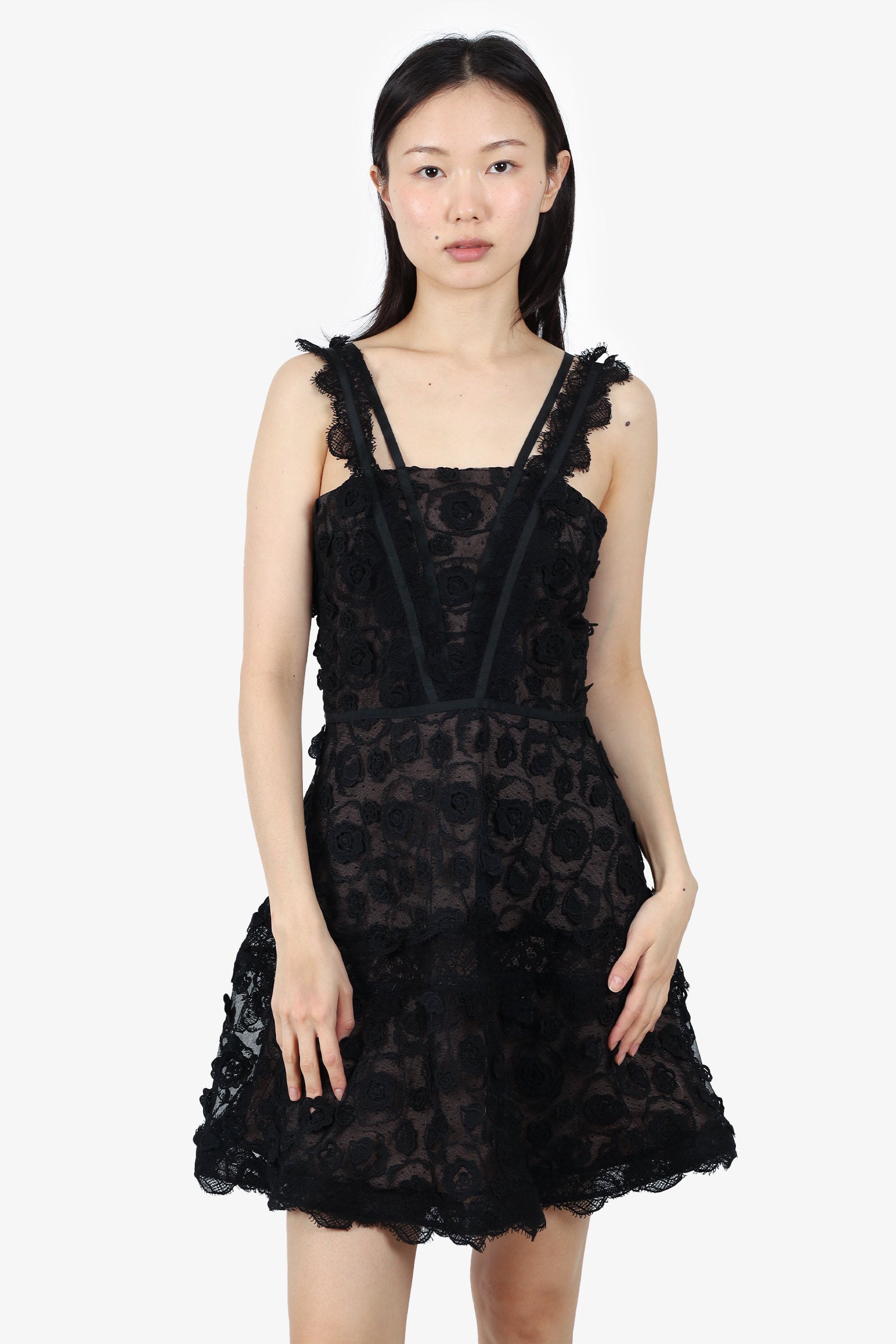 Alexis Black Lace Appliqué Sleeveless 'Mindy' Mini Dress Size S