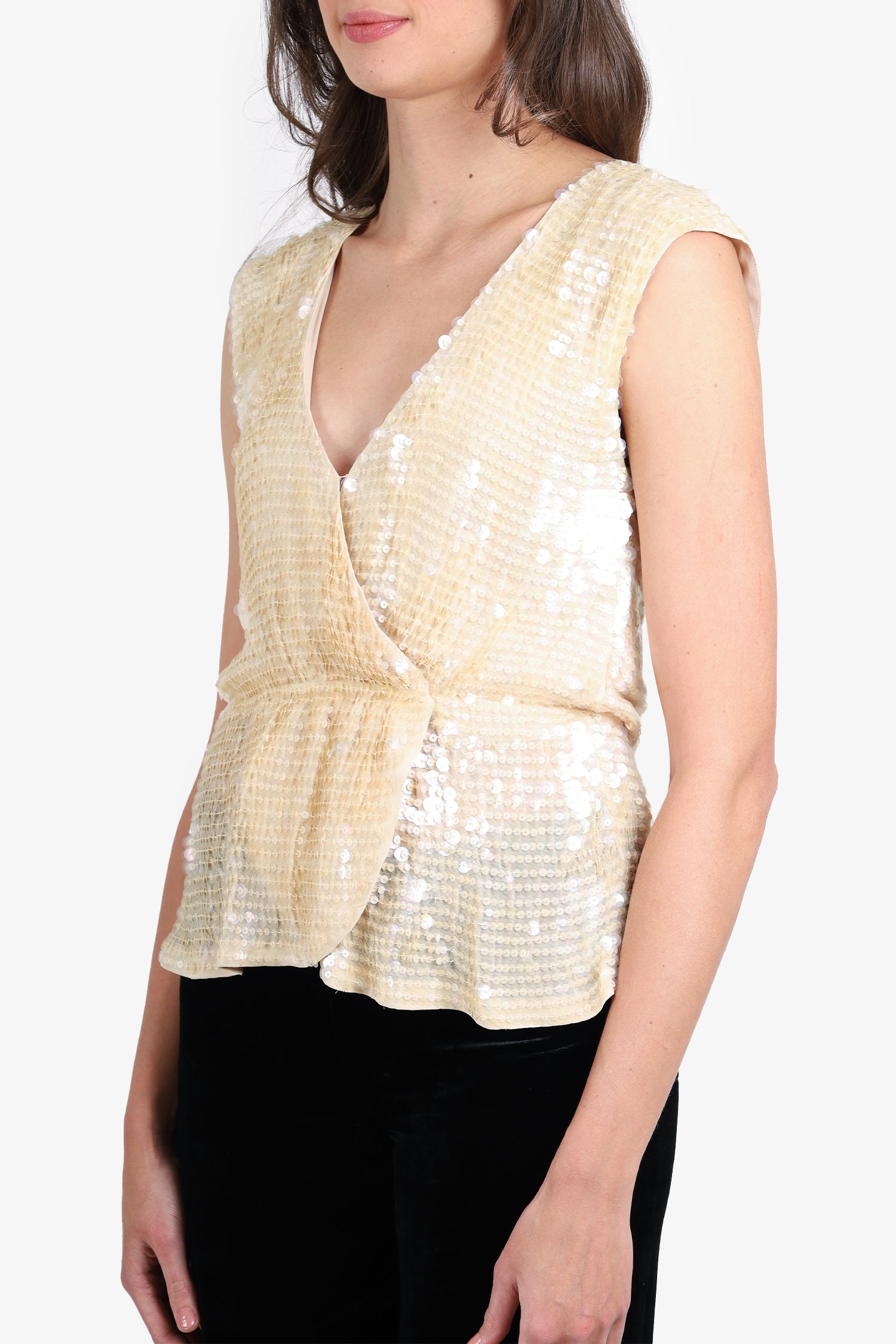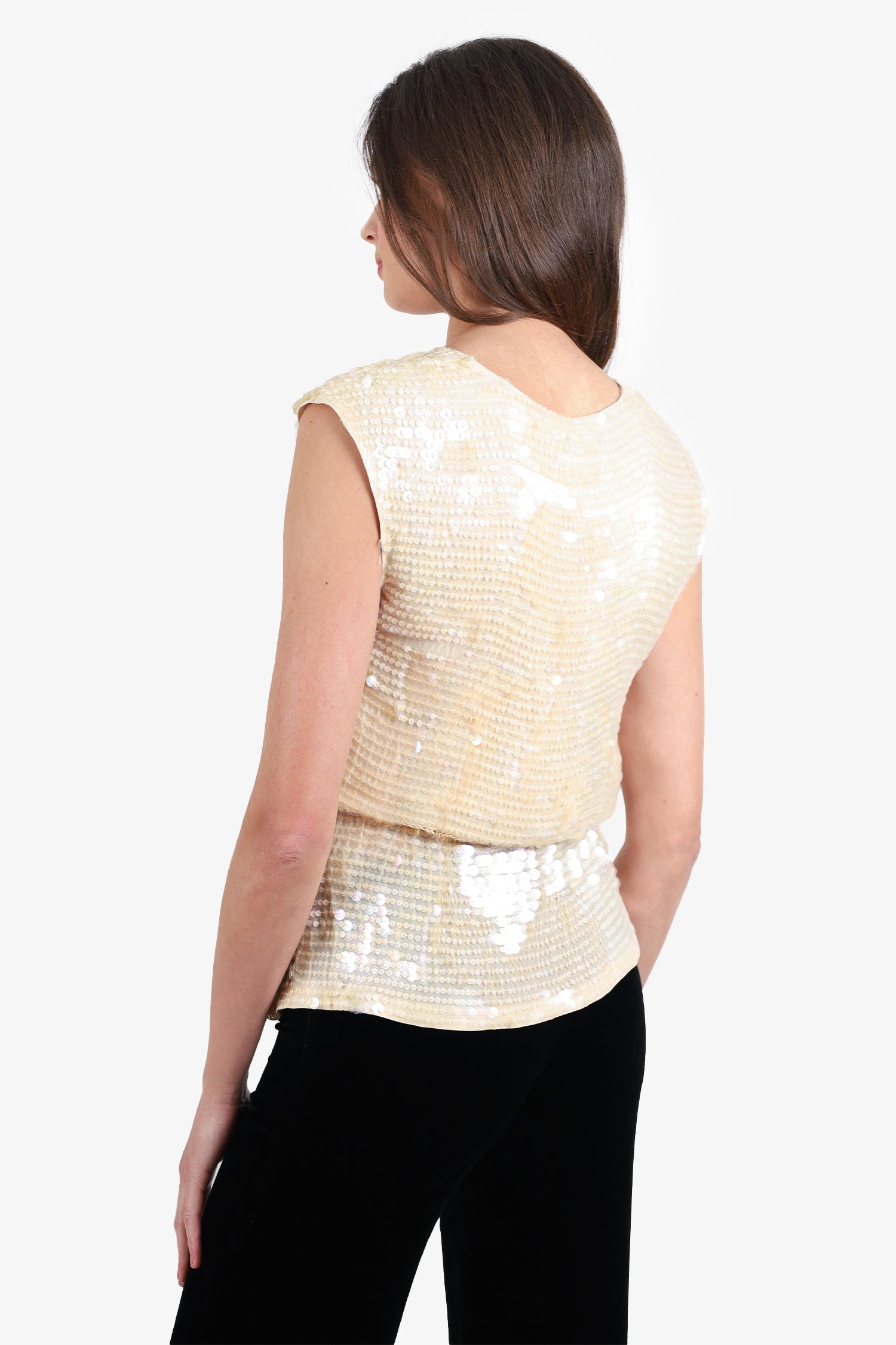 Alice + Olivia Beige Sequin V-Neck Sleeveless Top Size S