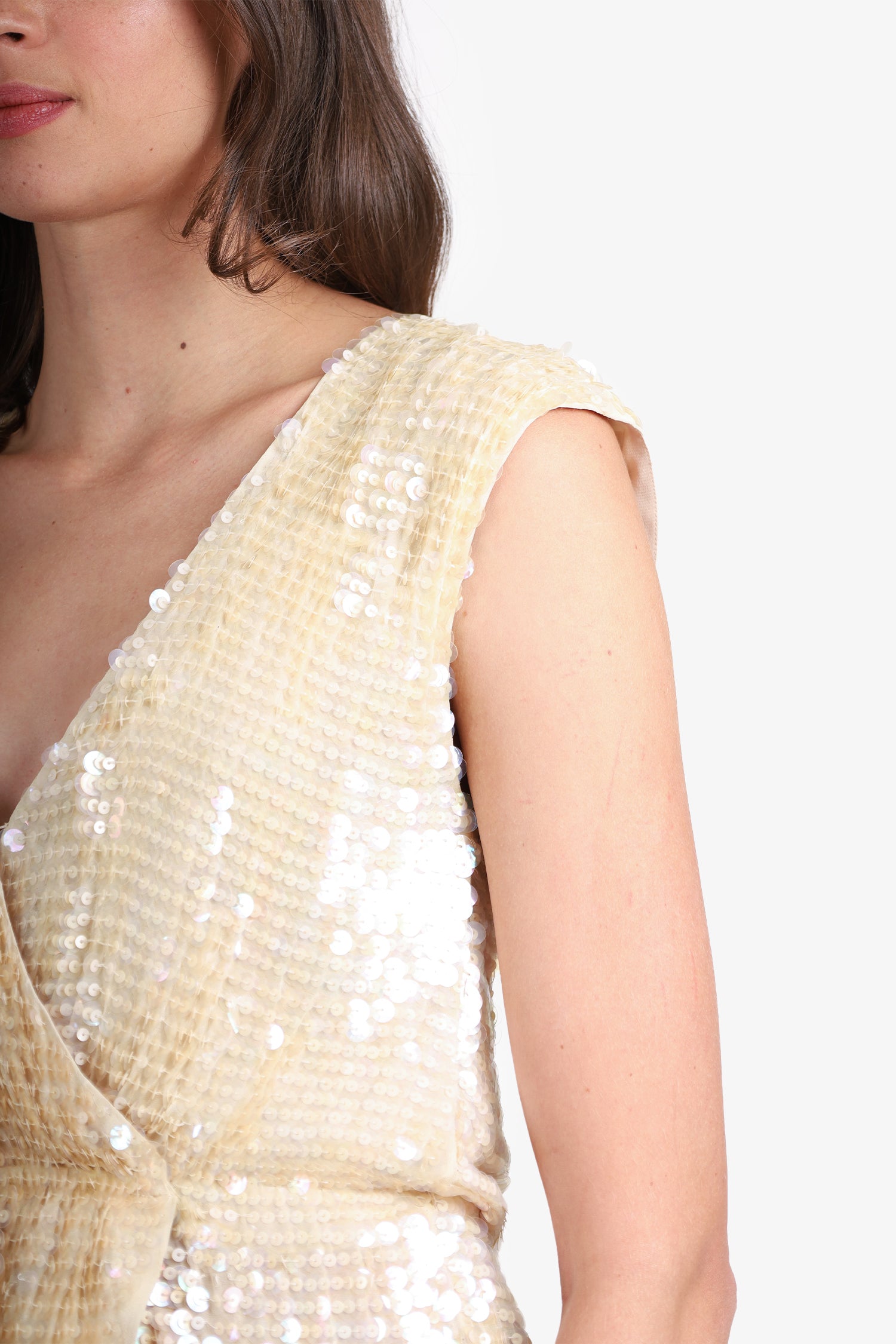 Refresh availabilityAlice + Olivia Beige Sequin V-Neck Sleeveless Top. V-neck. Lined. Tonal stitching.
