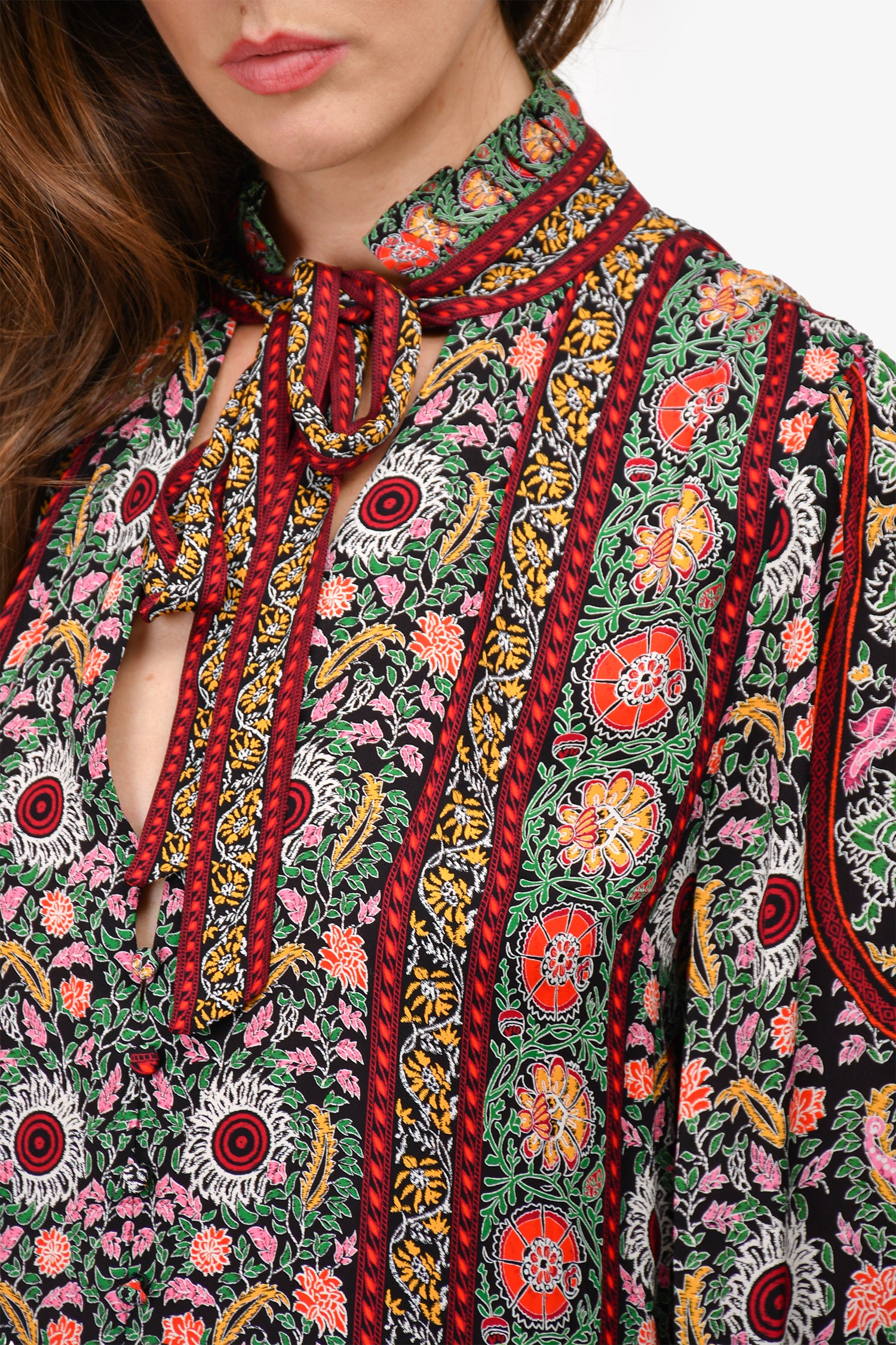 Alice + Olivia Black Multicoloured Blouse With Neck Tie Size M