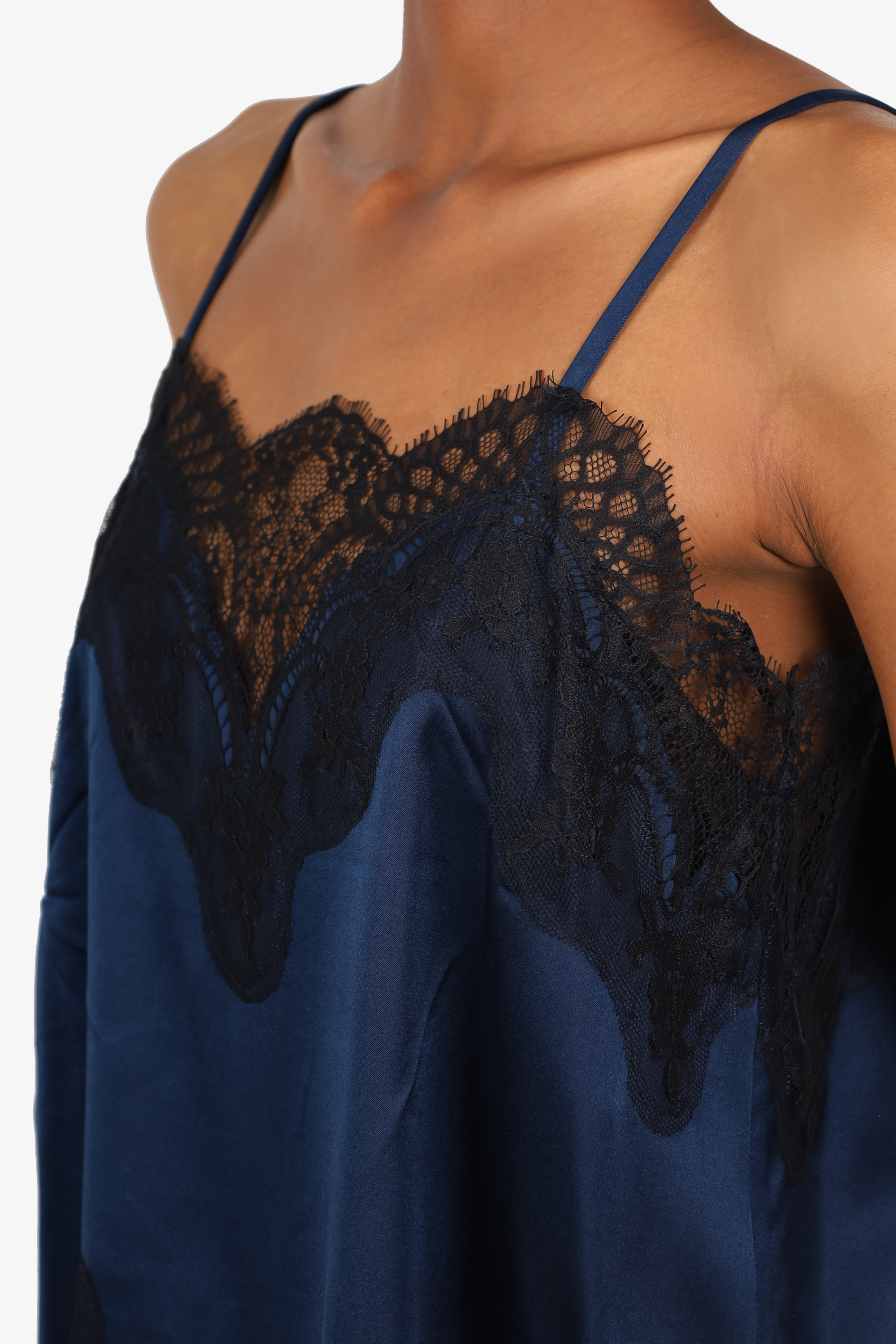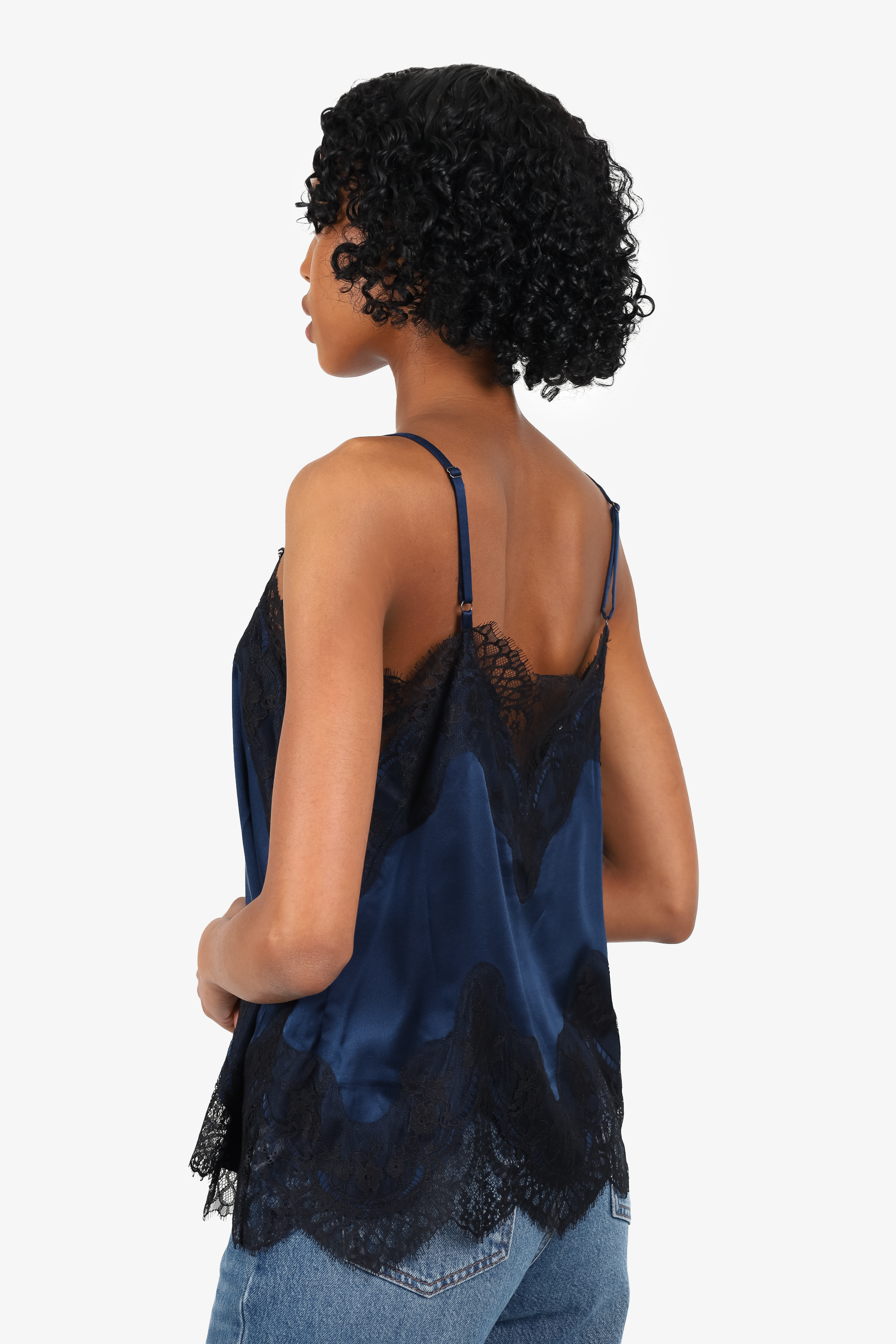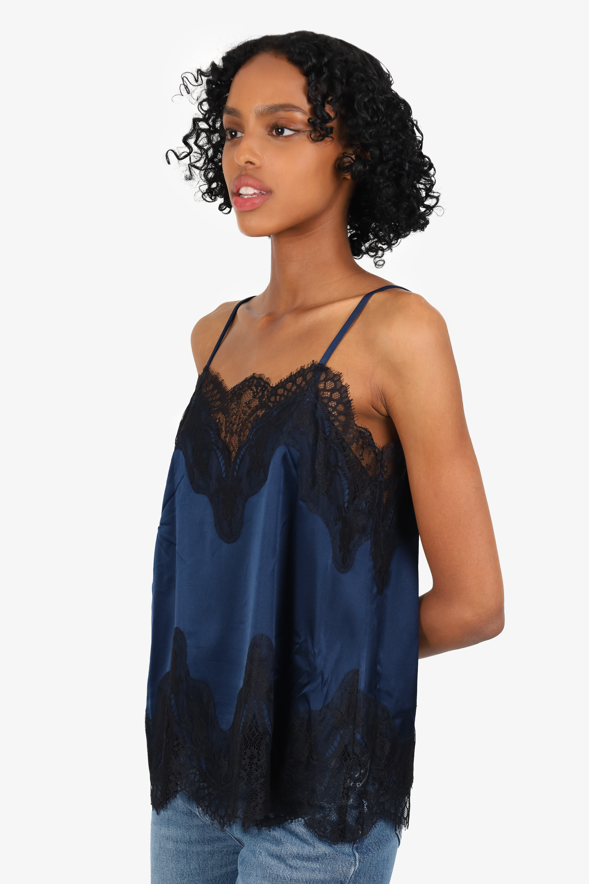 Refresh availabilityAlice & Olivia Black/Navy Silk Lace Cropped Top. Adjustable straps. Tonal stitching.
