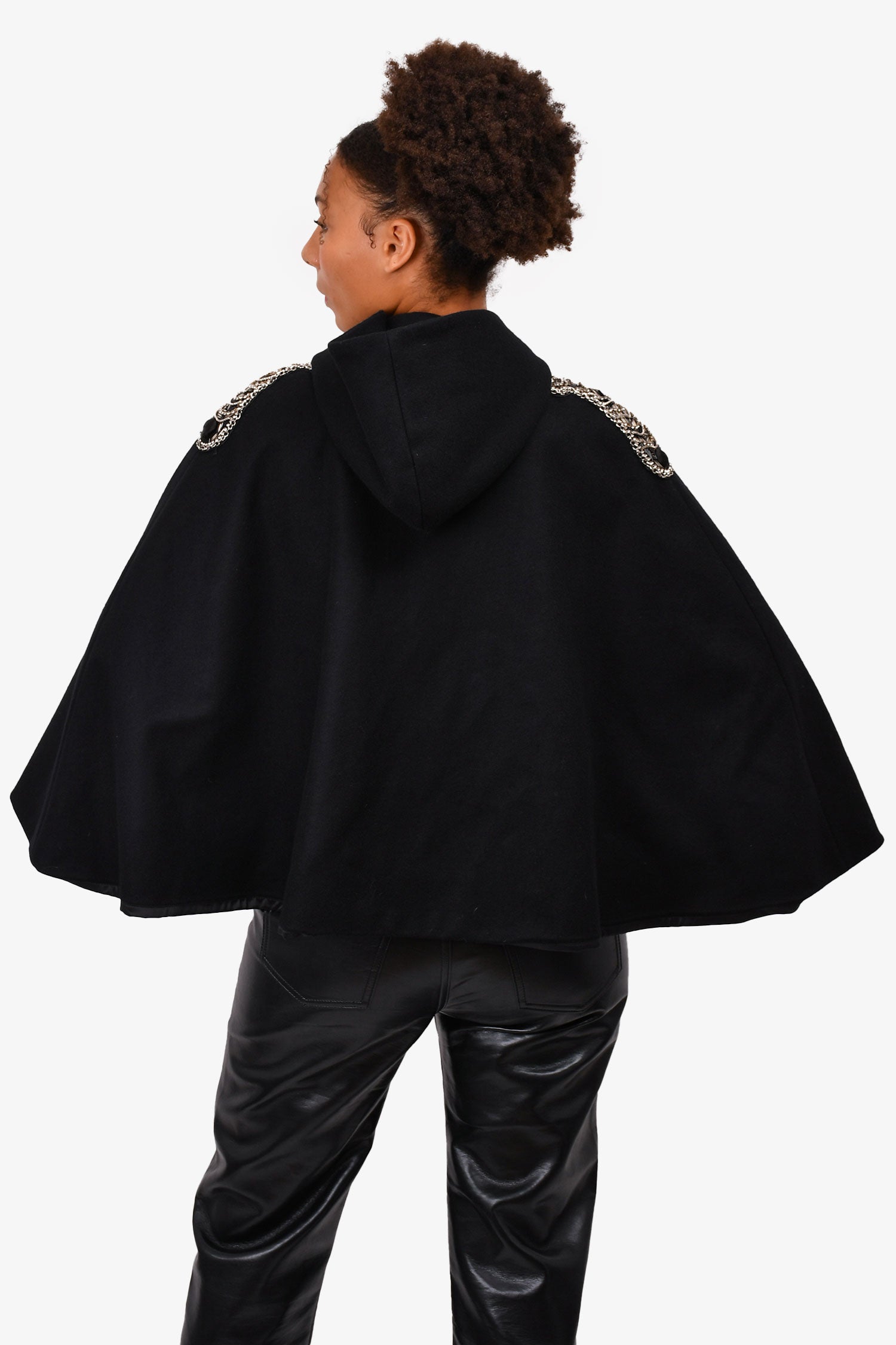 Refresh availabilityAlice + Olivia Black Wool Crystal Embroidered Double Zip Cape Jacket. Front pockets. Lined.