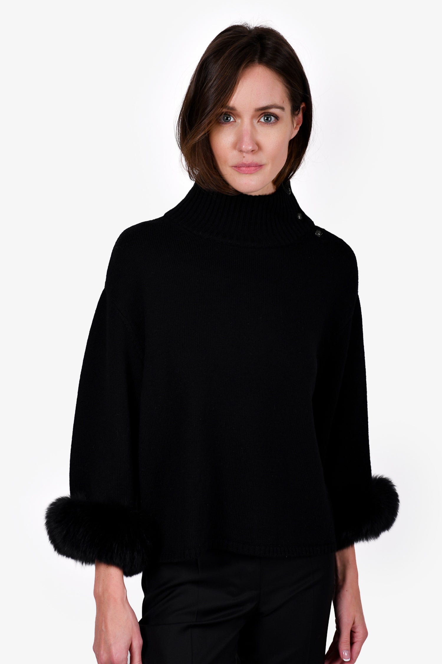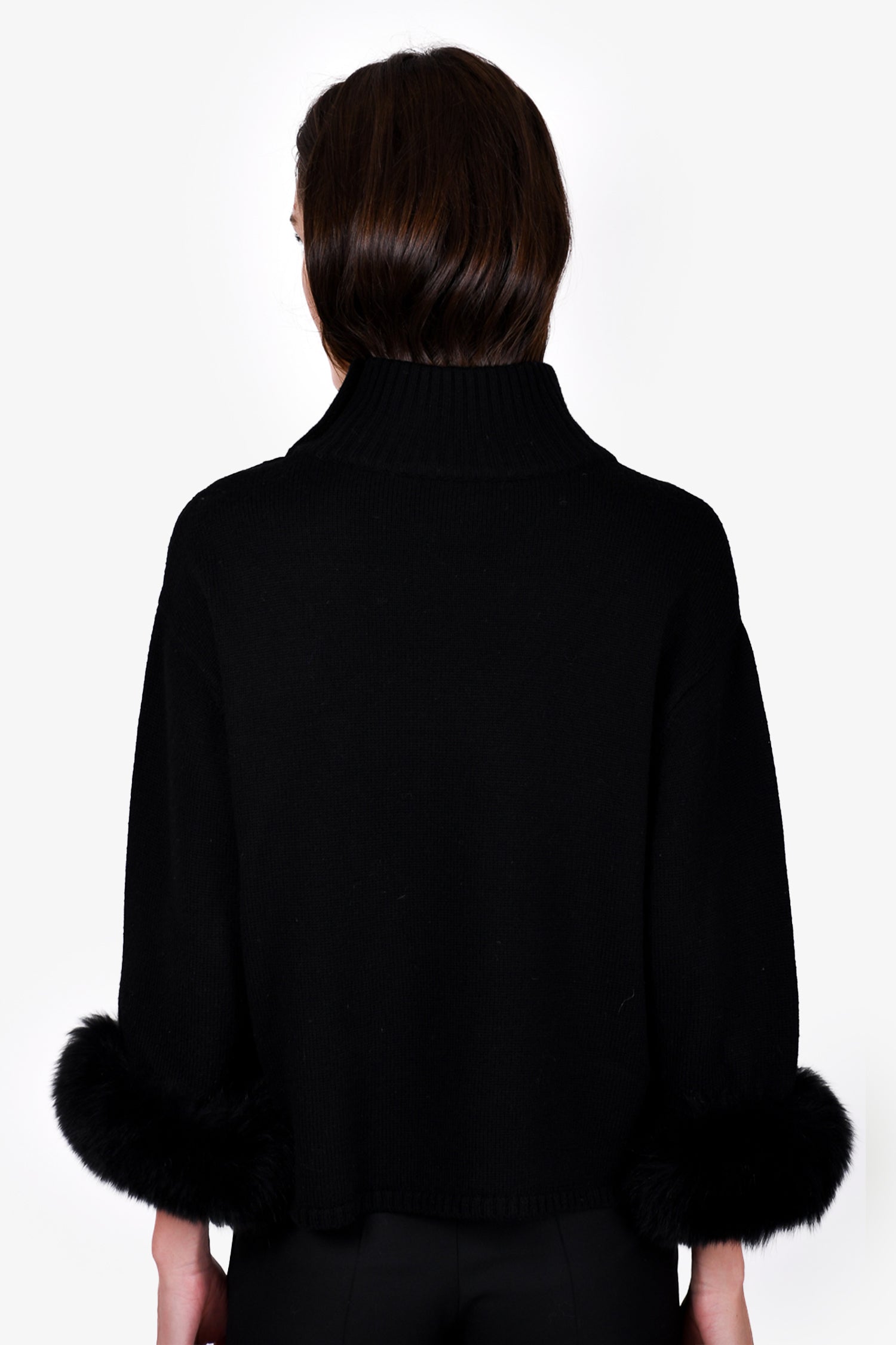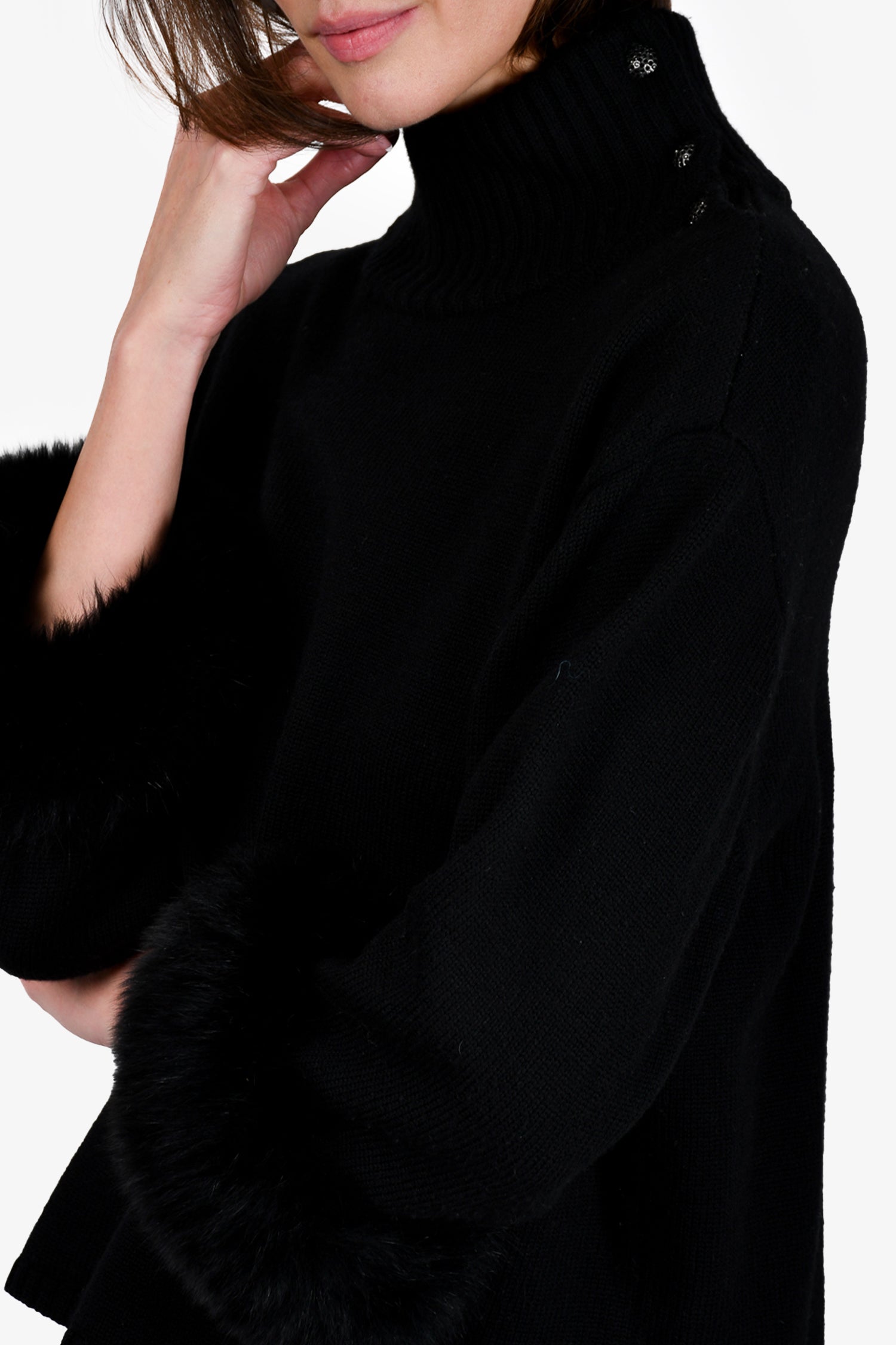 Refresh availabilityAlice + Olivia Black Wool Fur Cuff Turtle Neck Sweater. Pull-on. Detachable fur cuffs. Tonal stitching.