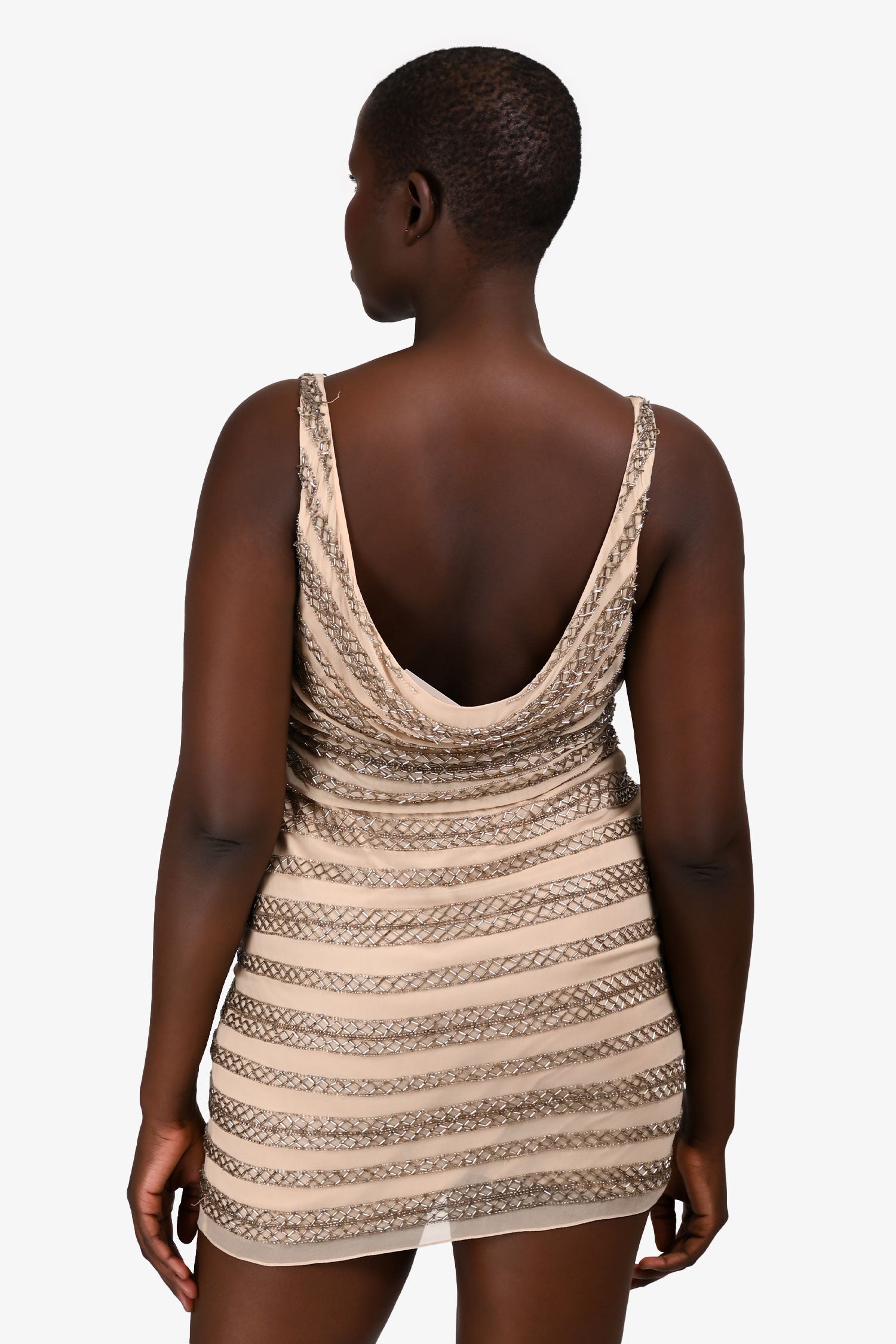 Alice + Olivia Cream Silk Silver Bead Embellished Mini Dress Size 10