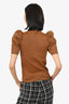 Alice + Olivia Gold Glitter Puff Short Sleeve Knitted Top Size M