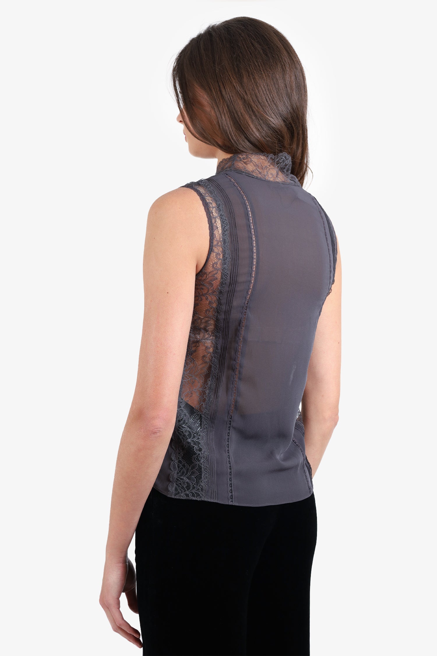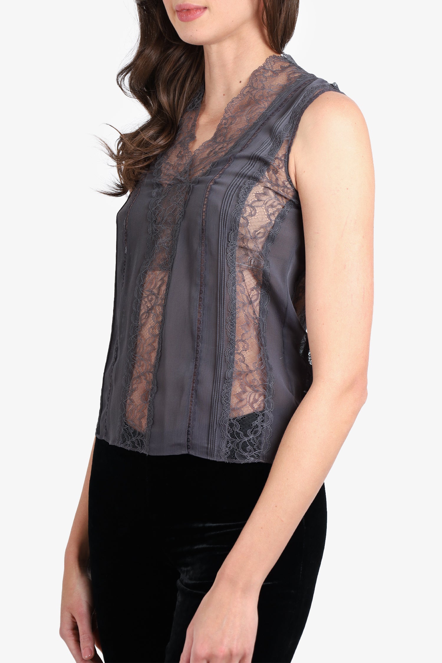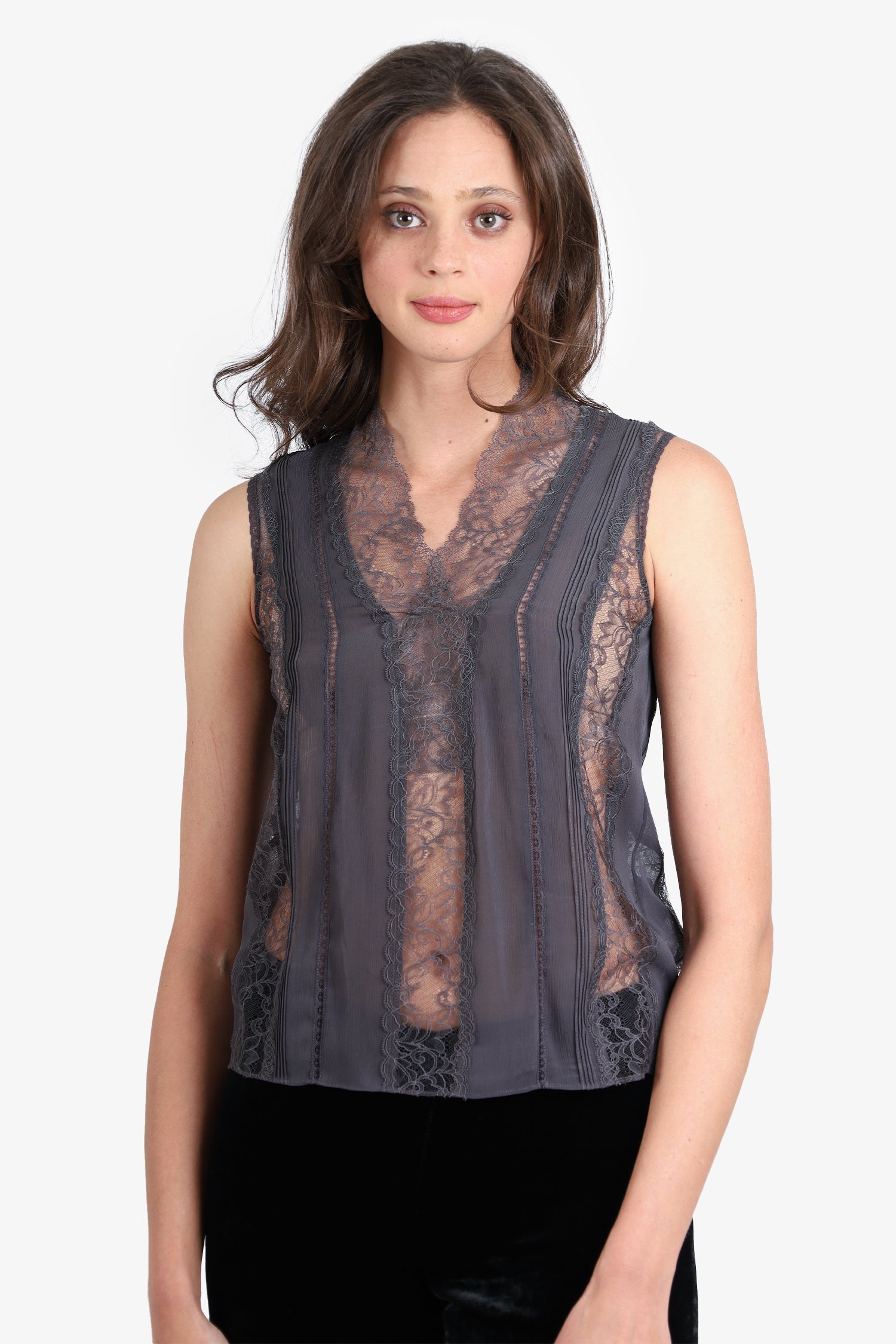 Refresh availabilityAlice + Olivia Grey Lace Sleeveless Top. V-Neckline. Unlined. Tonal stitching.