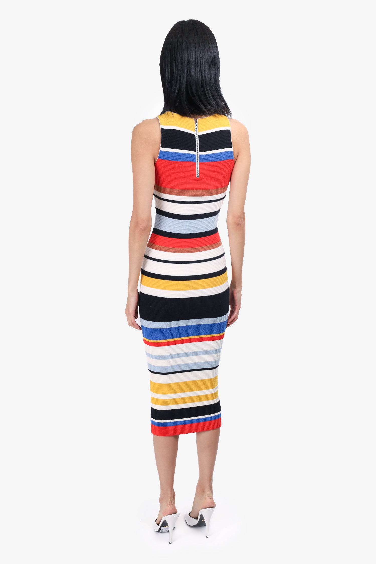 Refresh availabilityAlice + Olivia Multicolour Striped Dress. Round neckline. Rear zip and hook closure. Ribbed exterior. Unlined. Tonal stitching.