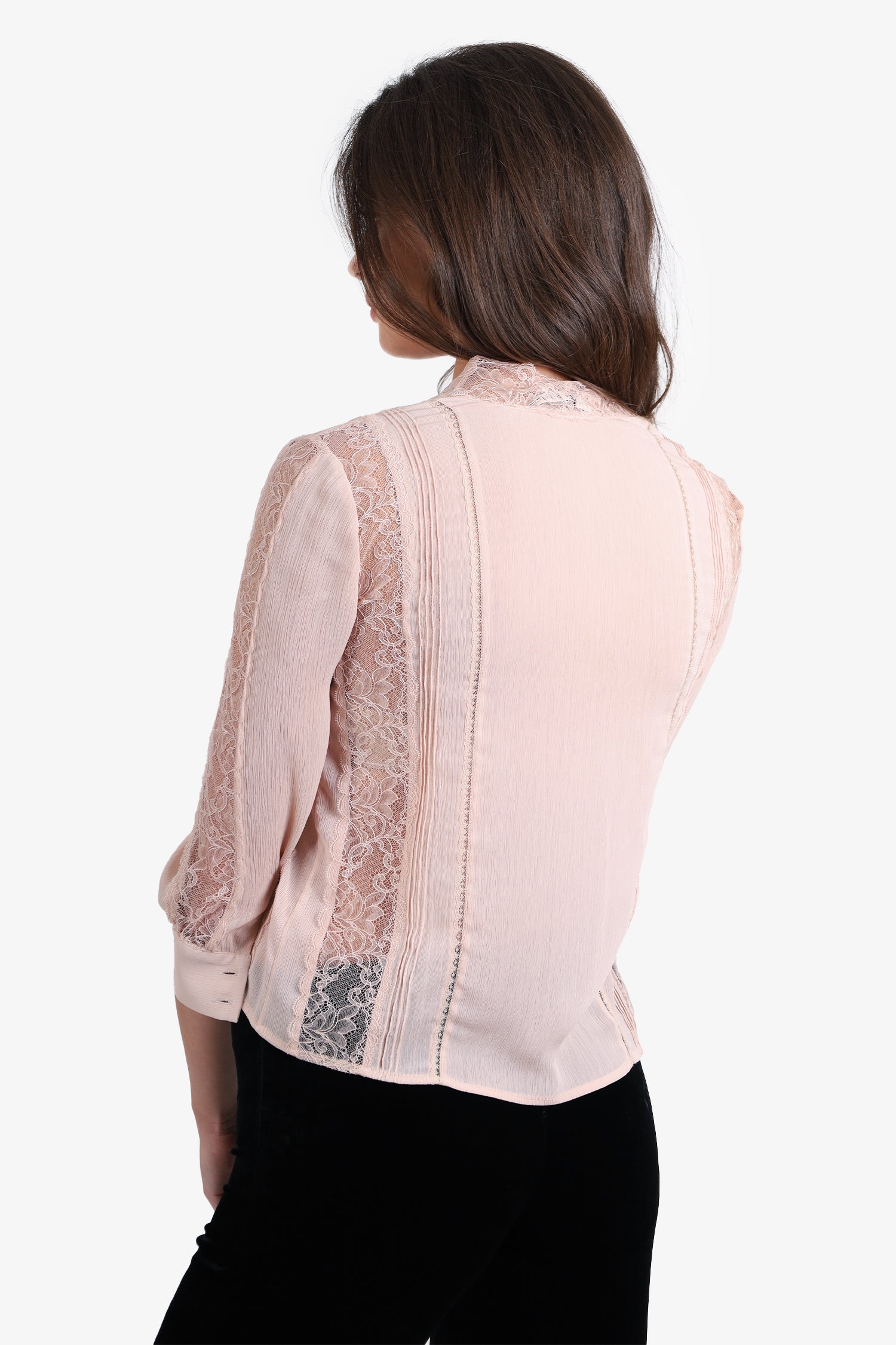 Refresh availabilityAlice + Olivia Pink Lace L/S Top. V-neckline. Button-up detailing on cuffs. Laced detailing throughout. Tonal stitching.