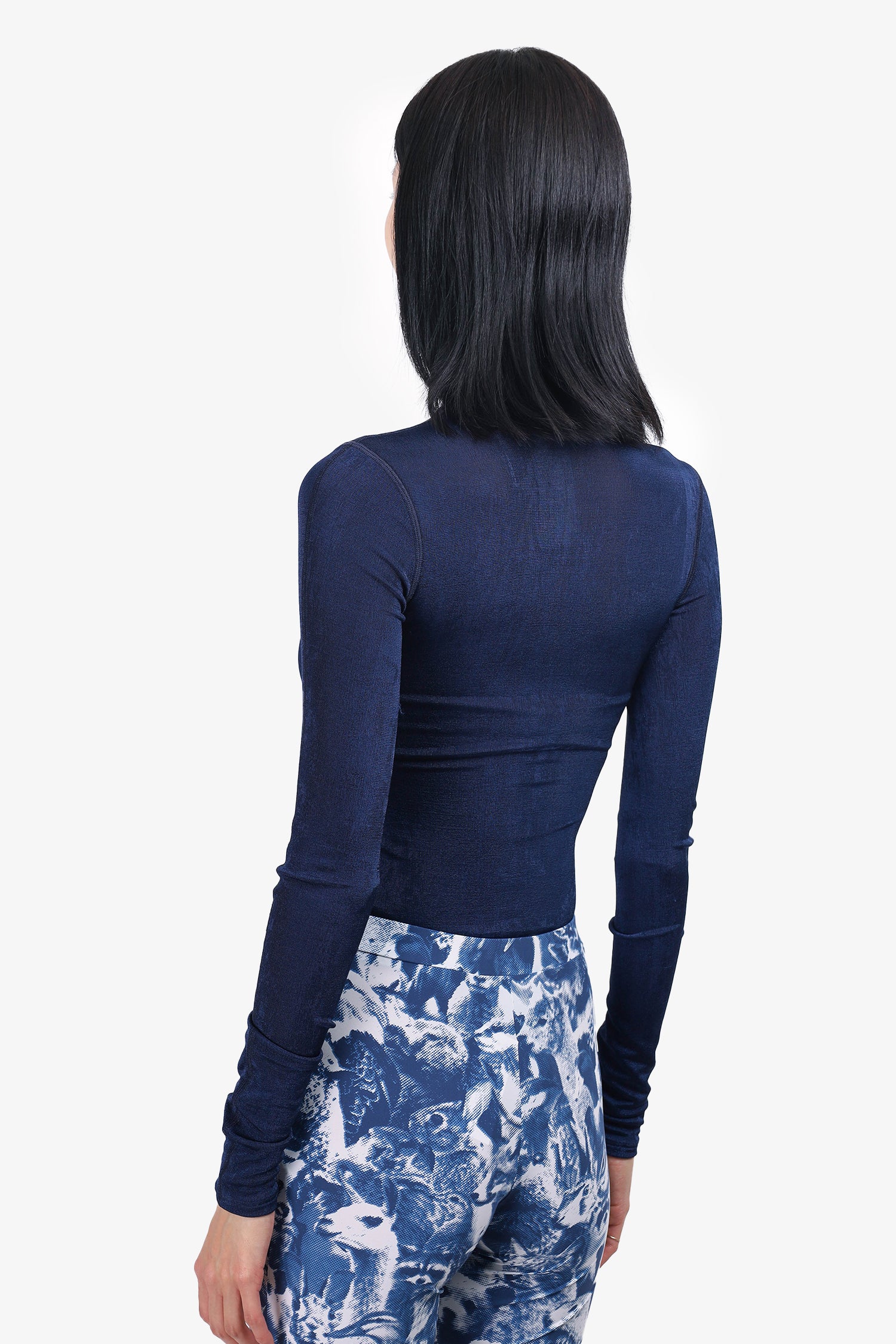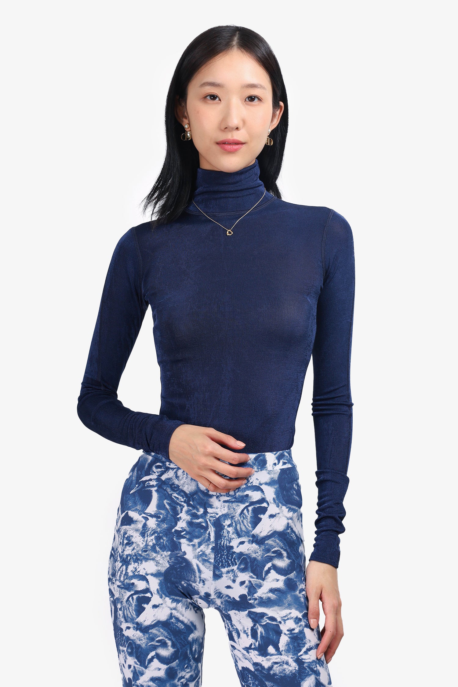 Refresh availabilityAlix NYC Navy Turtleneck Bodysuit. Mock neckline. Pull-on. Double snap button closure in pelvic area. Unlined. Contrast stitching.