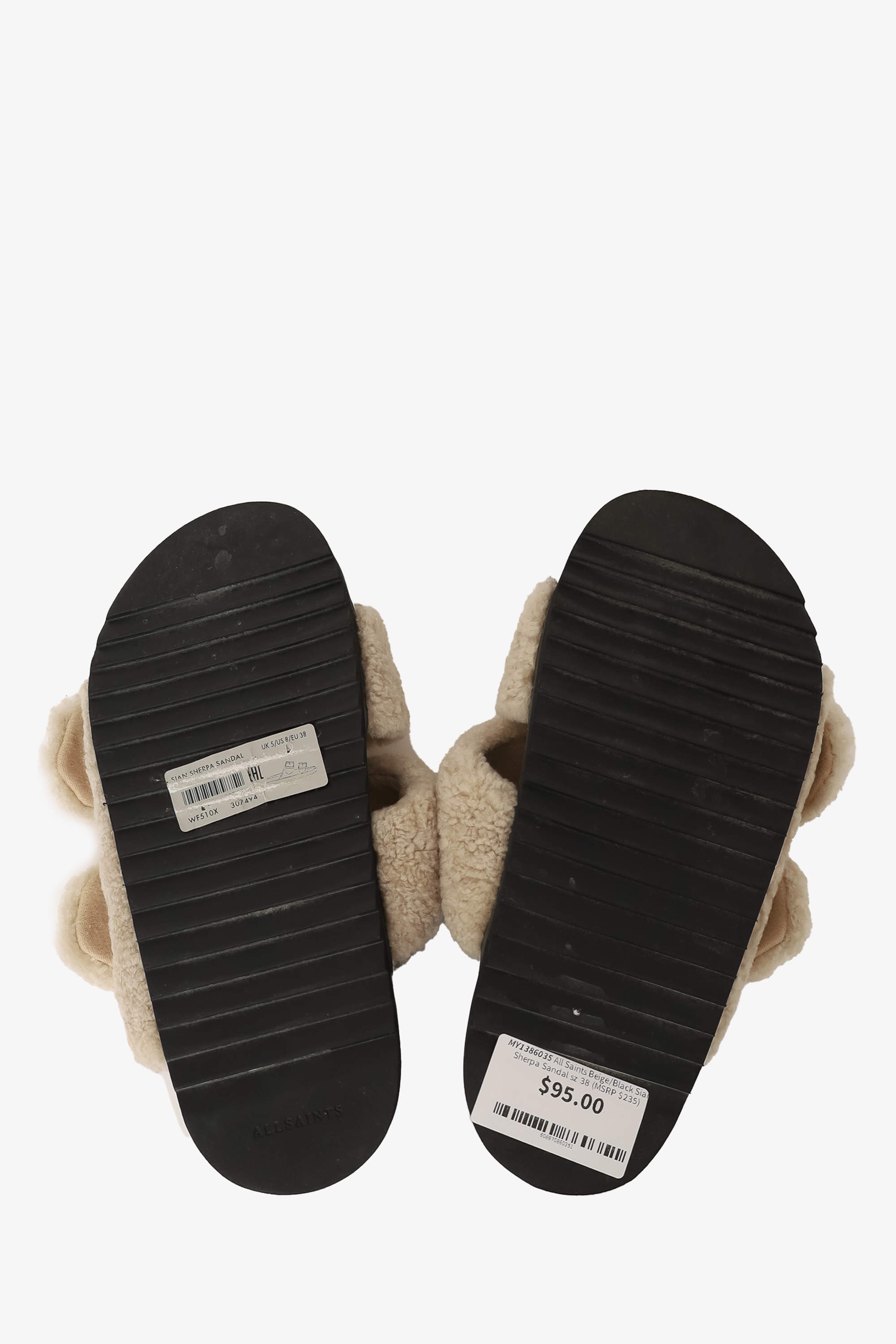 All Saints Beige/Black Sian Sherpa Sandal Size 38