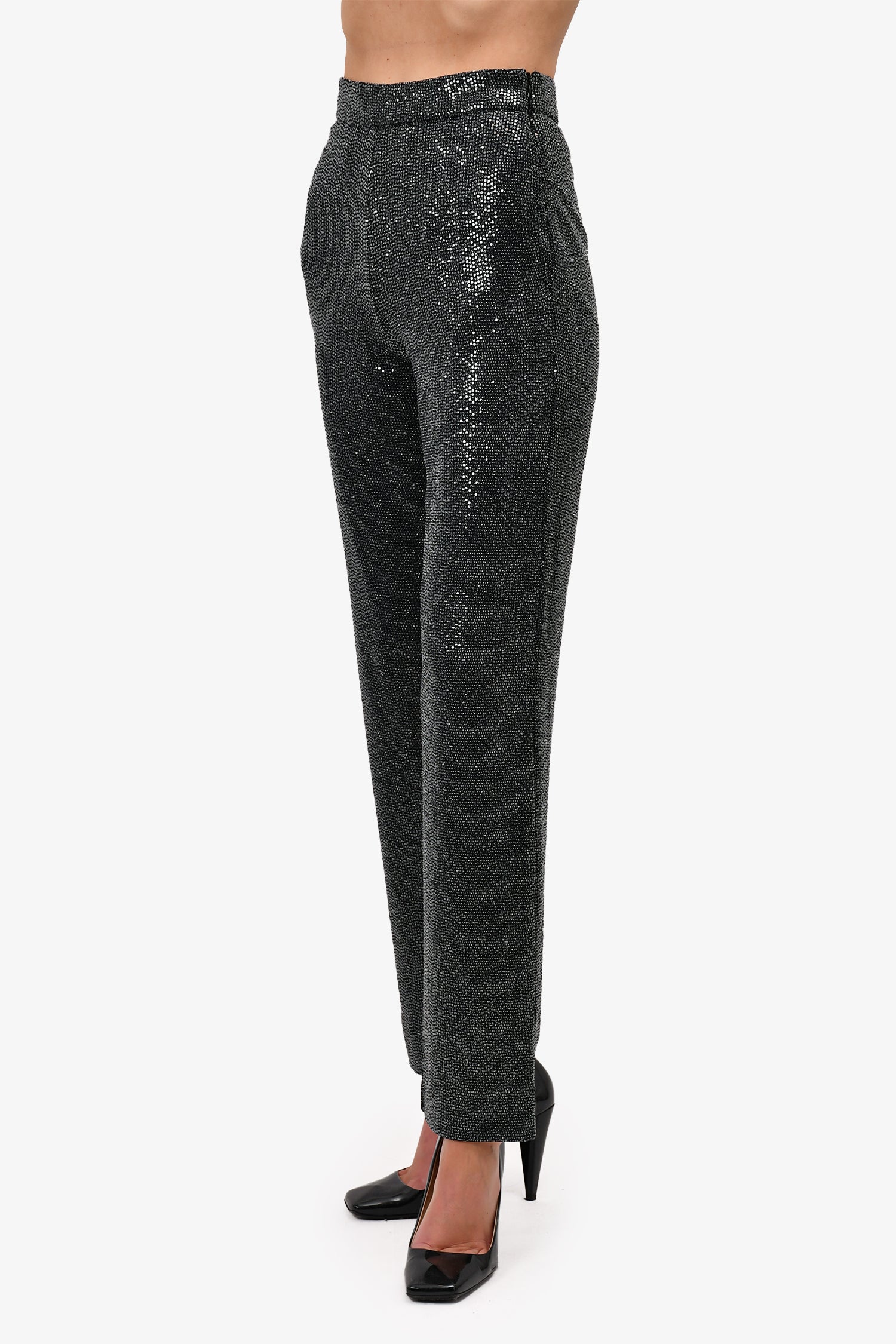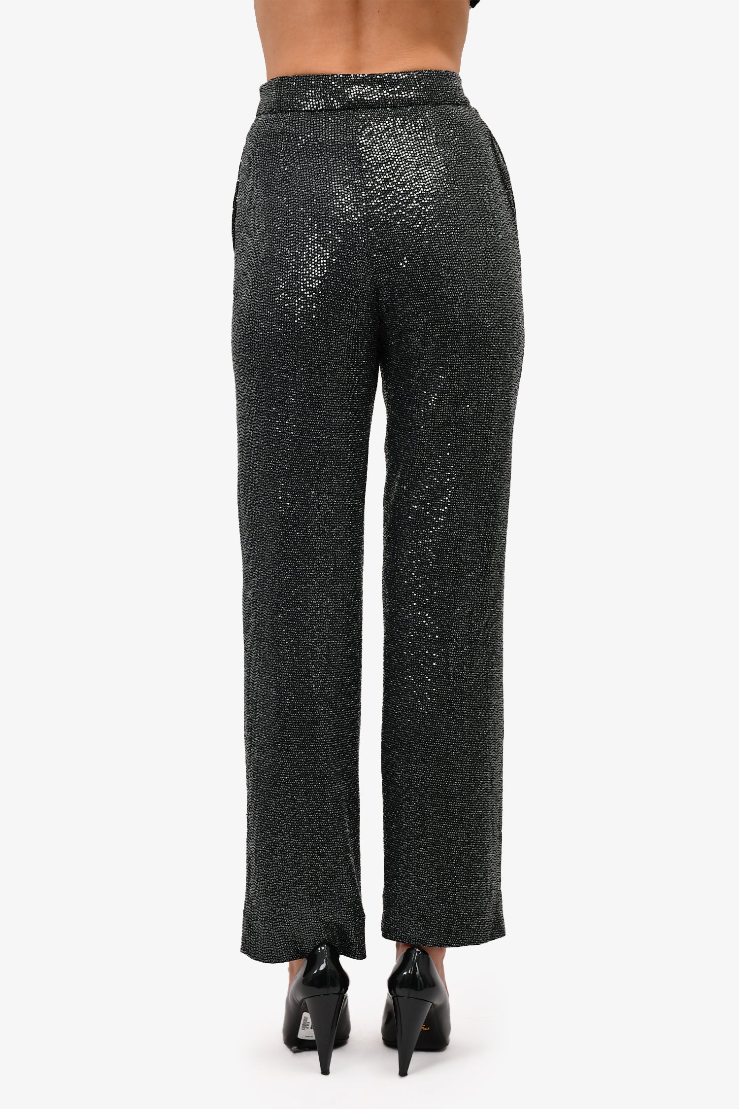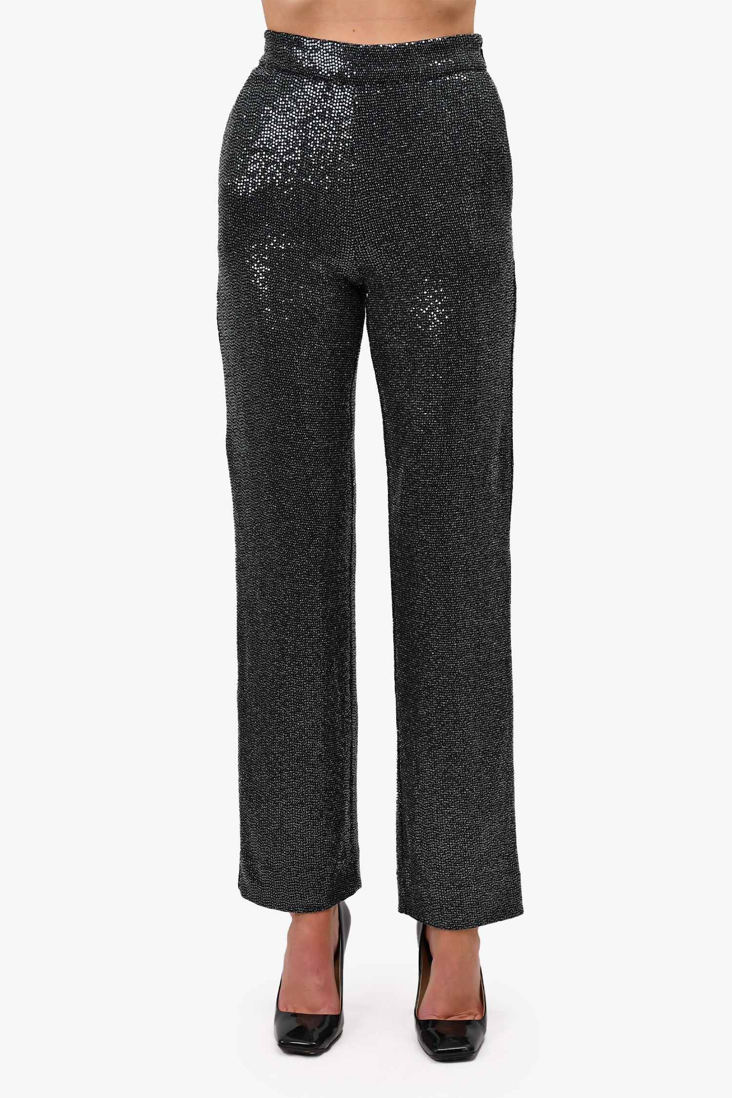 All Saints Black Sequin Embellished Wide Leg High Waist Trousers Size 0