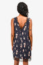 All Saints Navy Silk Floral Printed Lace Detailed Mini Dress Size M